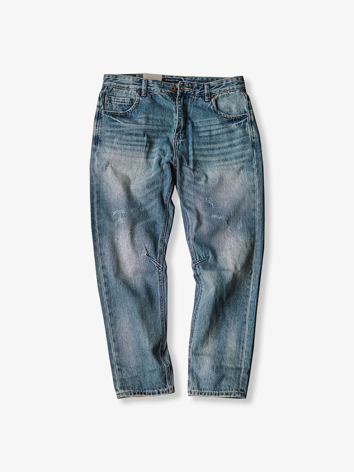 Handmade Damaged & Washed Tapered Jeans$94.99 USD
