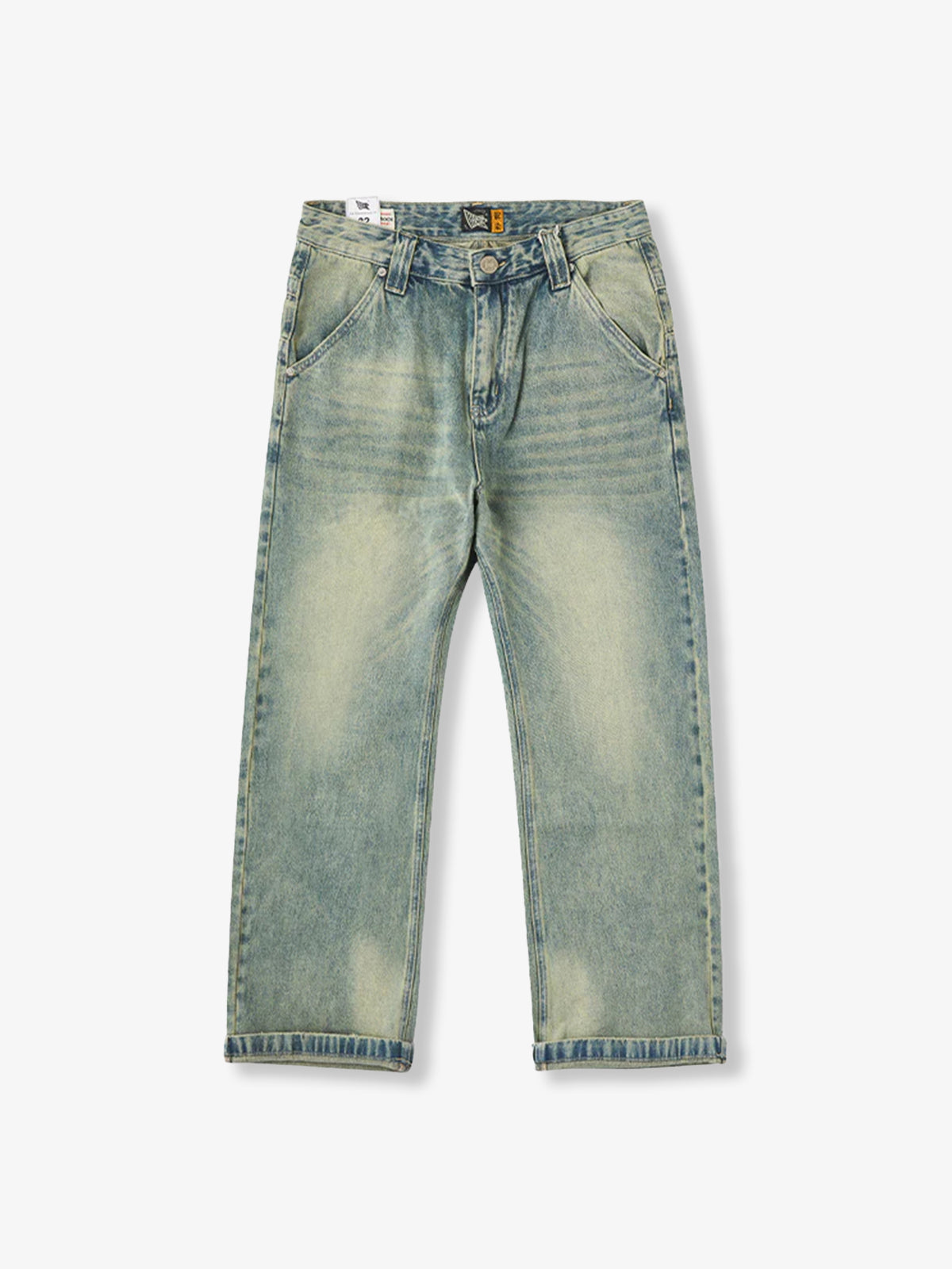 Washed & Whiskered Blue Straight Denim Pants$88.99 USD