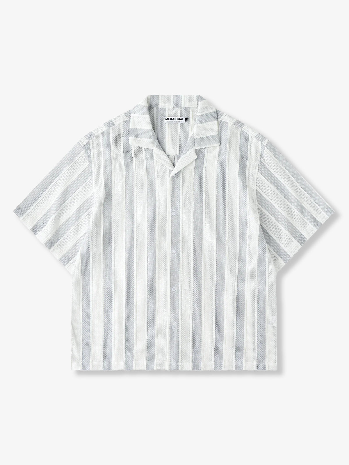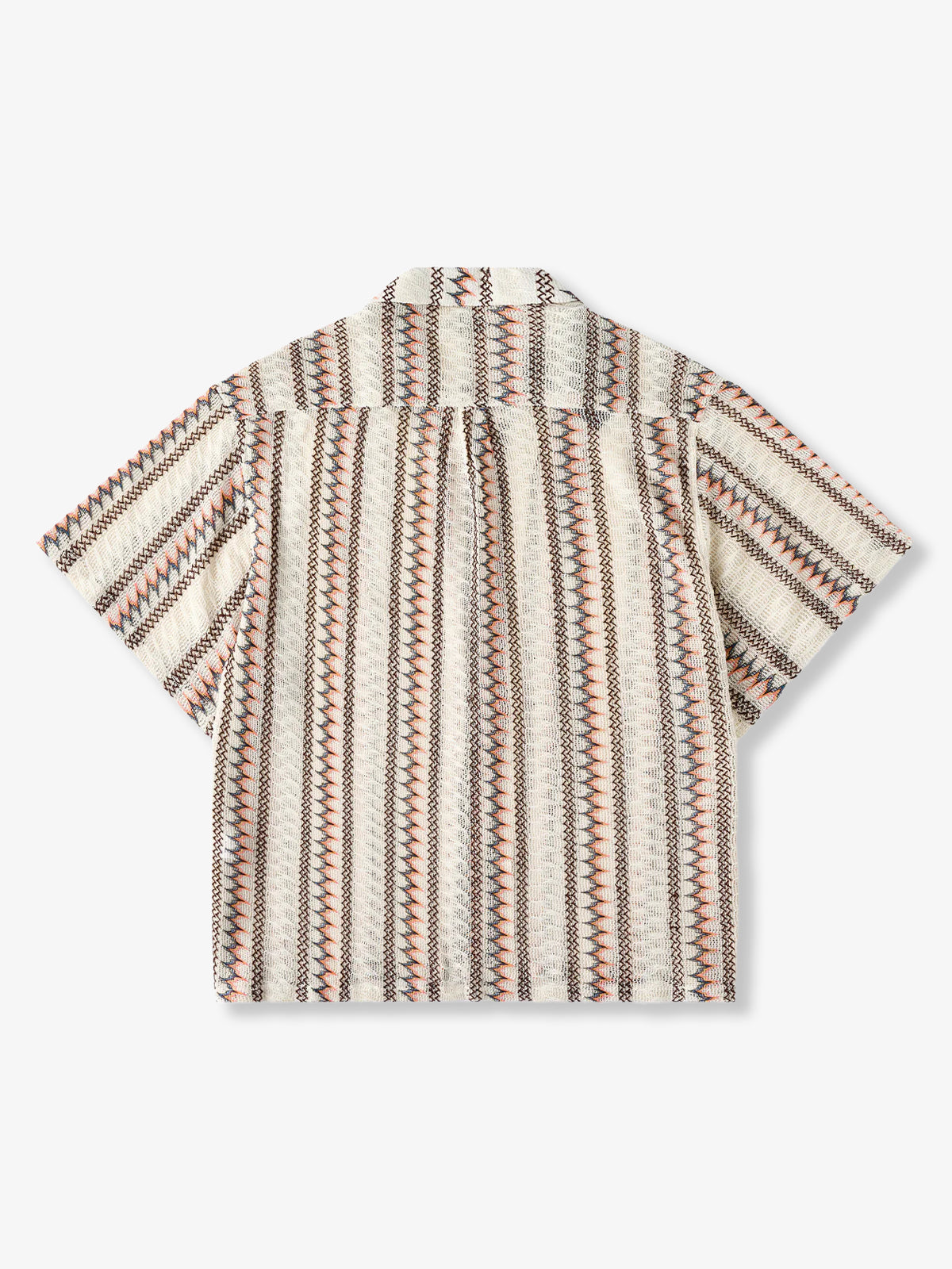 Jacquard Stripe Openwork Lace Cuban Shirt$82.99 USD