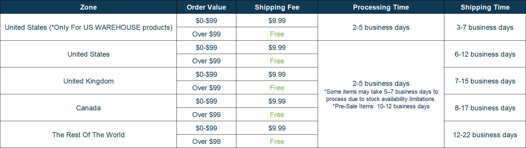 Pre-Sale Items: For pre-sale items, please expect additional 10-12 days warehouse processing time for the total delivery estimates.
