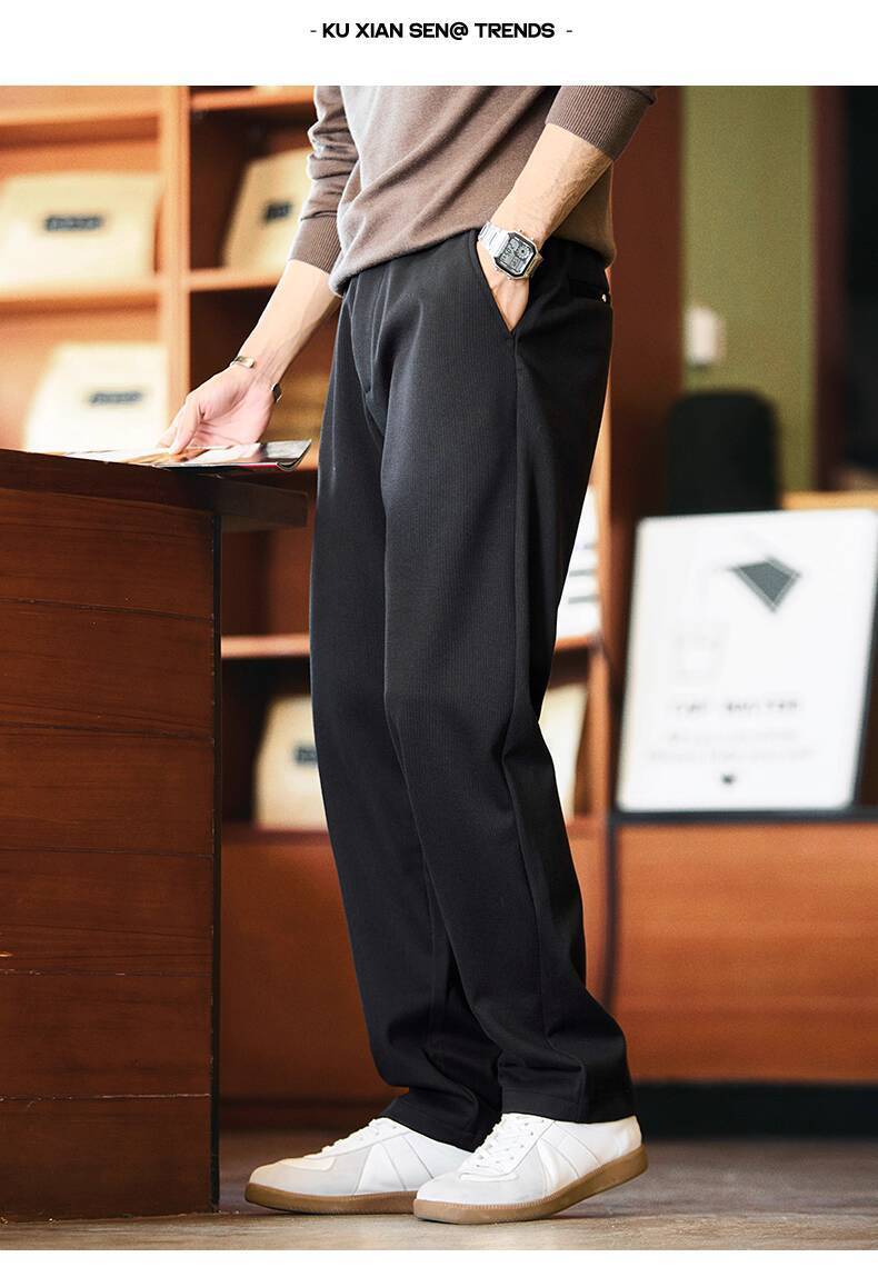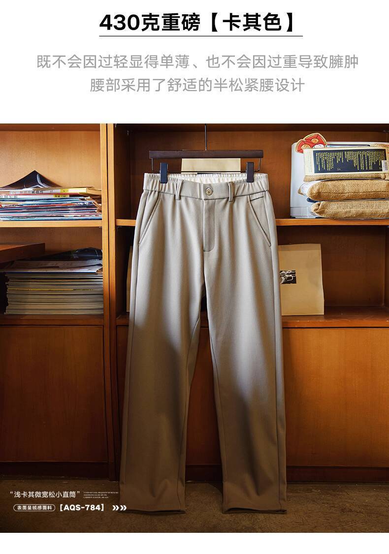 430g Autumn Winter Thick Stretch Small Straight Casual Pants Men 2025 Autumn Winter New Style Daily Commuter All-Match Trousers Trendy