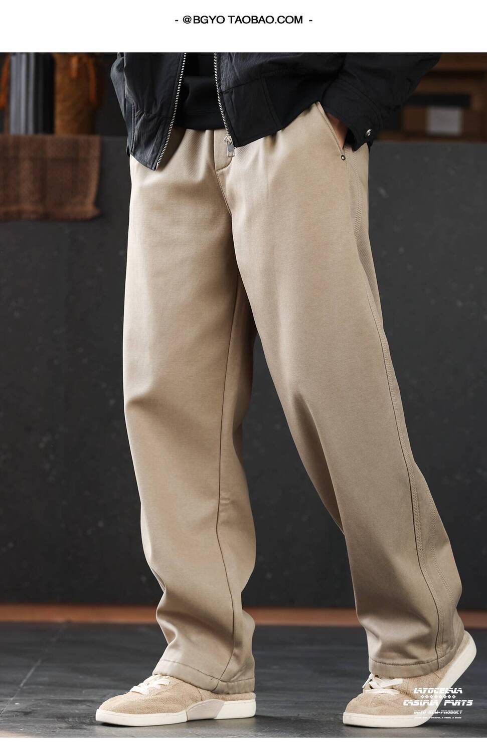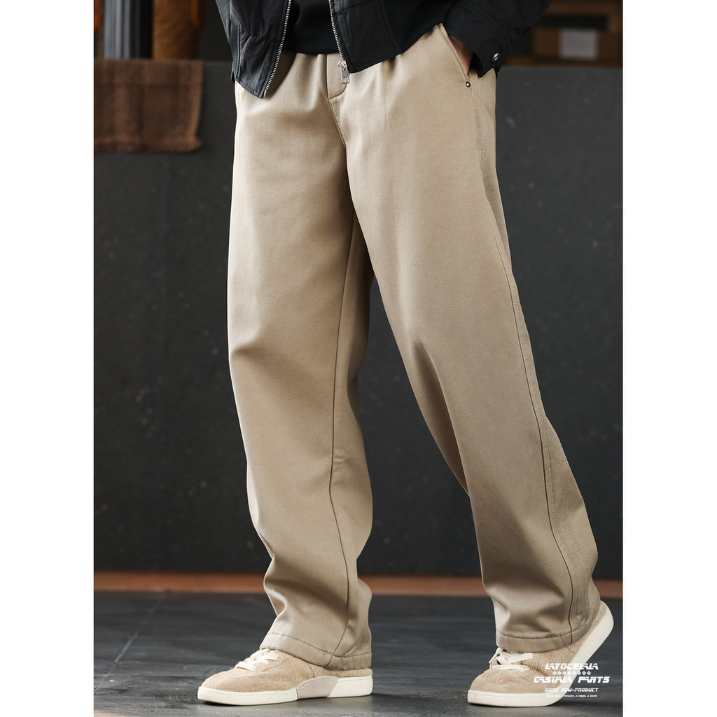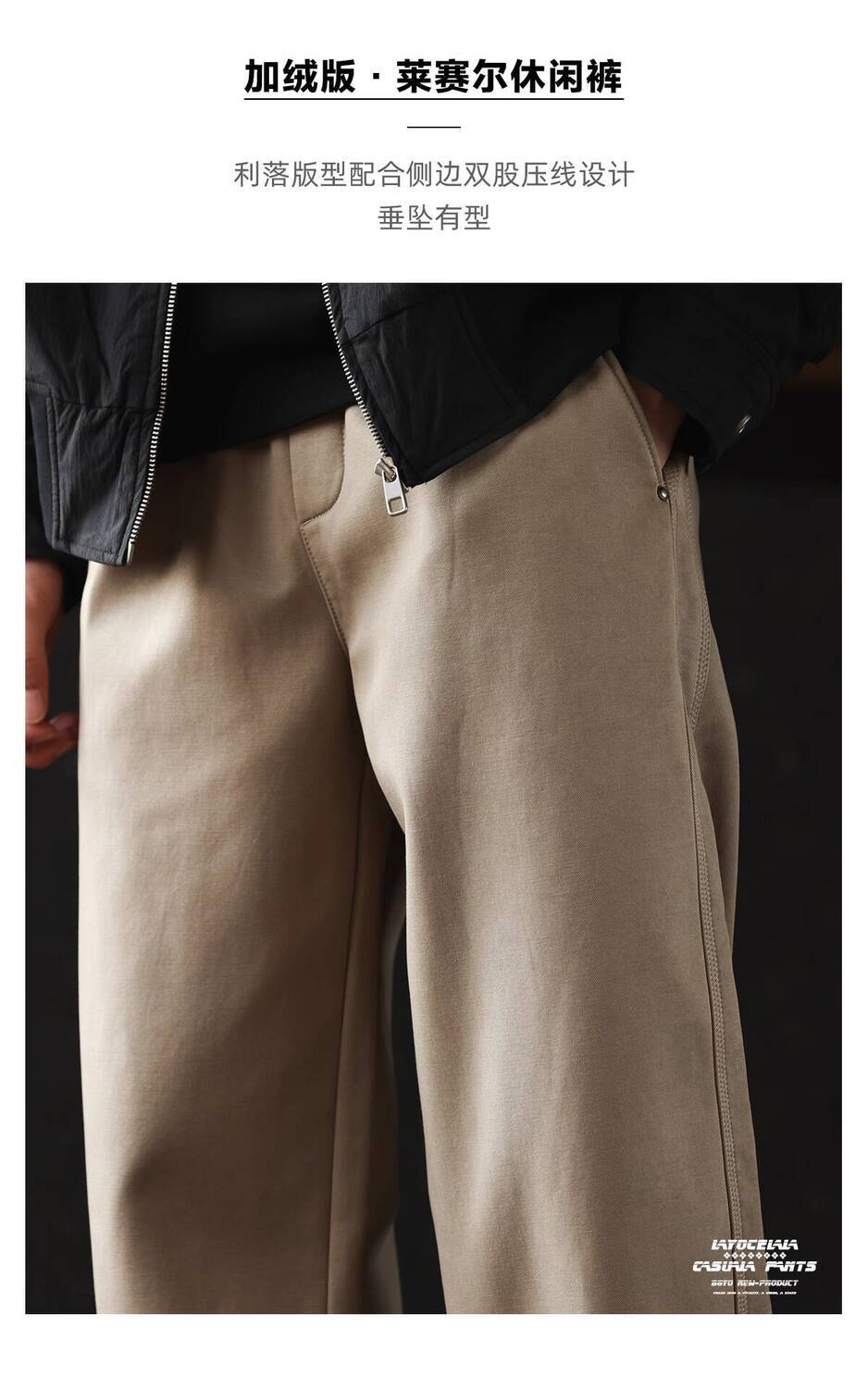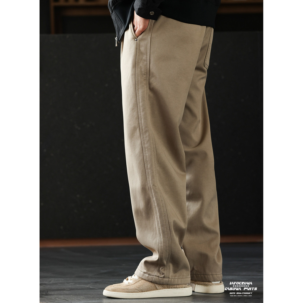 American Lyocell Plus Velvet Thickened Casual Pants Men Side Double-Strand Pressed Line Loose Straight Pants