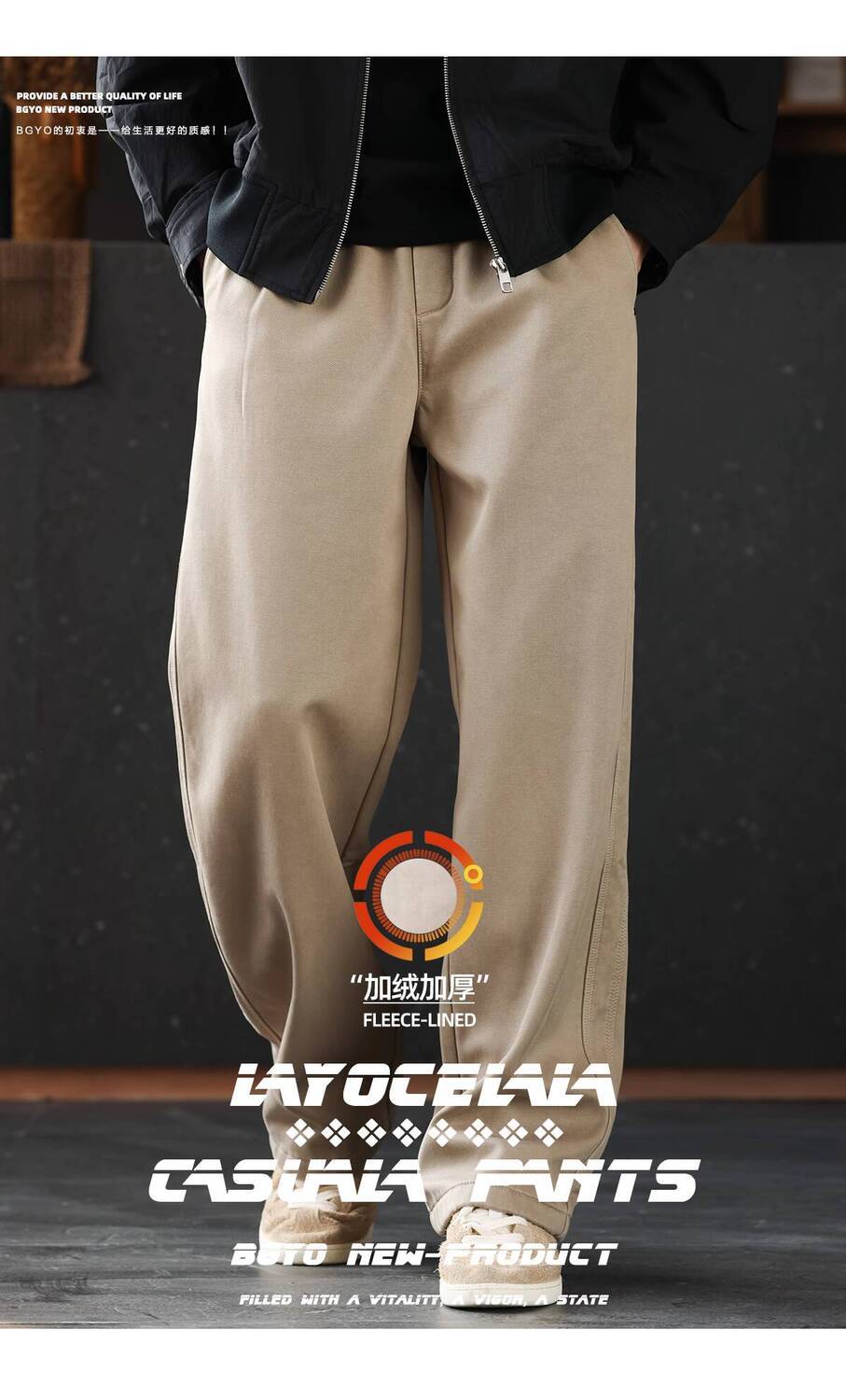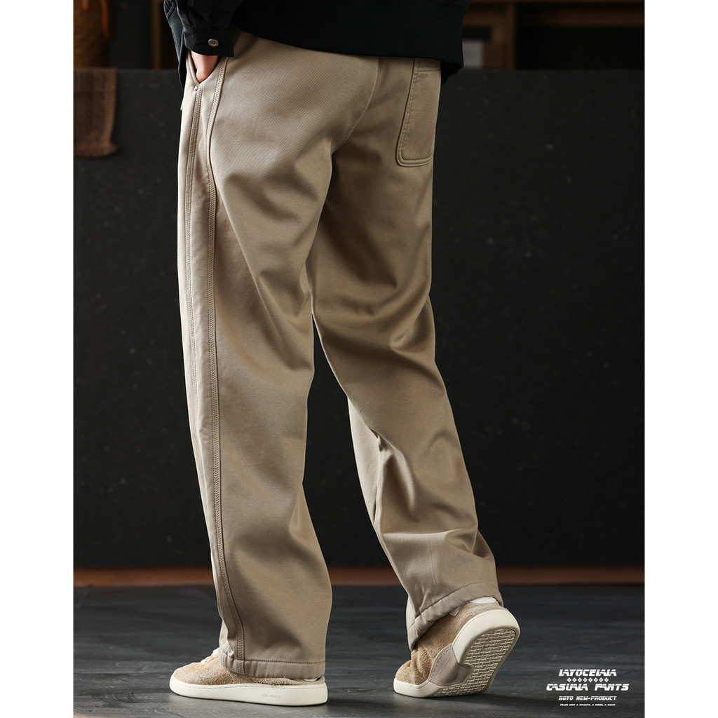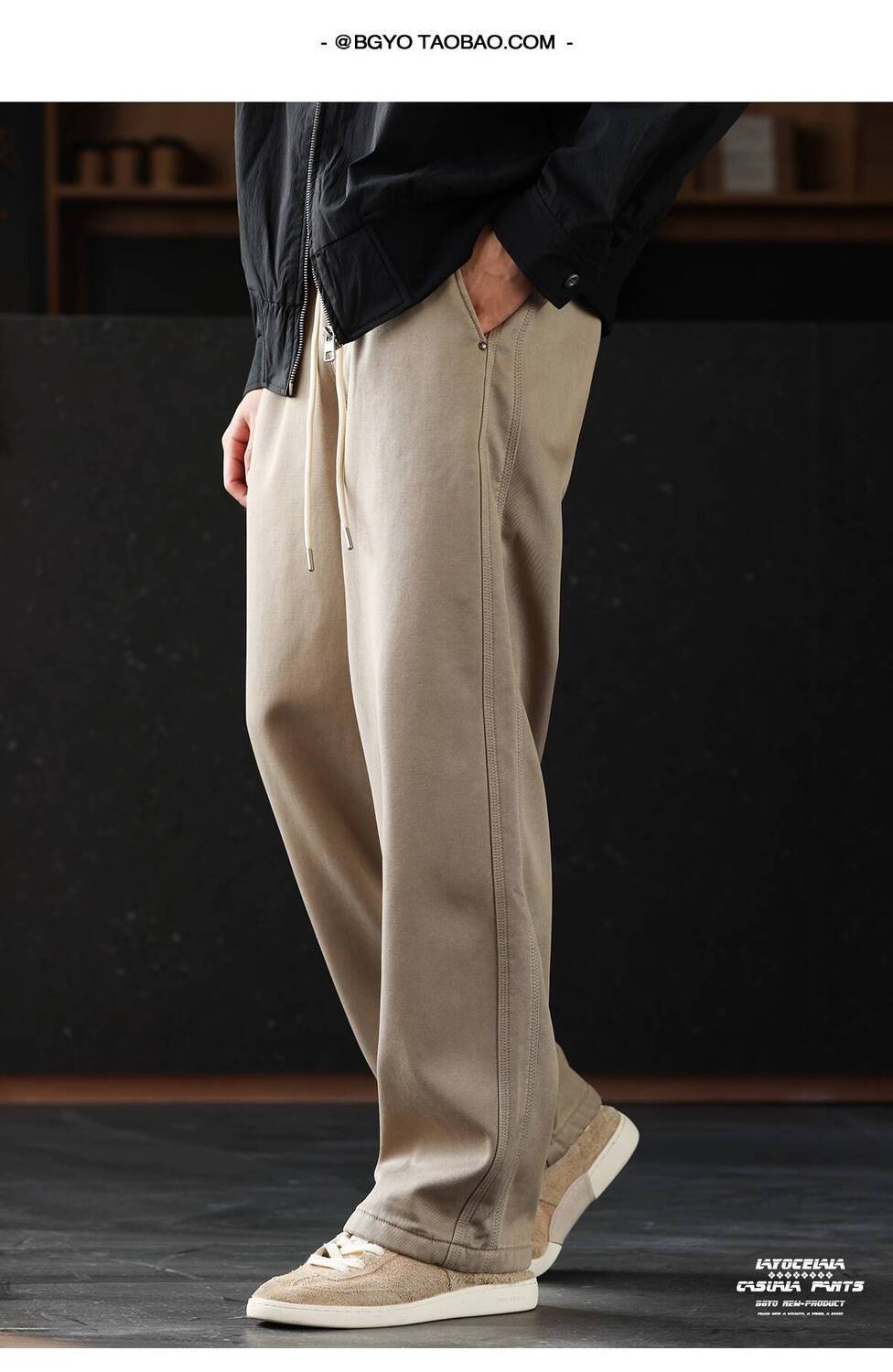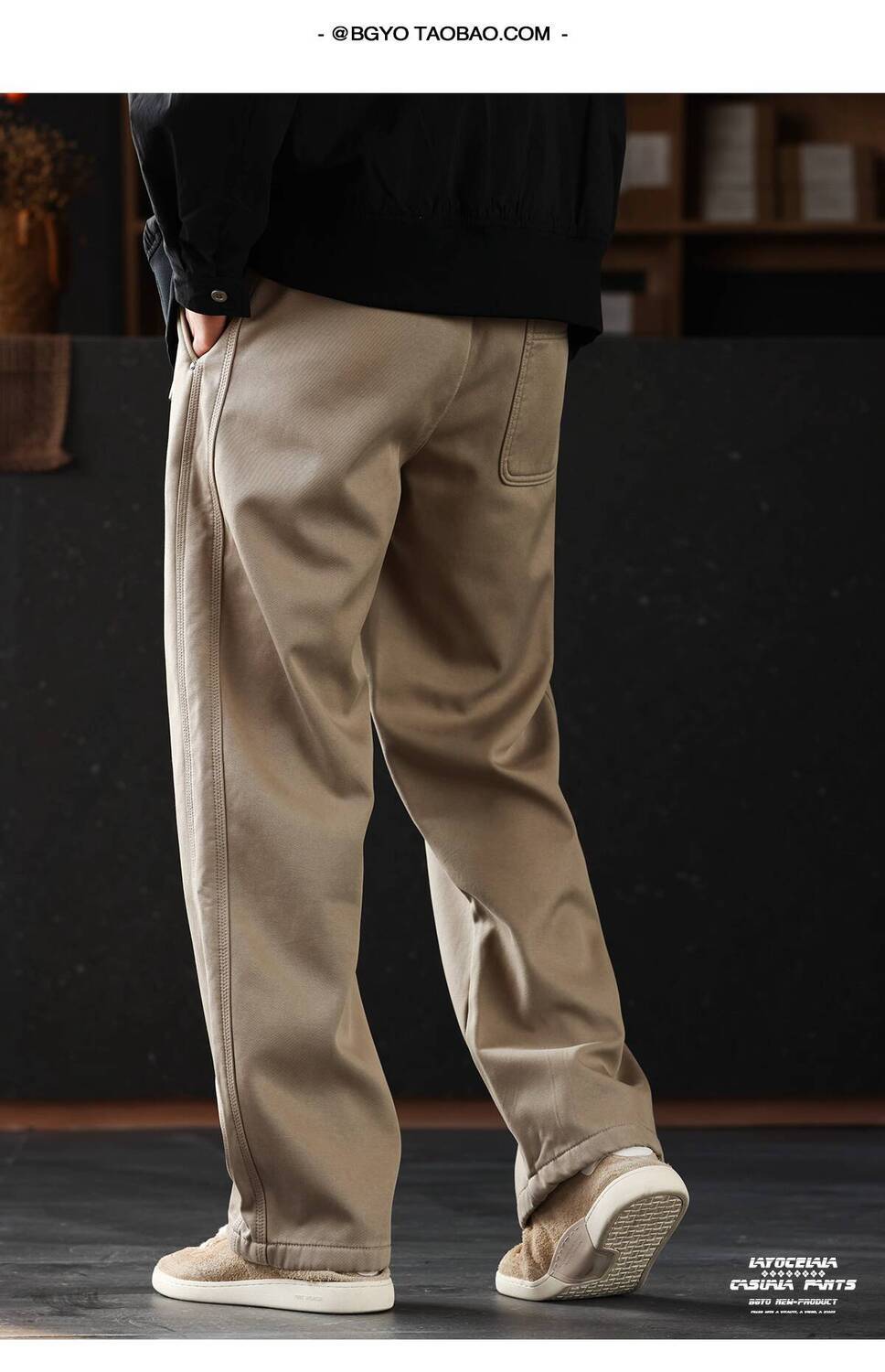 American Lyocell Plus Velvet Thickened Casual Pants Men Side Double-Strand Pressed Line Loose Straight Pants