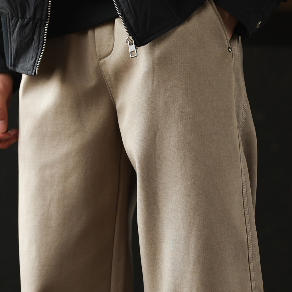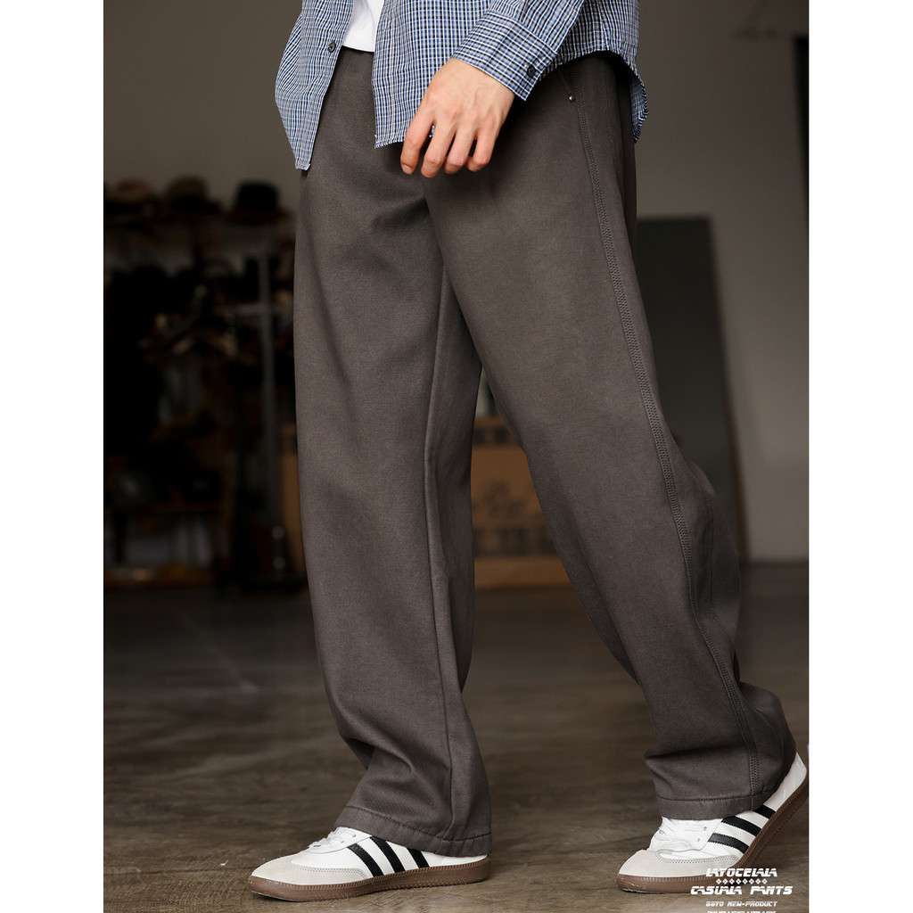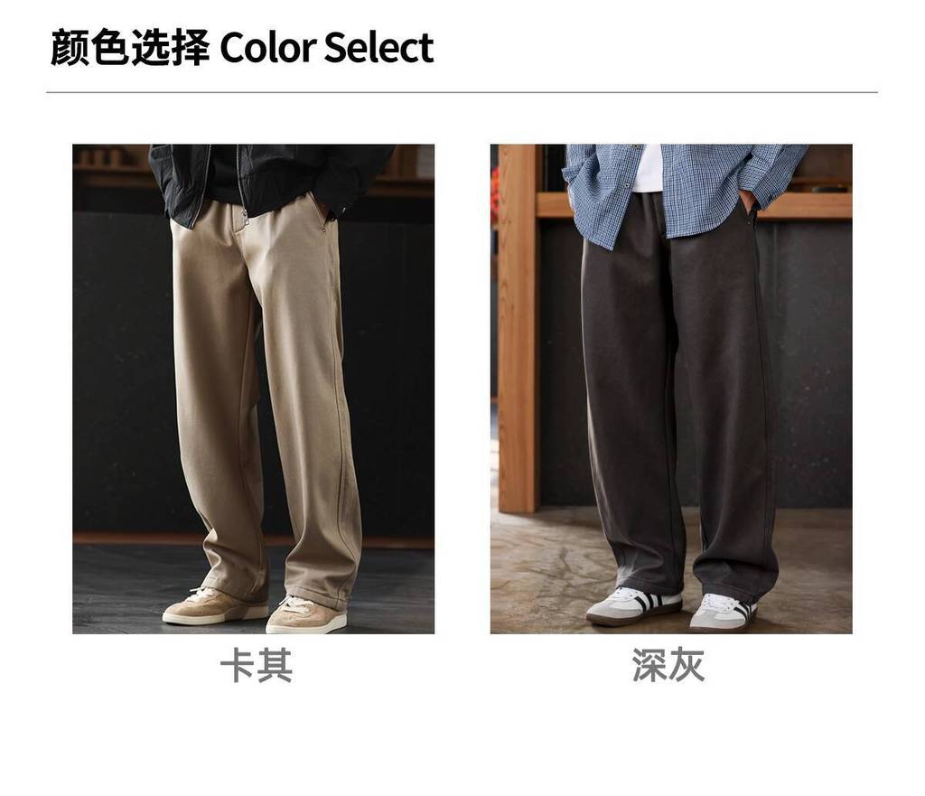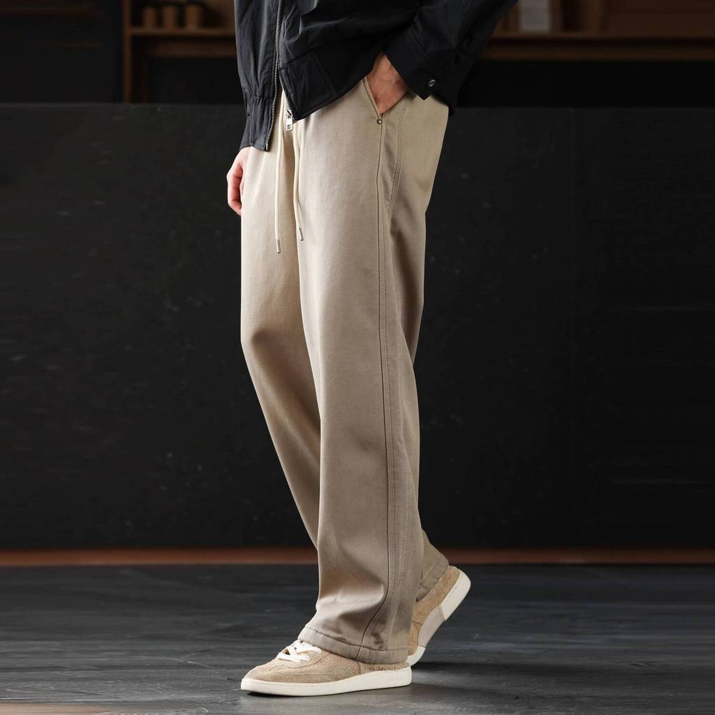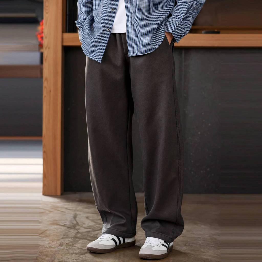 American Lyocell Plus Velvet Thickened Casual Pants Men Side Double-Strand Pressed Line Loose Straight Pants