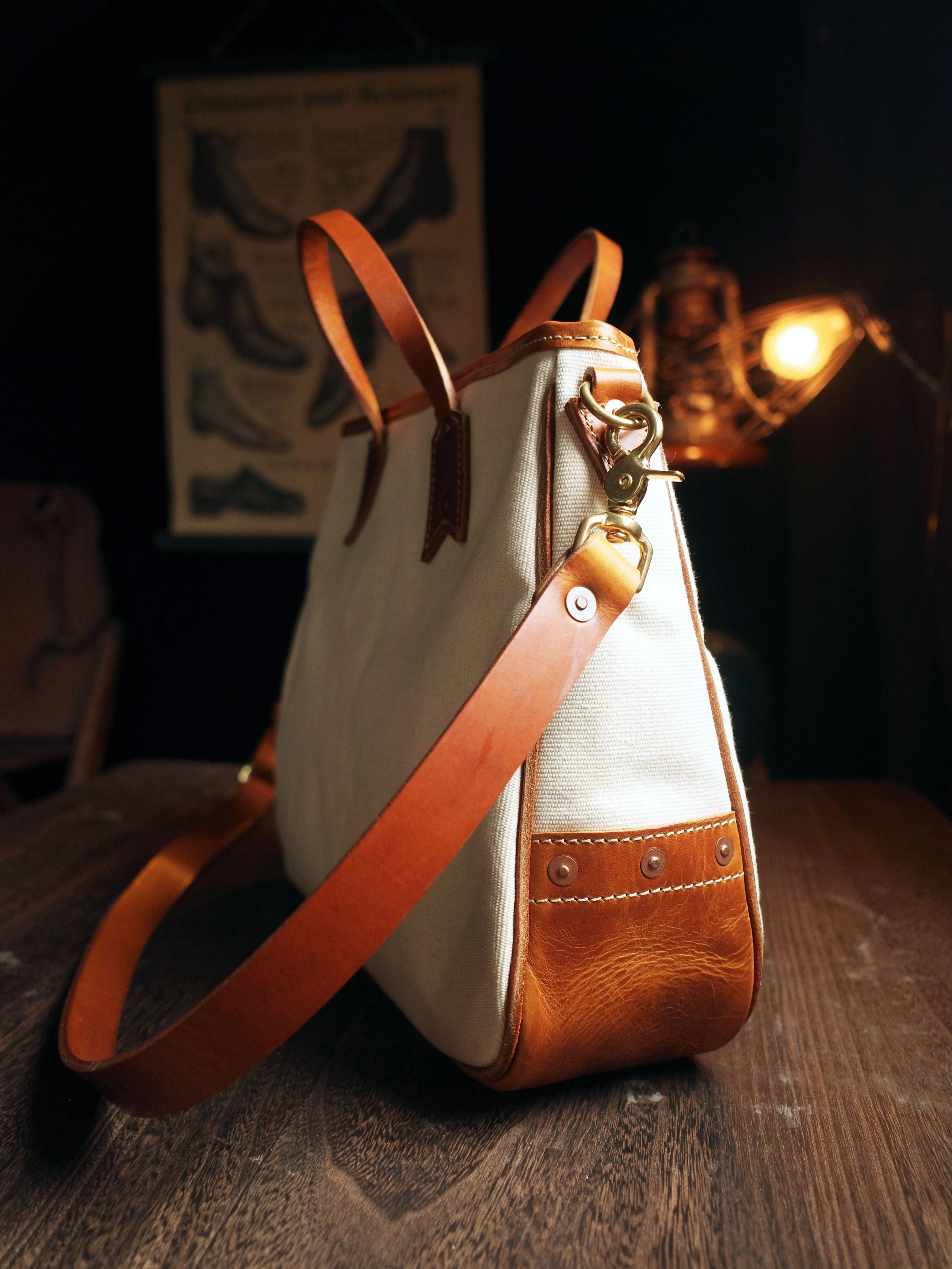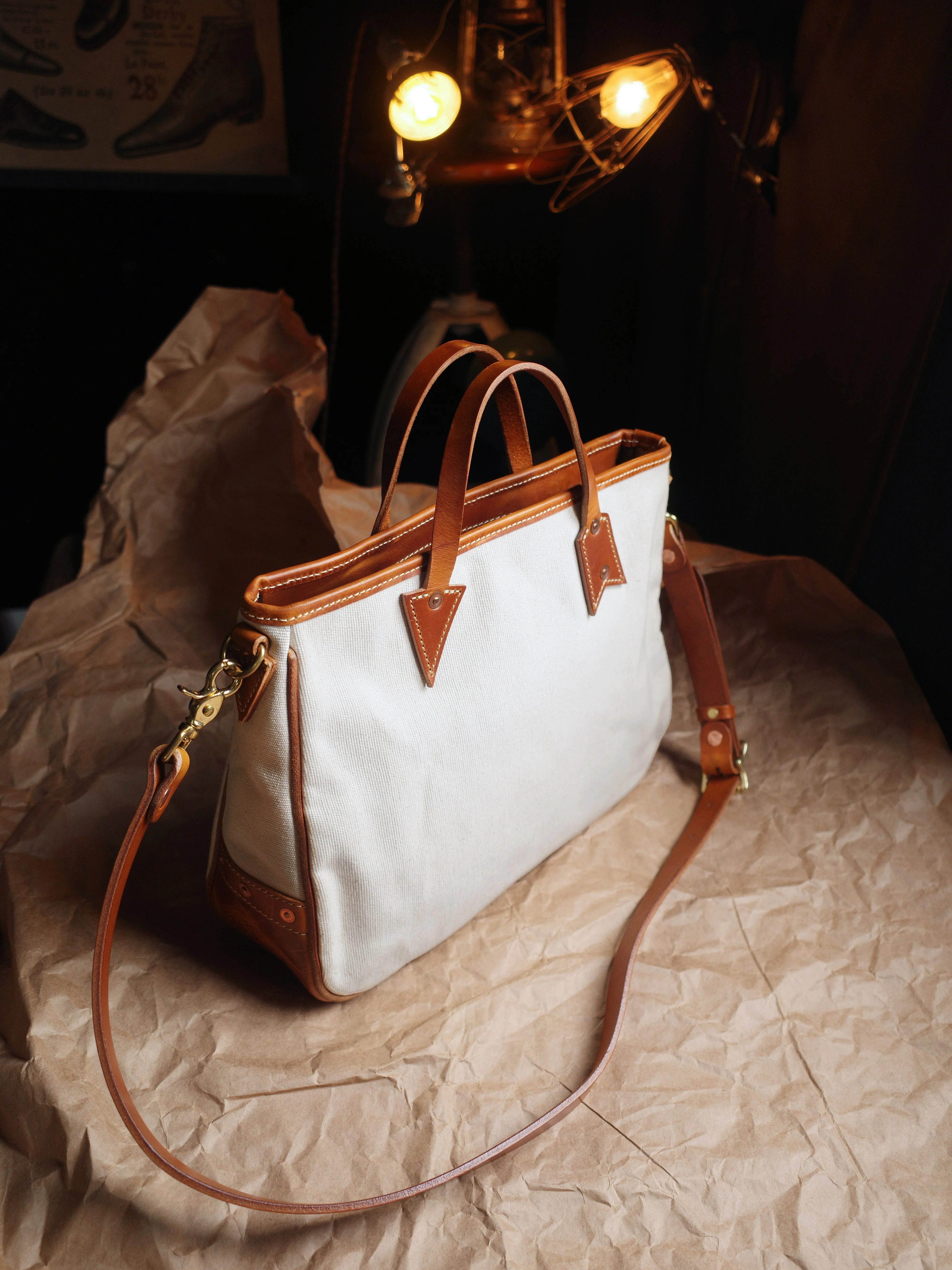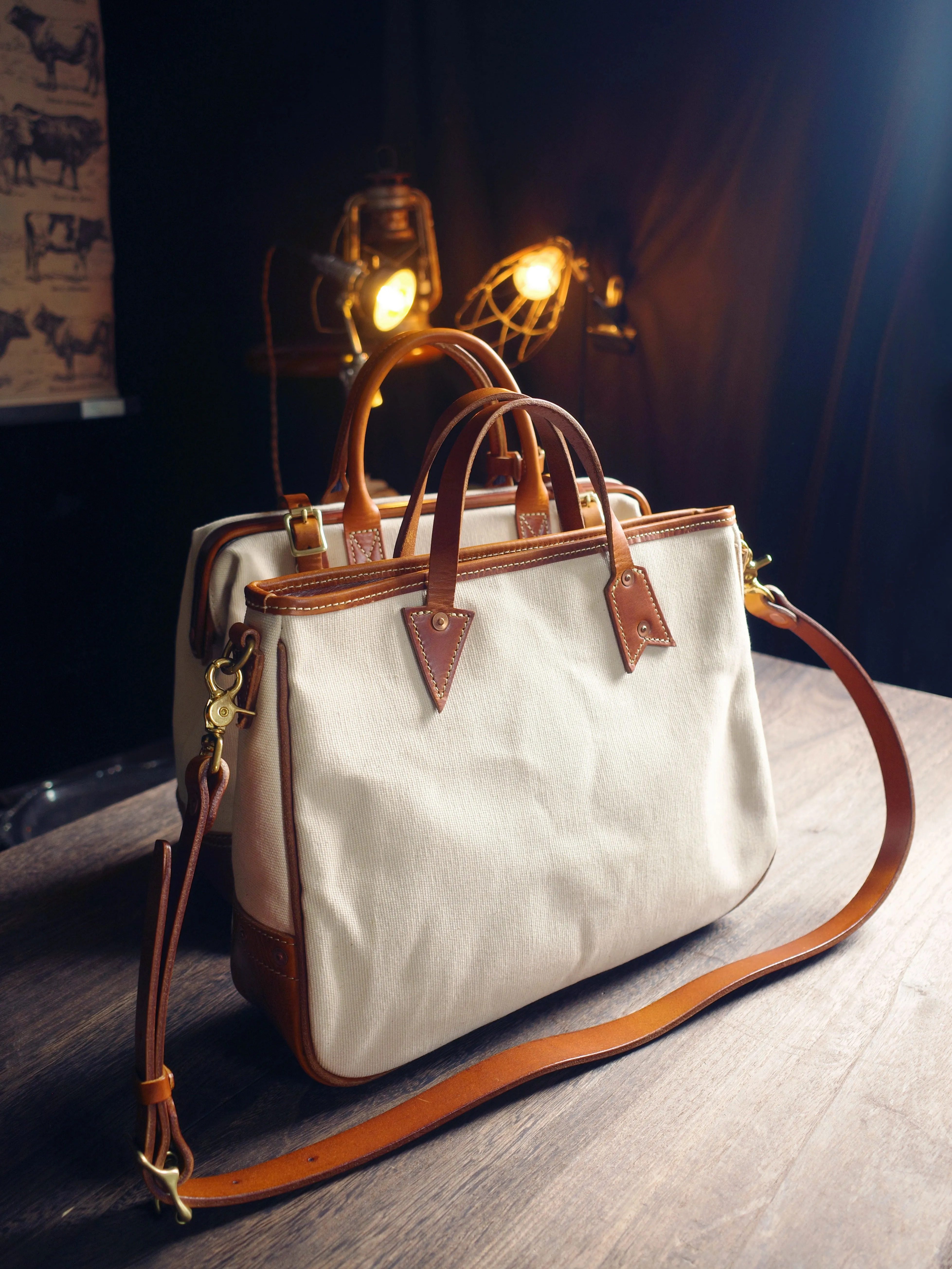 ✔️Carefully selected Italian top-grain vegetable-tanned leather + high-density pure cotton canvas