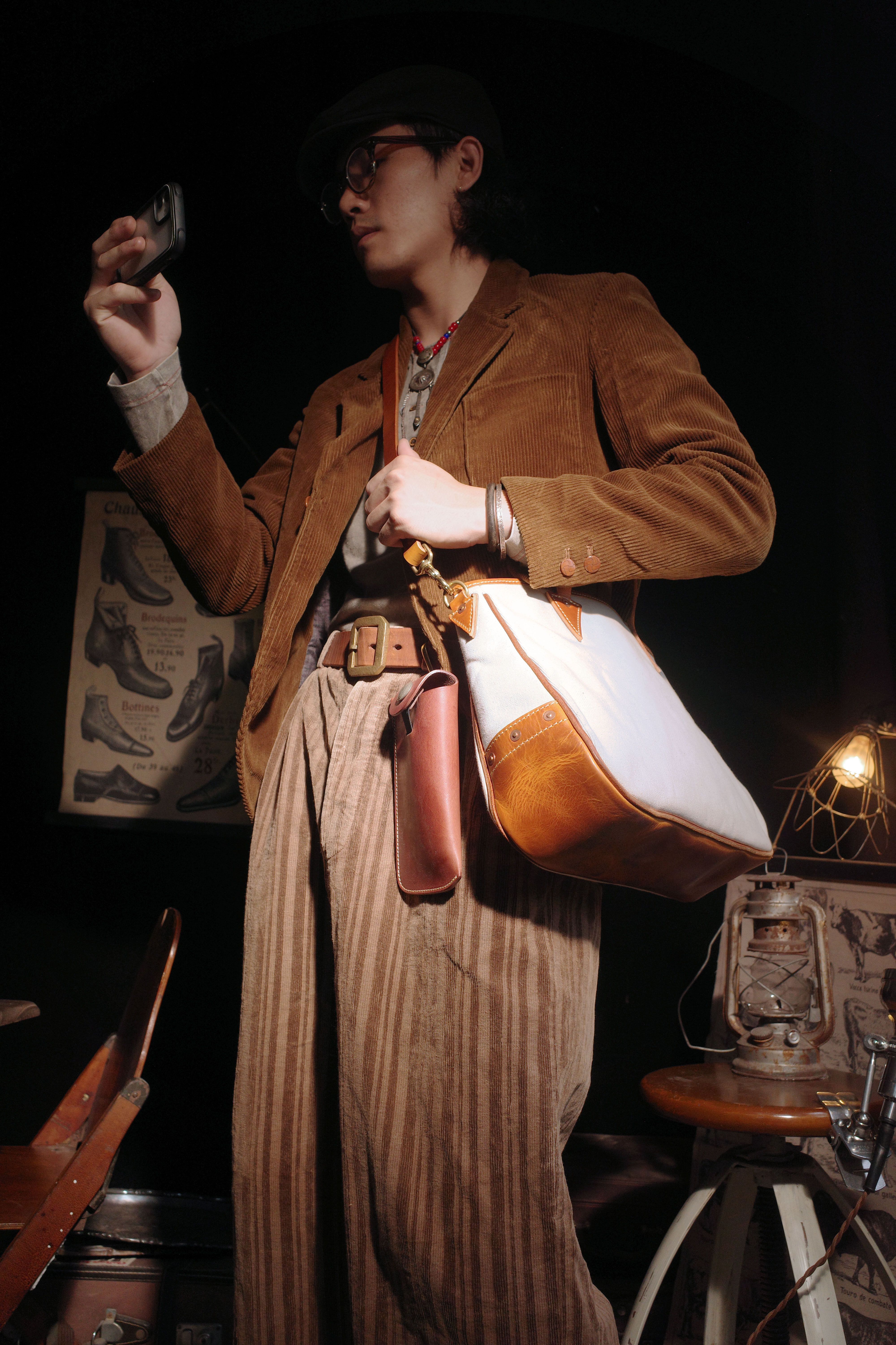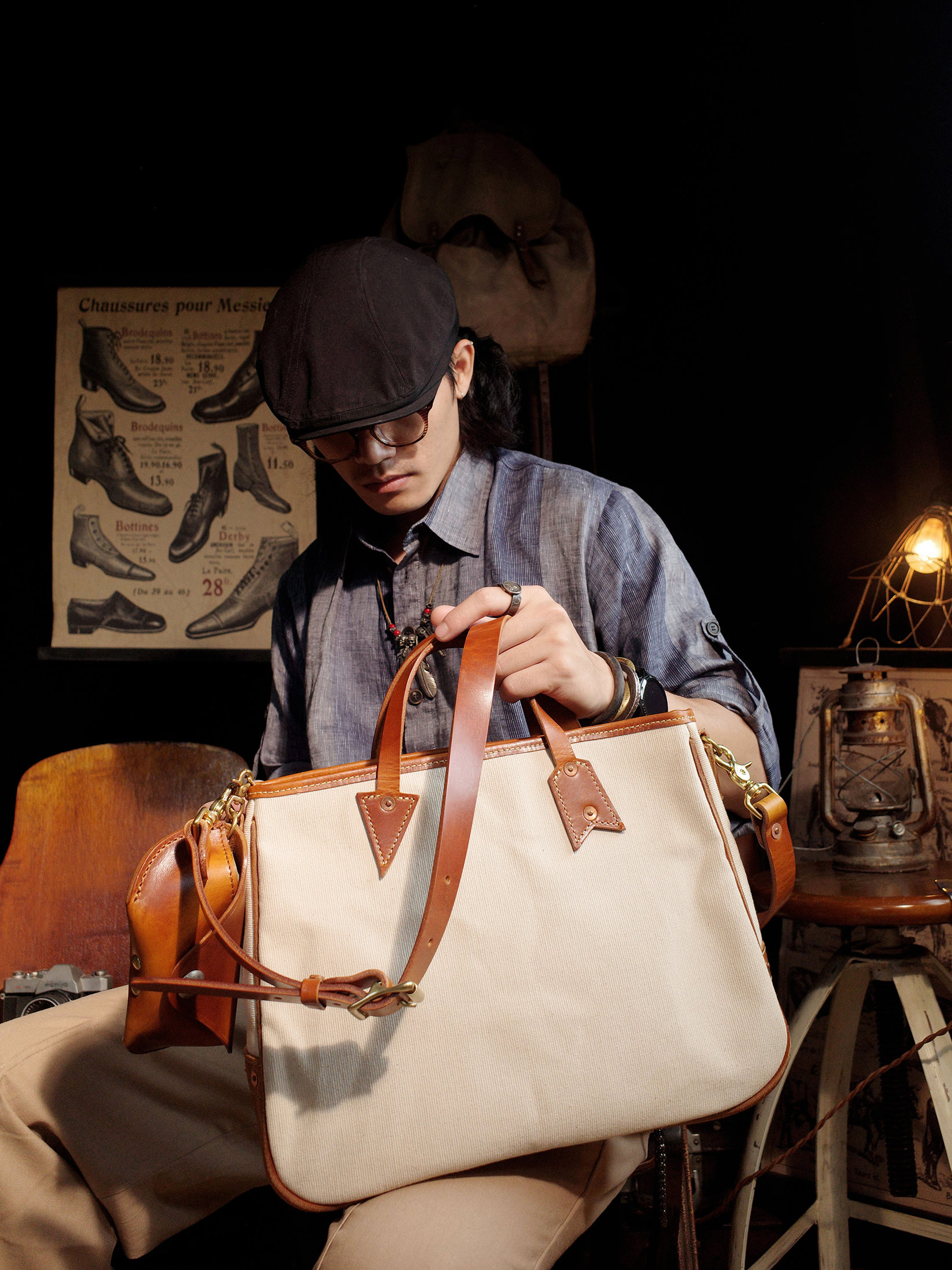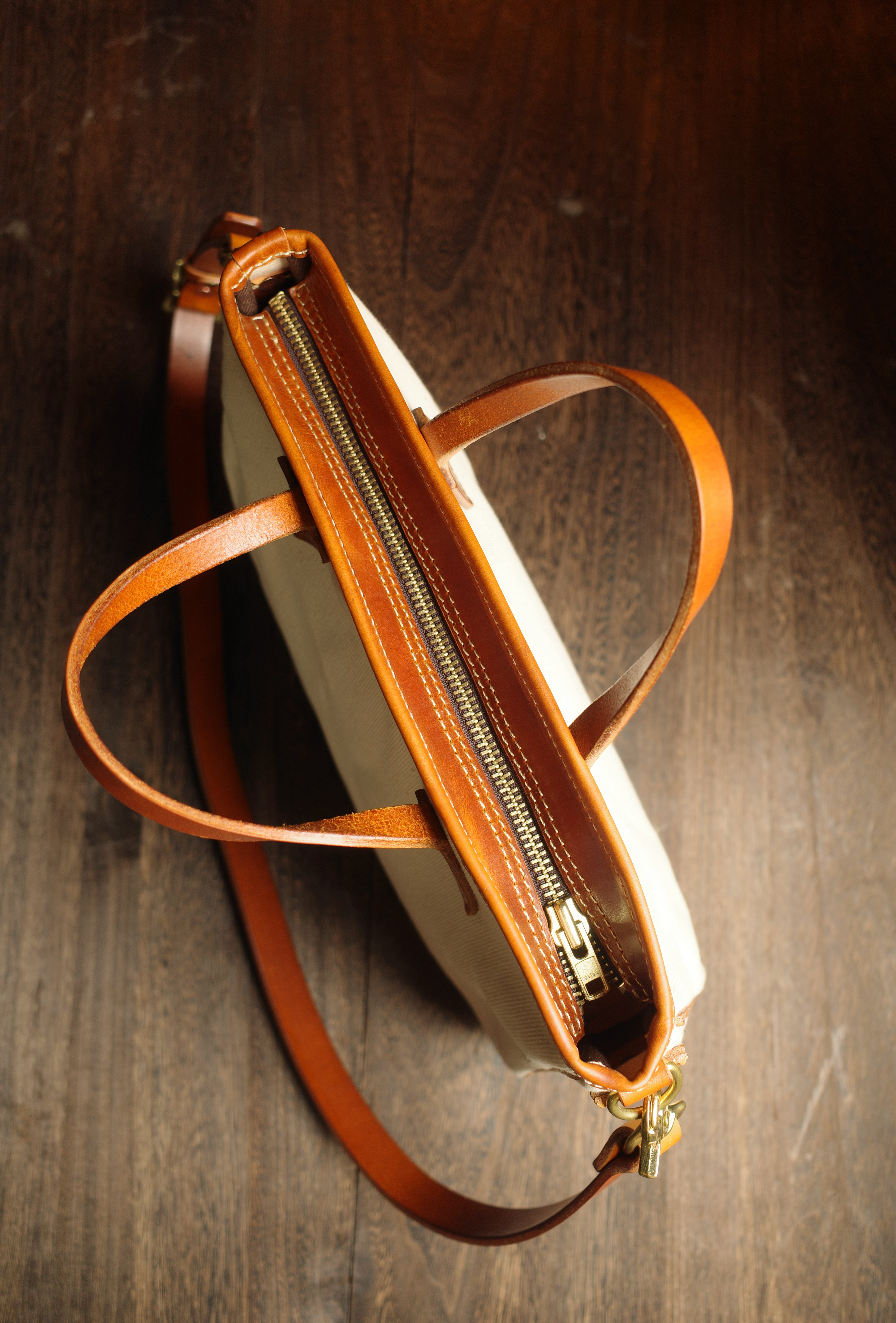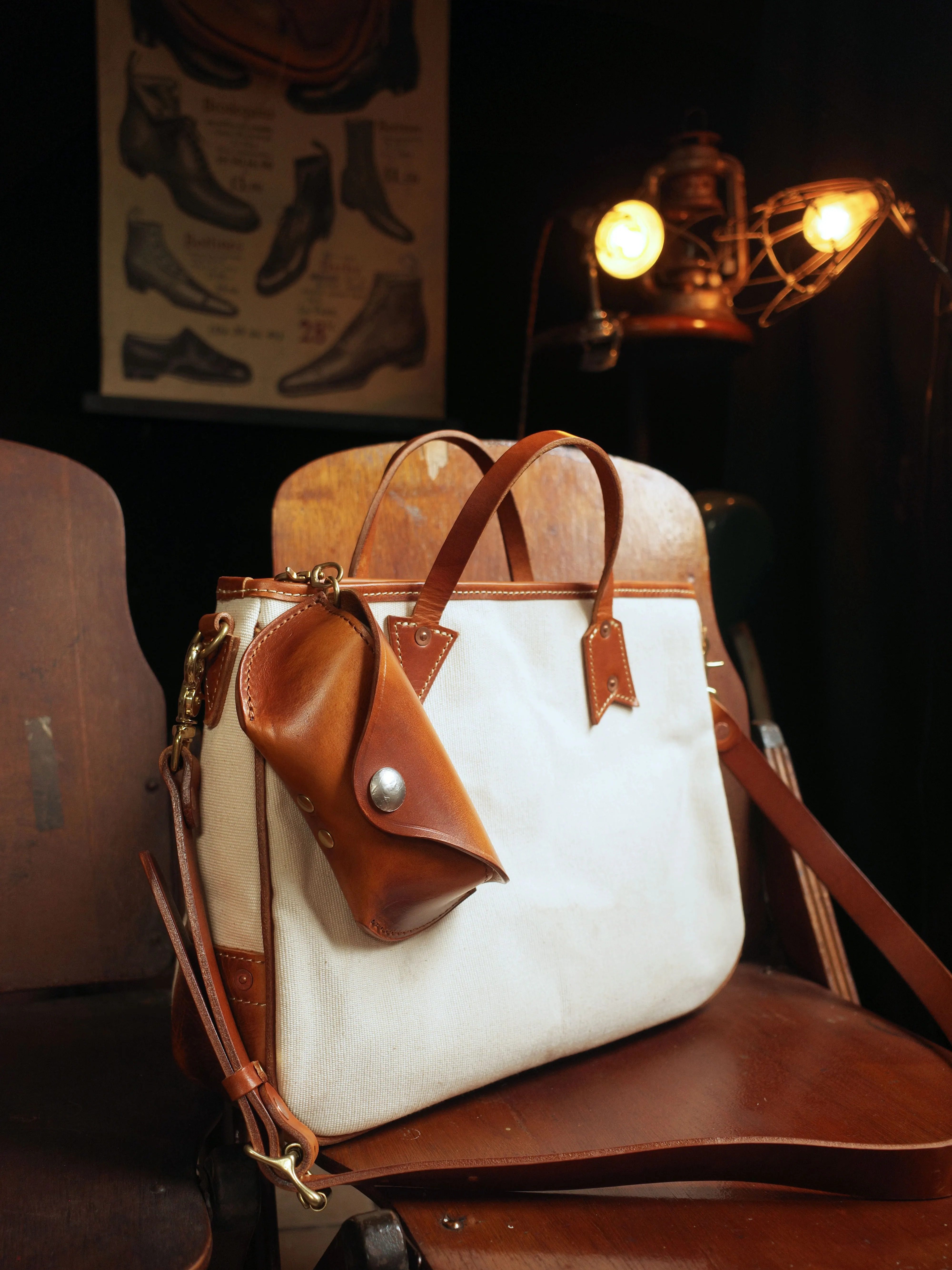 ✔️Carefully selected Italian top-grain vegetable-tanned leather + high-density pure cotton canvas