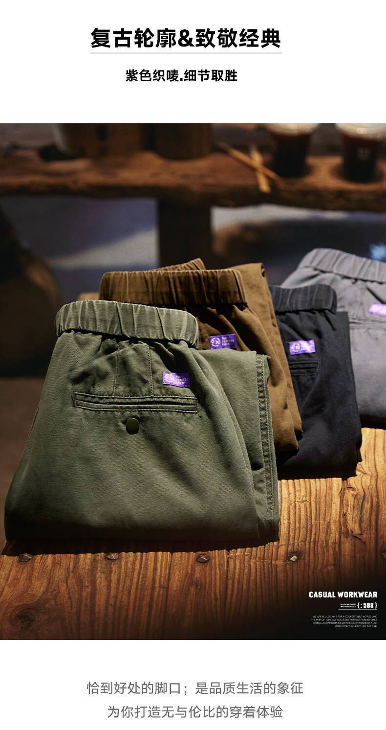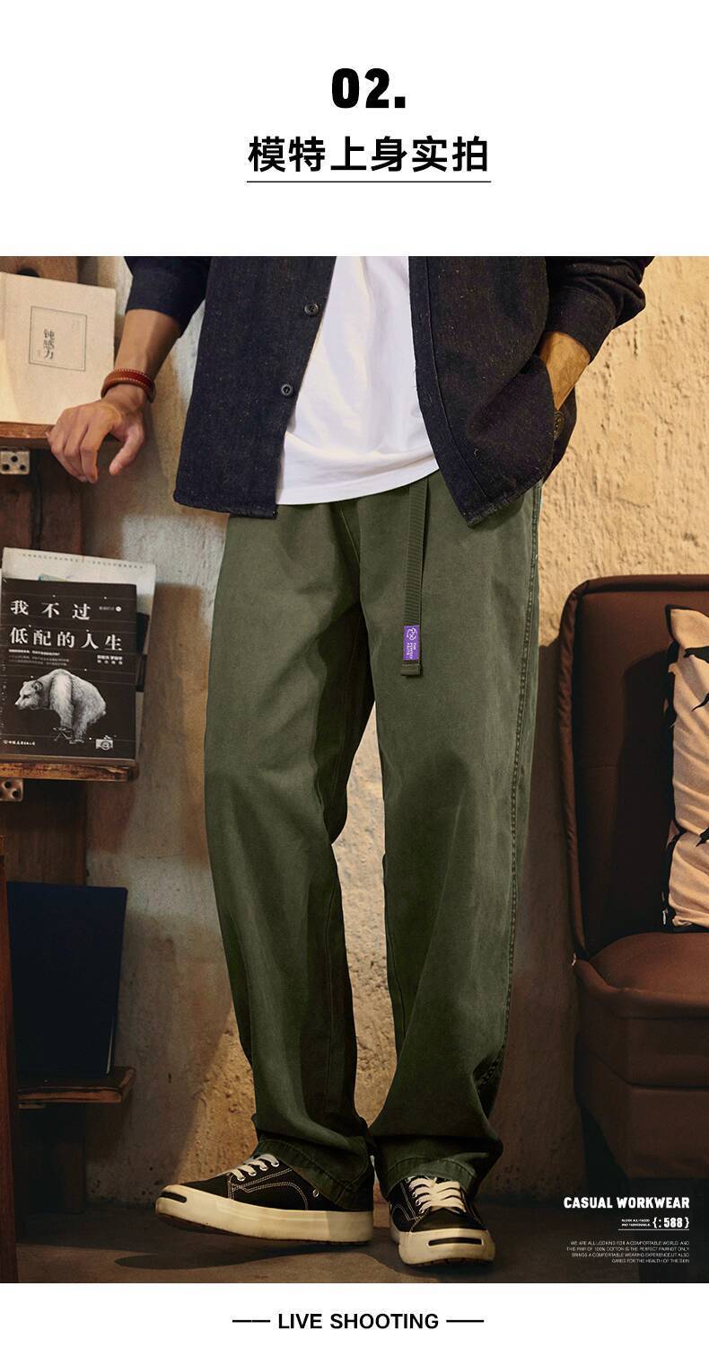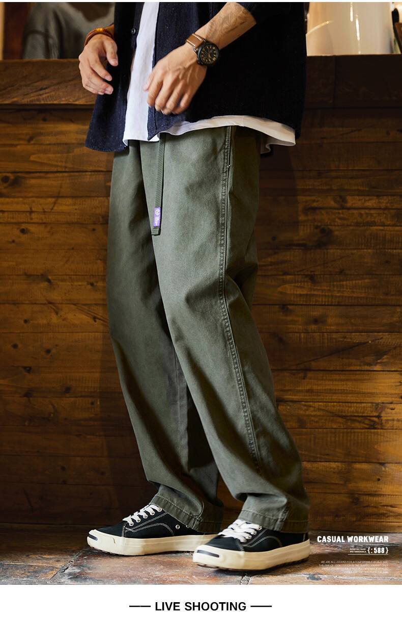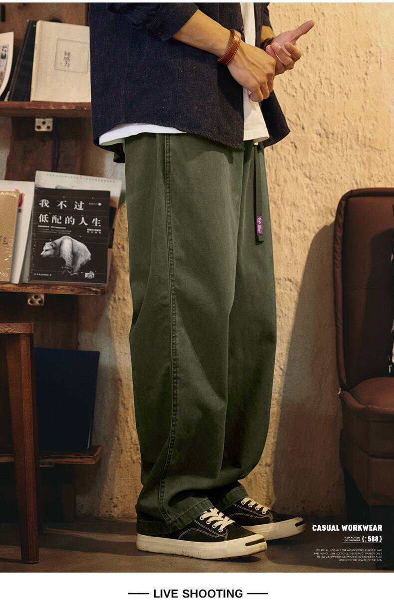 Japanese Retro Washed Beaded Pure Cotton Casual Pants Men 2025 Autumn New Style Trousers Loose Straight Overalls Trendy