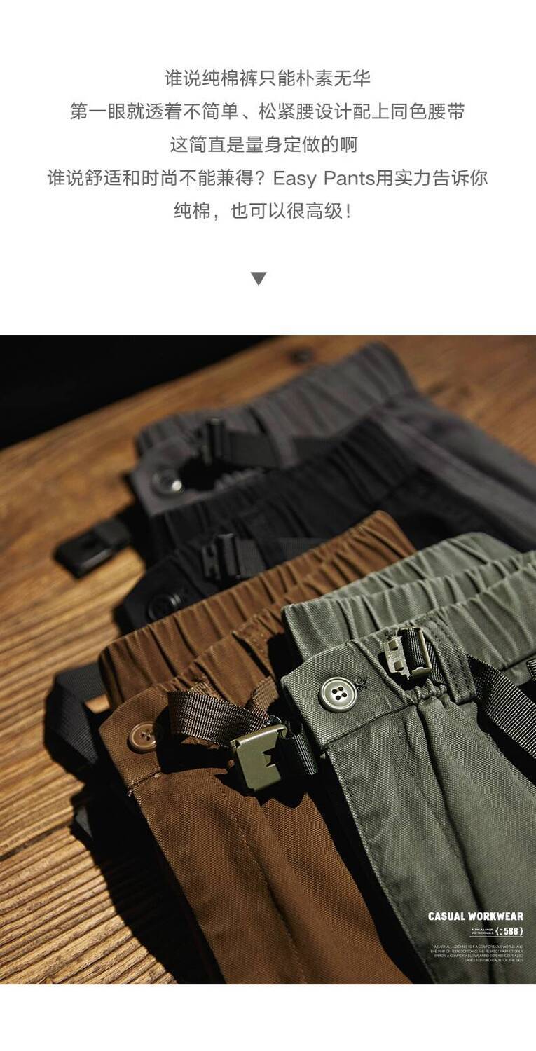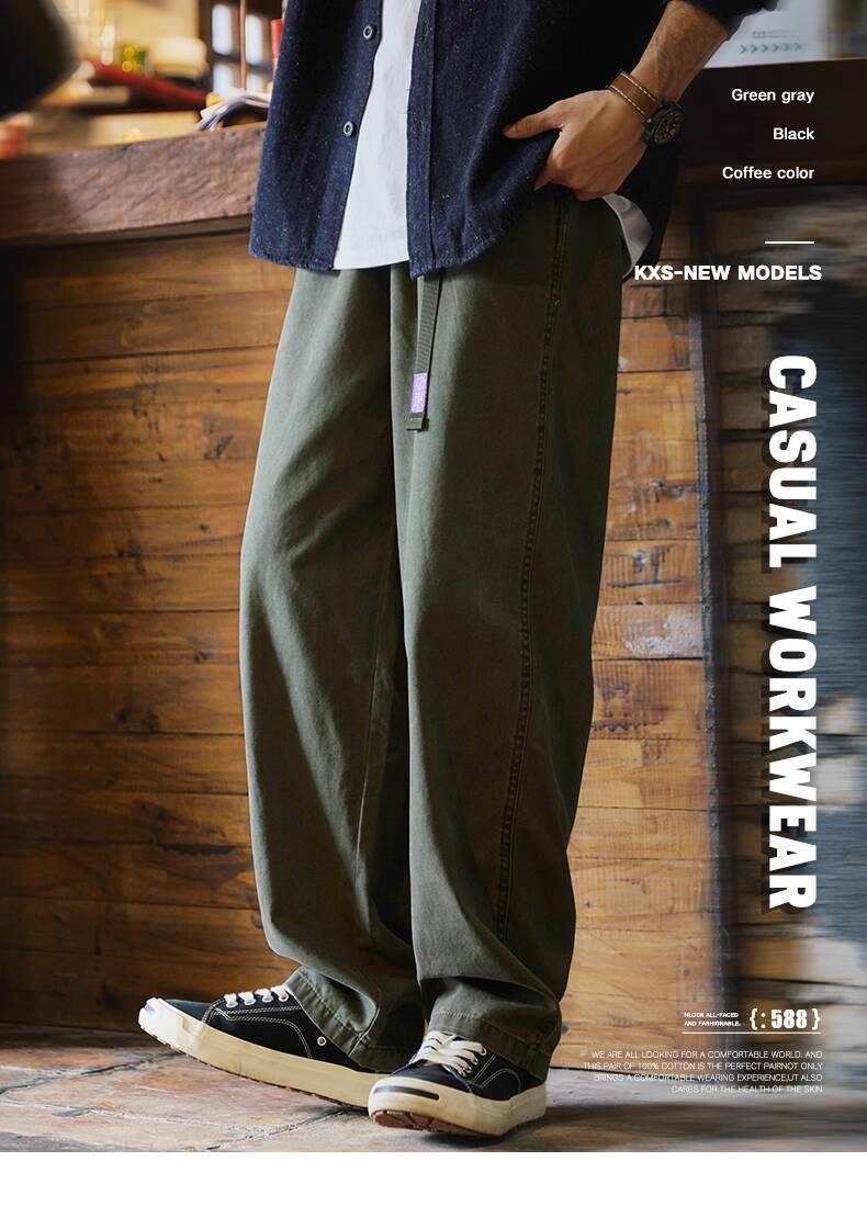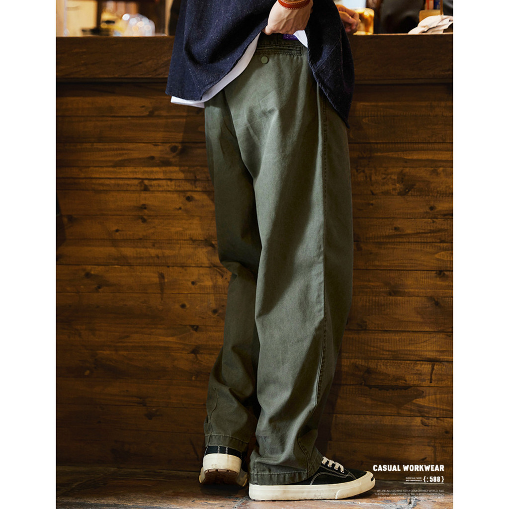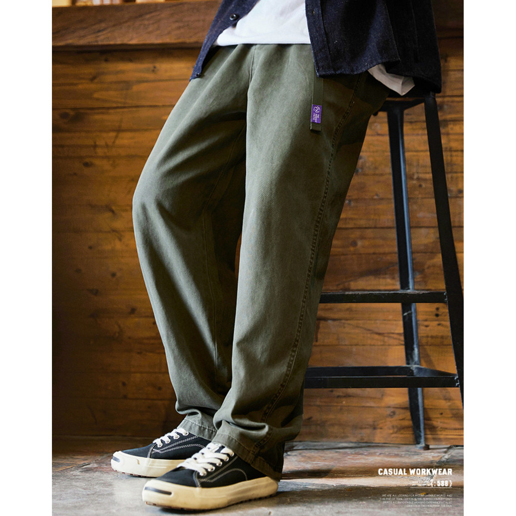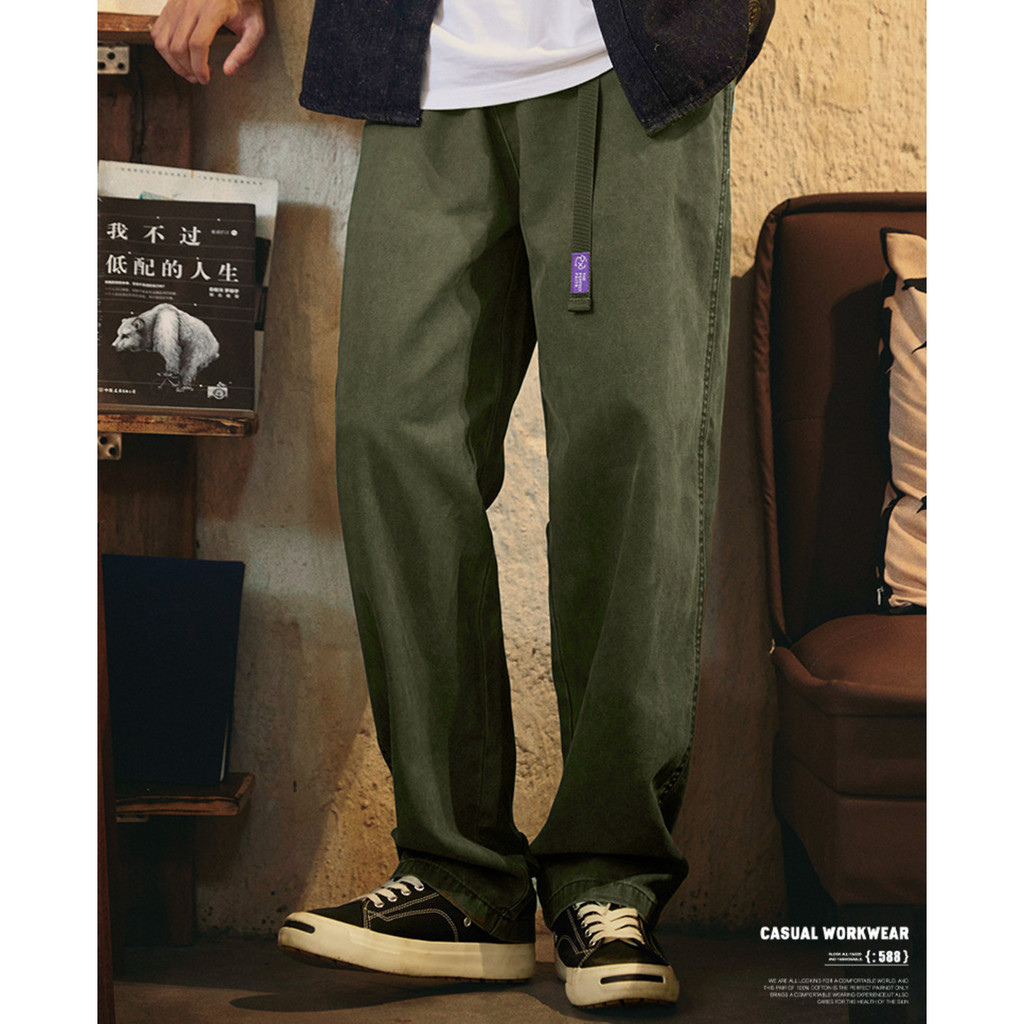 Japanese Retro Washed Beaded Pure Cotton Casual Pants Men 2025 Autumn New Style Trousers Loose Straight Overalls Trendy