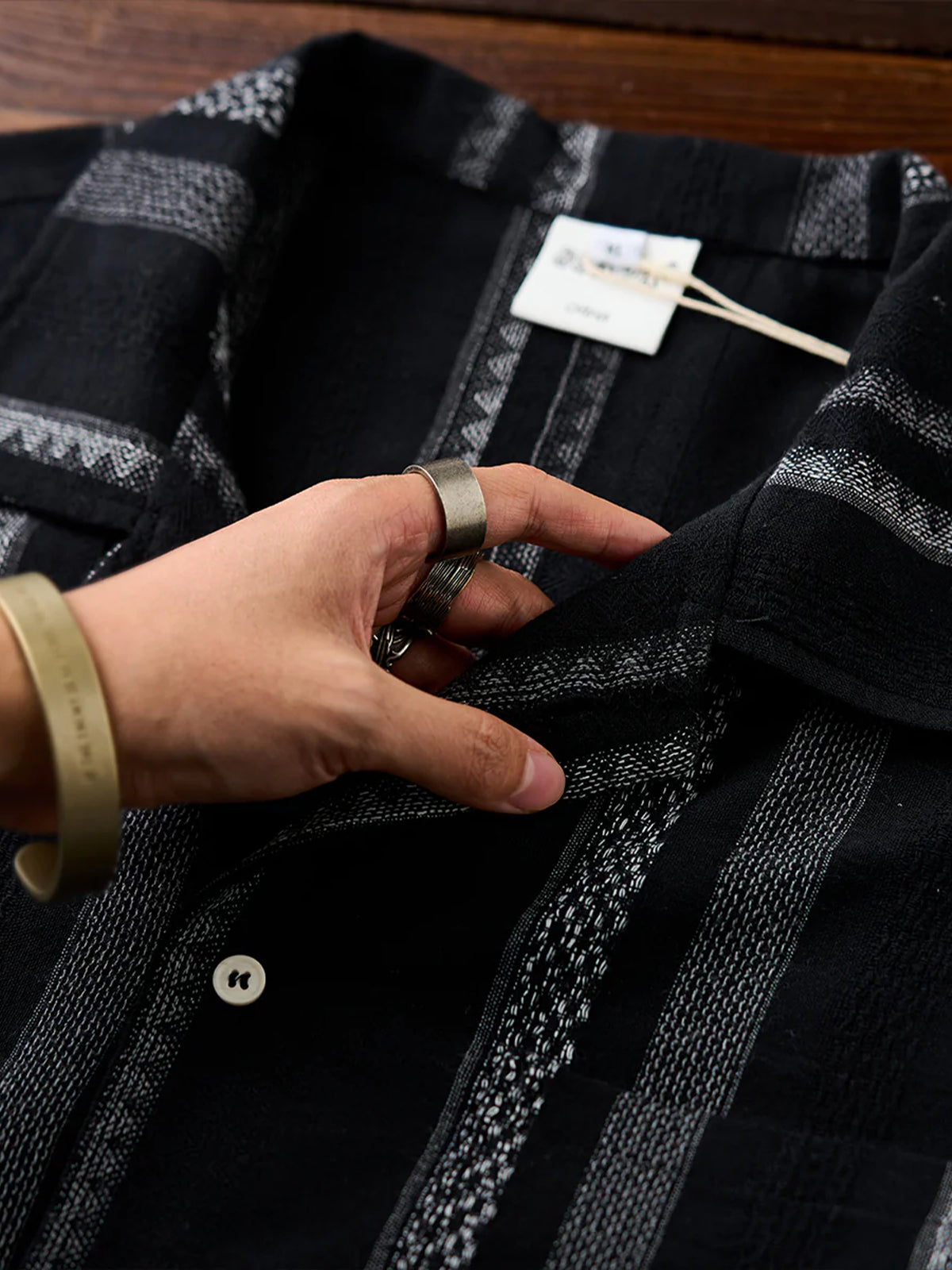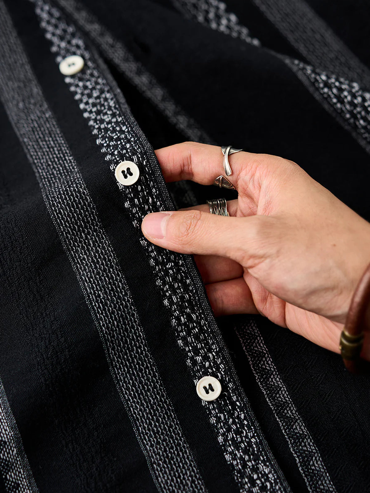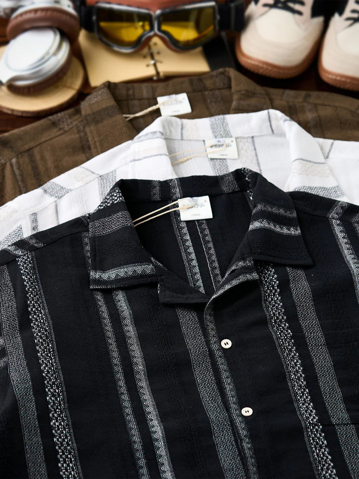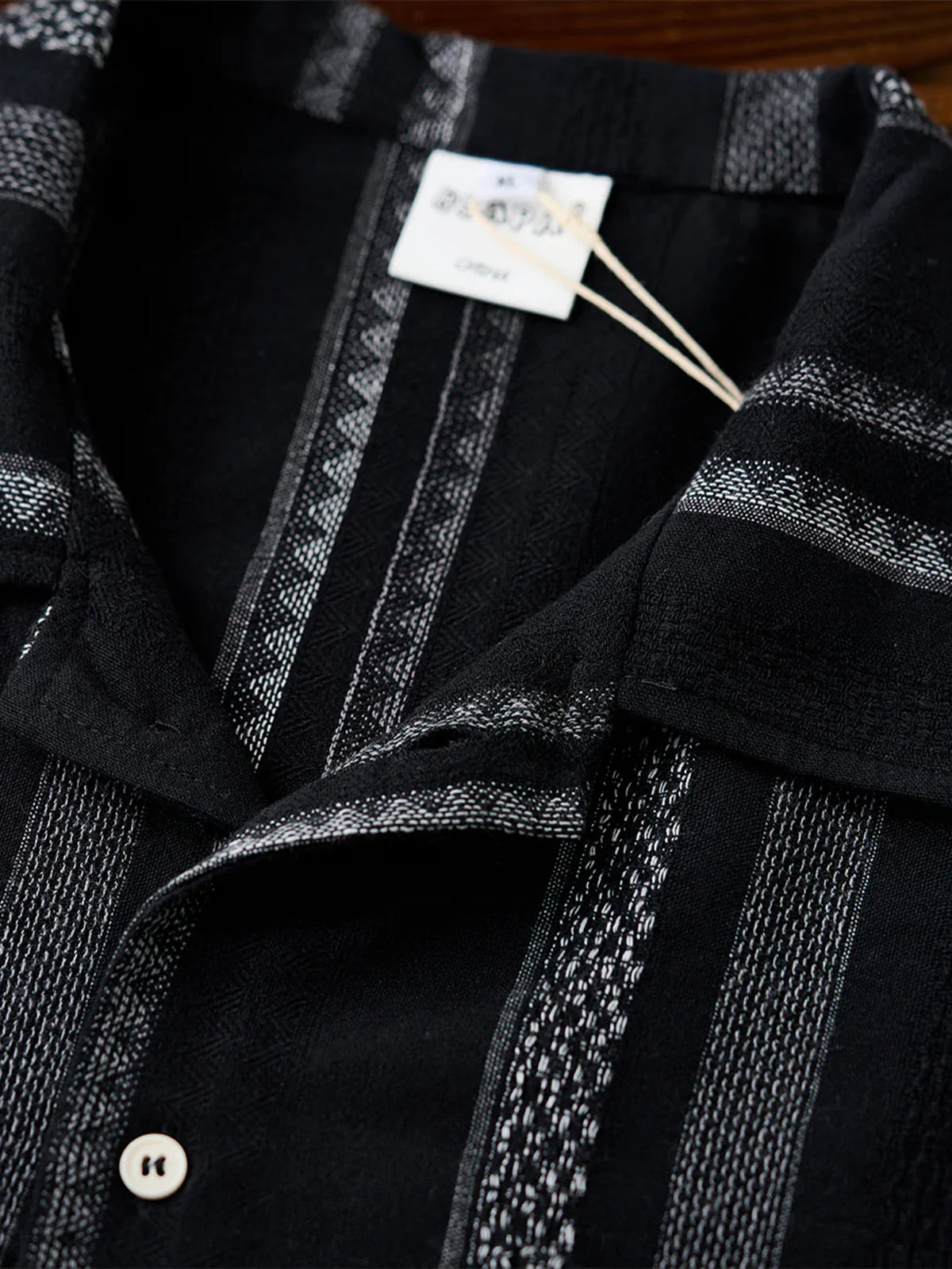 This Cuban shirt features a classic open-collar design that strikes a balance between timeless elegance and modern trend. Its relaxed resort-inspired look is versatile enough for everyday wear. The stripe pattern blends bold and fine lines for a sense of rhythm and movement, while the jacquard weave adds a subtle three-dimensional texture — elevating it beyond standard printed designs.