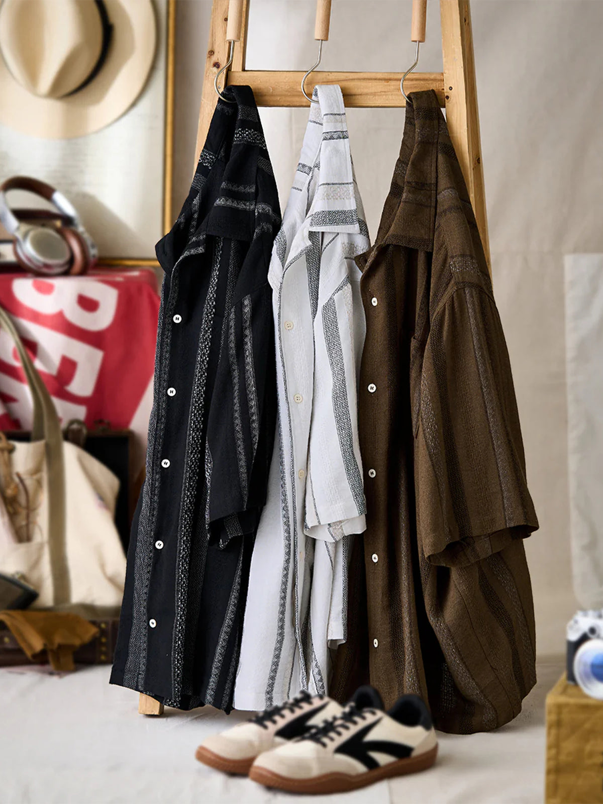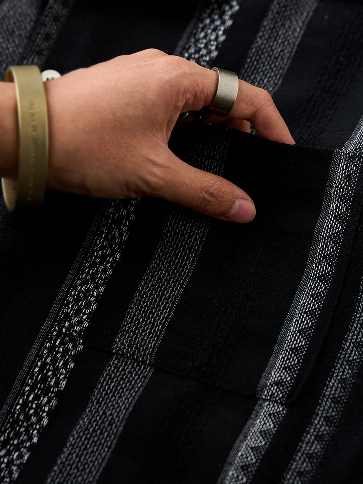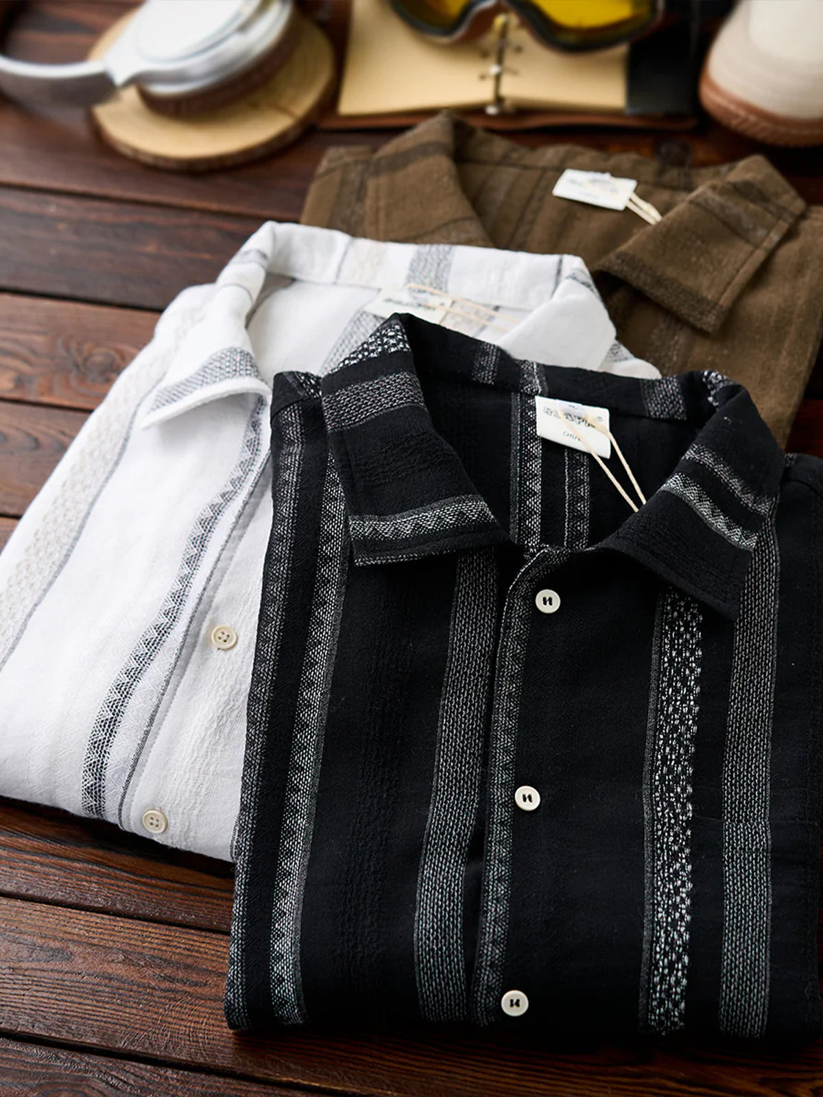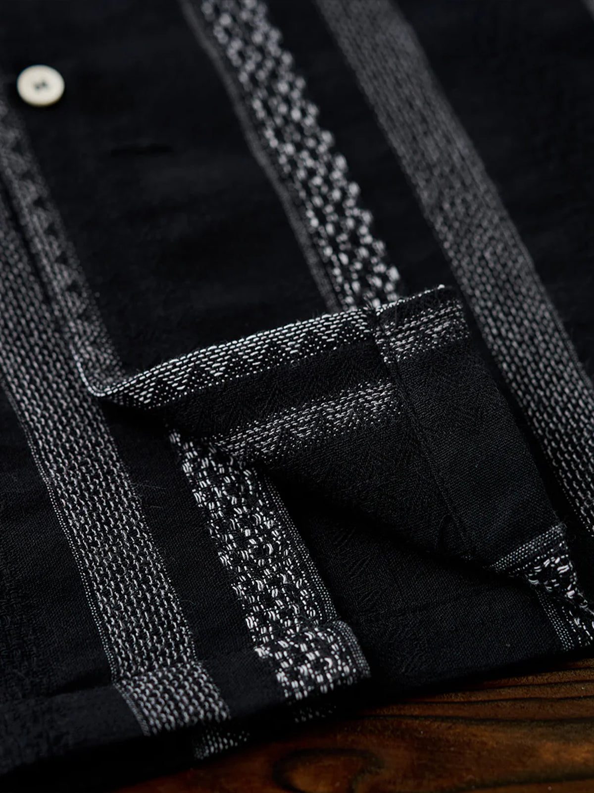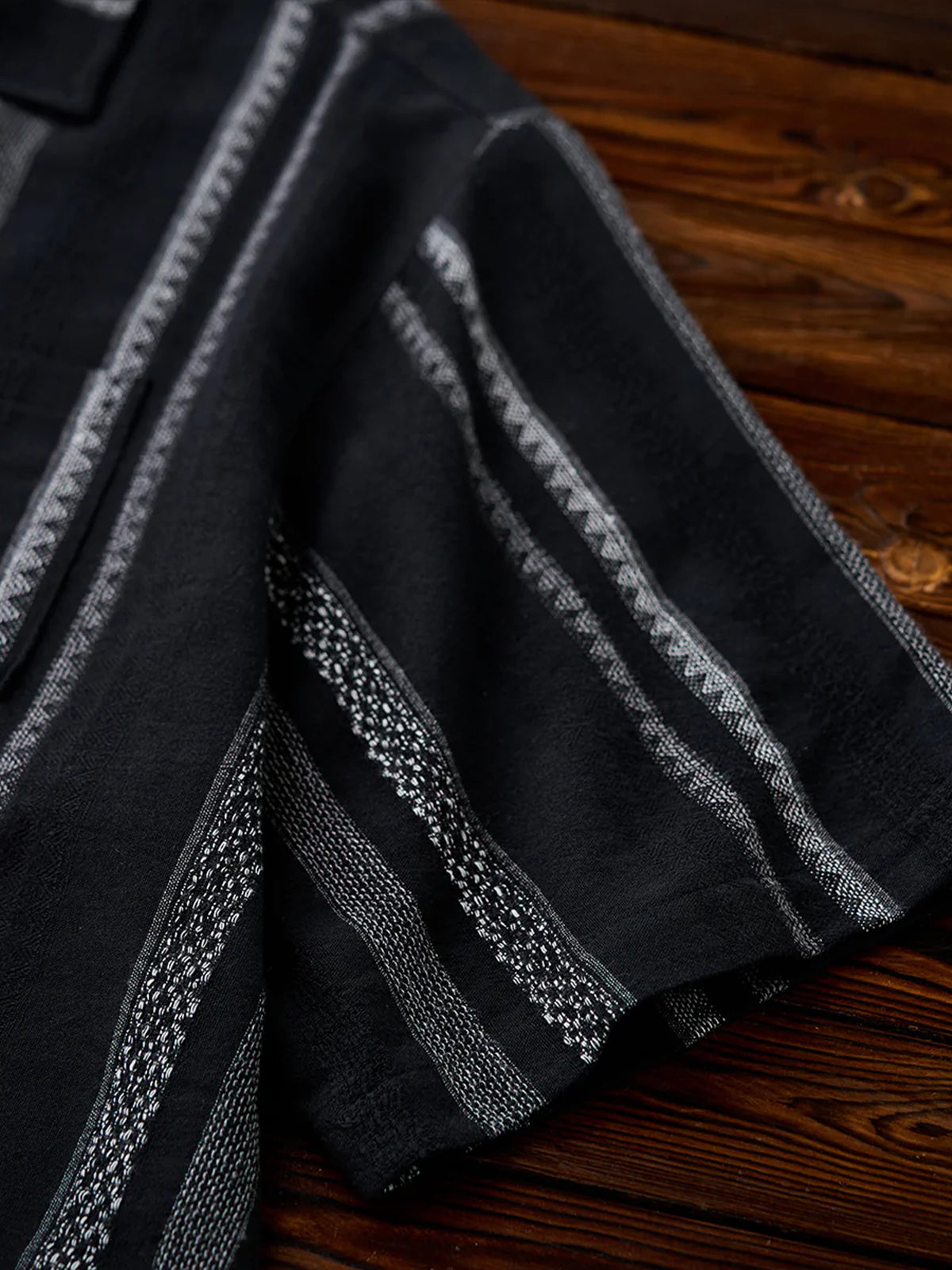 This Cuban shirt features a classic open-collar design that strikes a balance between timeless elegance and modern trend. Its relaxed resort-inspired look is versatile enough for everyday wear. The stripe pattern blends bold and fine lines for a sense of rhythm and movement, while the jacquard weave adds a subtle three-dimensional texture — elevating it beyond standard printed designs.