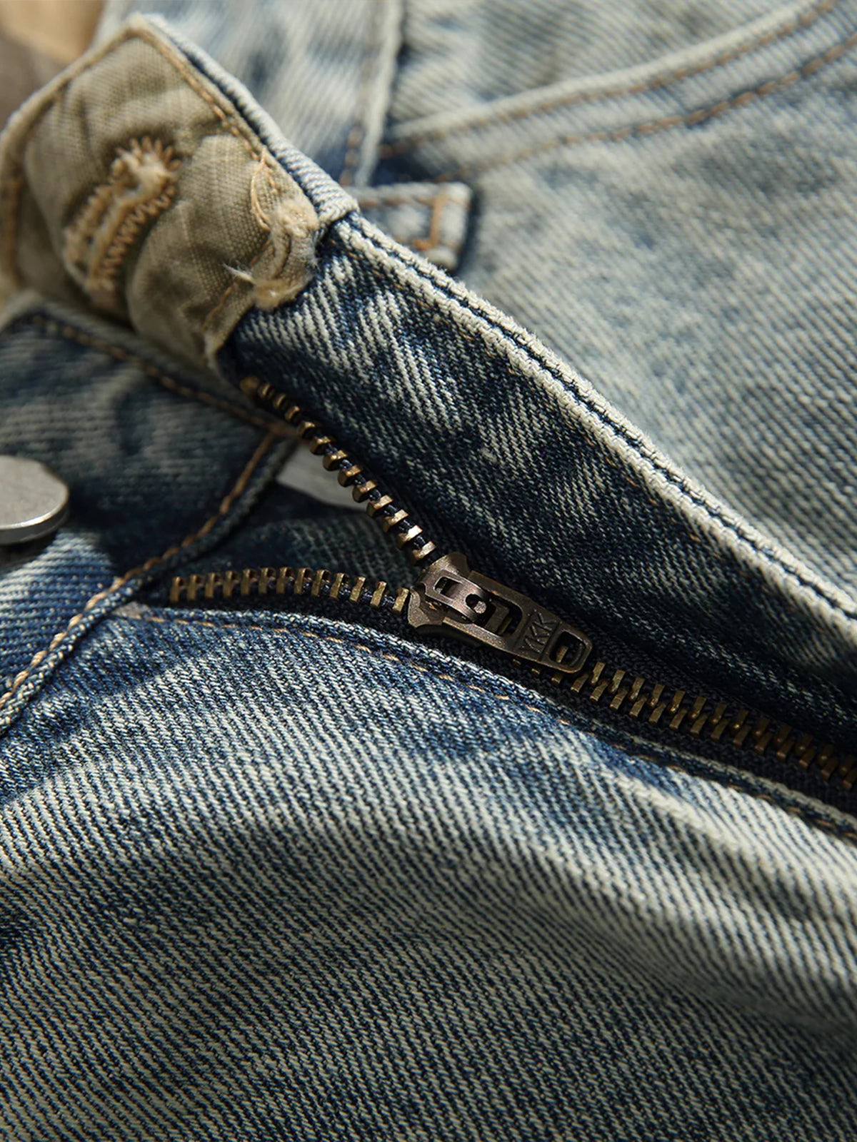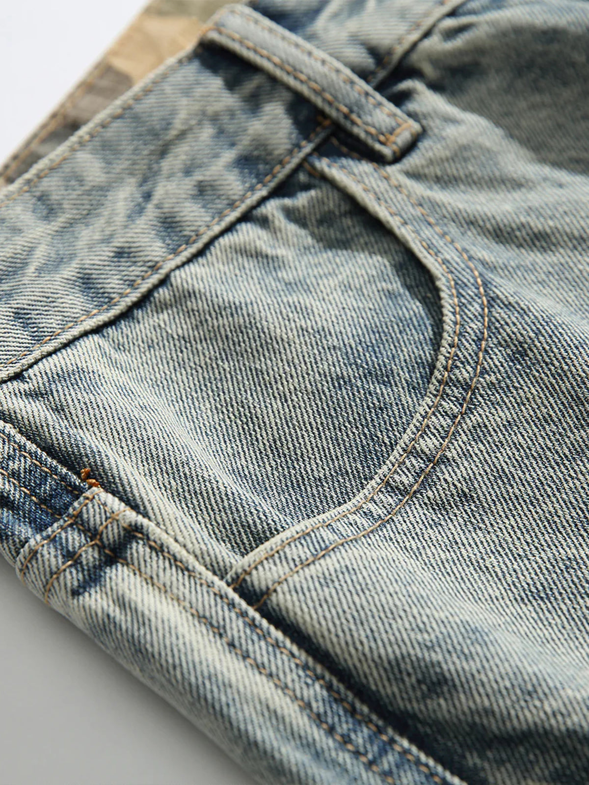 The jeans have been carefully hand-damaged and washed to bring out the deep texture, creating a natural look that is different from artificial uniformity. The silhouette features a tapered line that squeezes neatly to the hem while leaving room at the waist. The styling effect is also excellent, giving a casual yet sophisticated impression. Wear it with a T-shirt for a rugged look, or with a shirt or jacket for a more mature look.