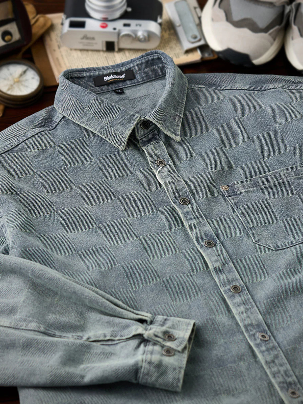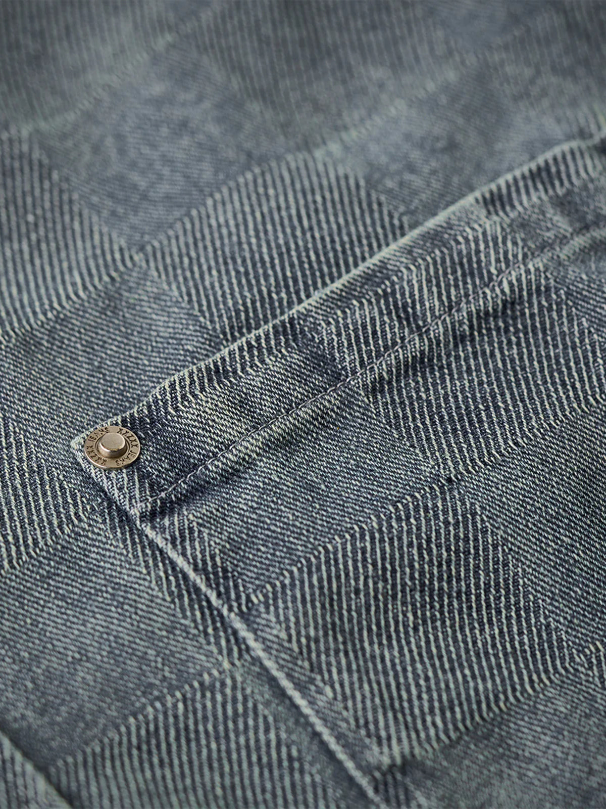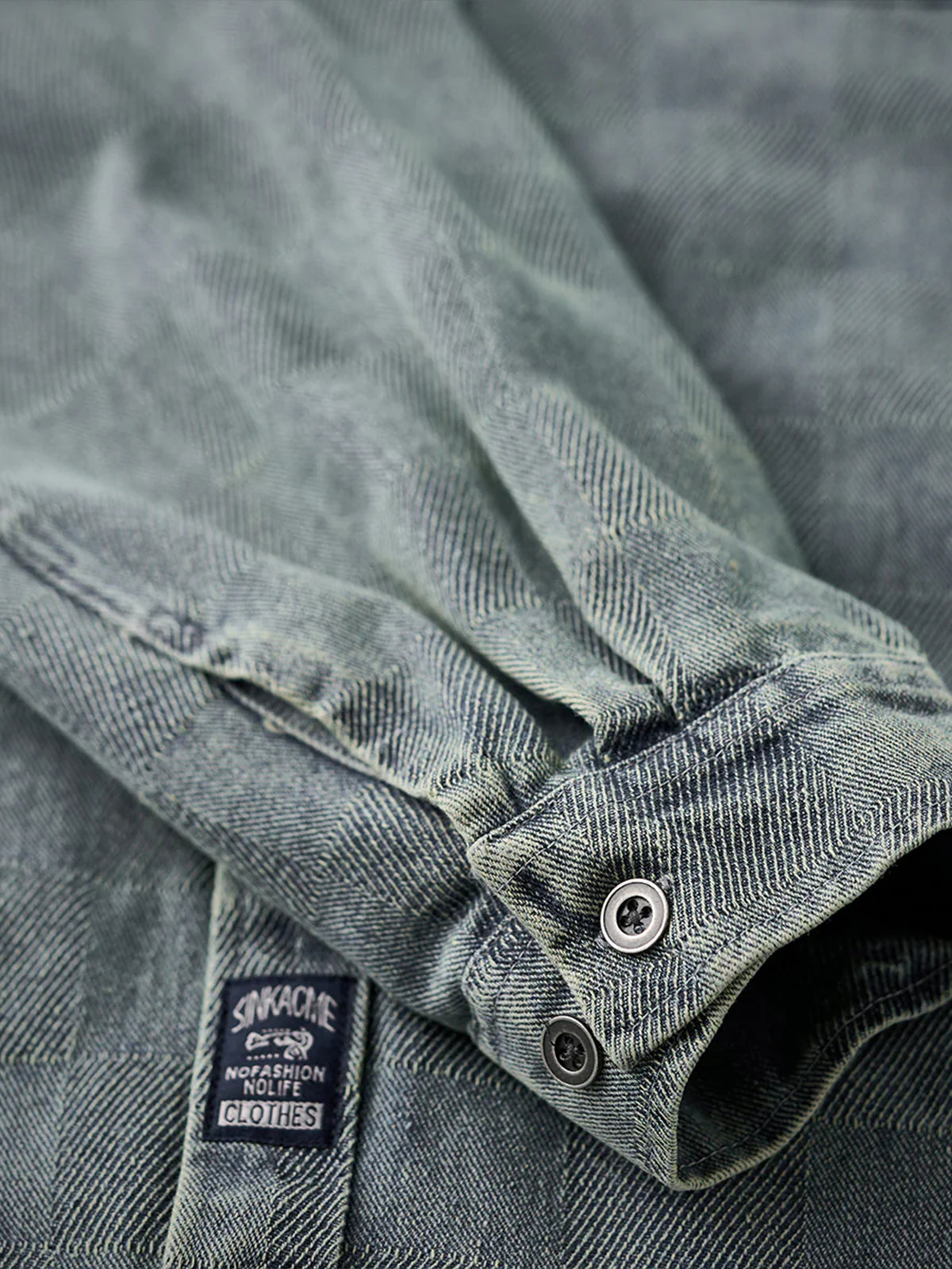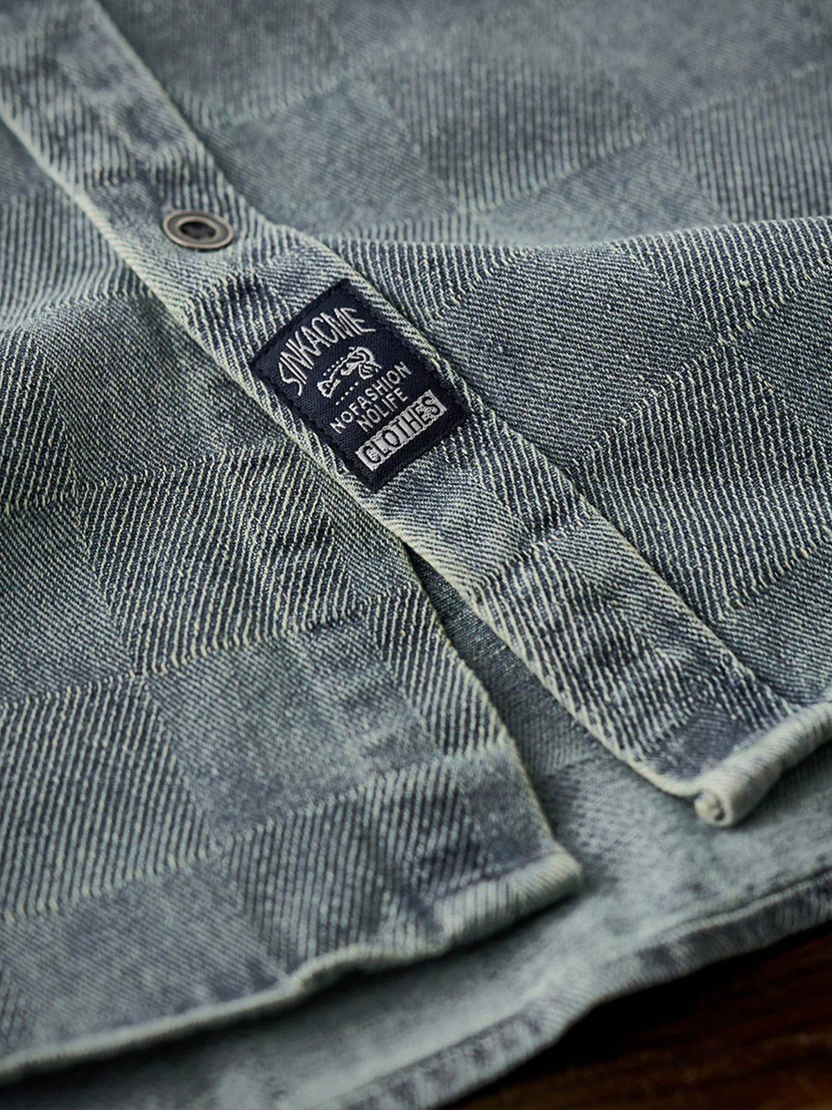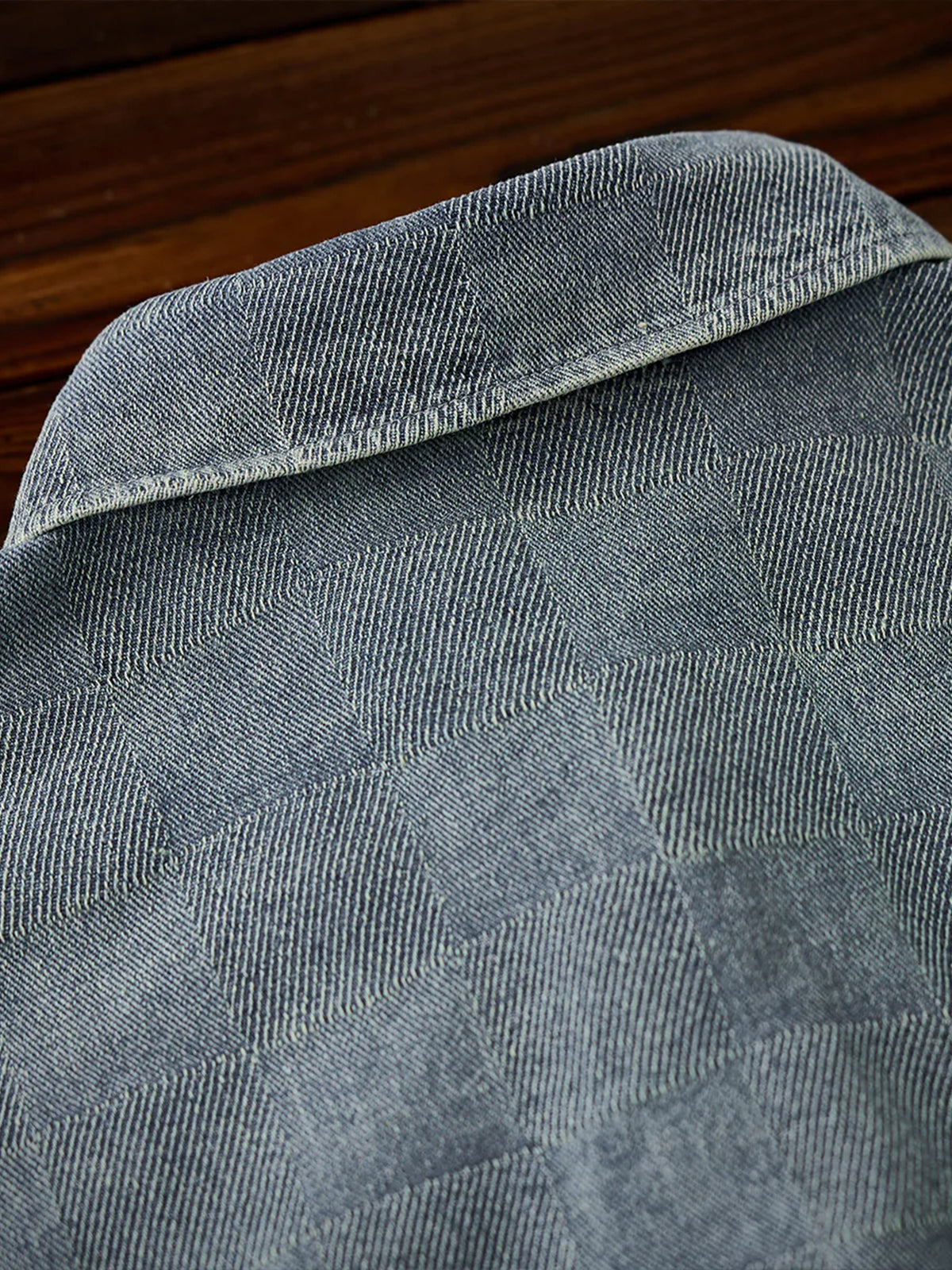The entire area is designed with a checkered weave, and the pattern created by the weaving creates a casual three-dimensional luxury feel. The design on the front is simple without any additional decoration, giving an elegant impression. A pocket is used to store the typical practical details of a work shirt. The sleeves are slightly longer and have button cuffs that fit the wrist. The hem is designed with a round cut to create a natural style.