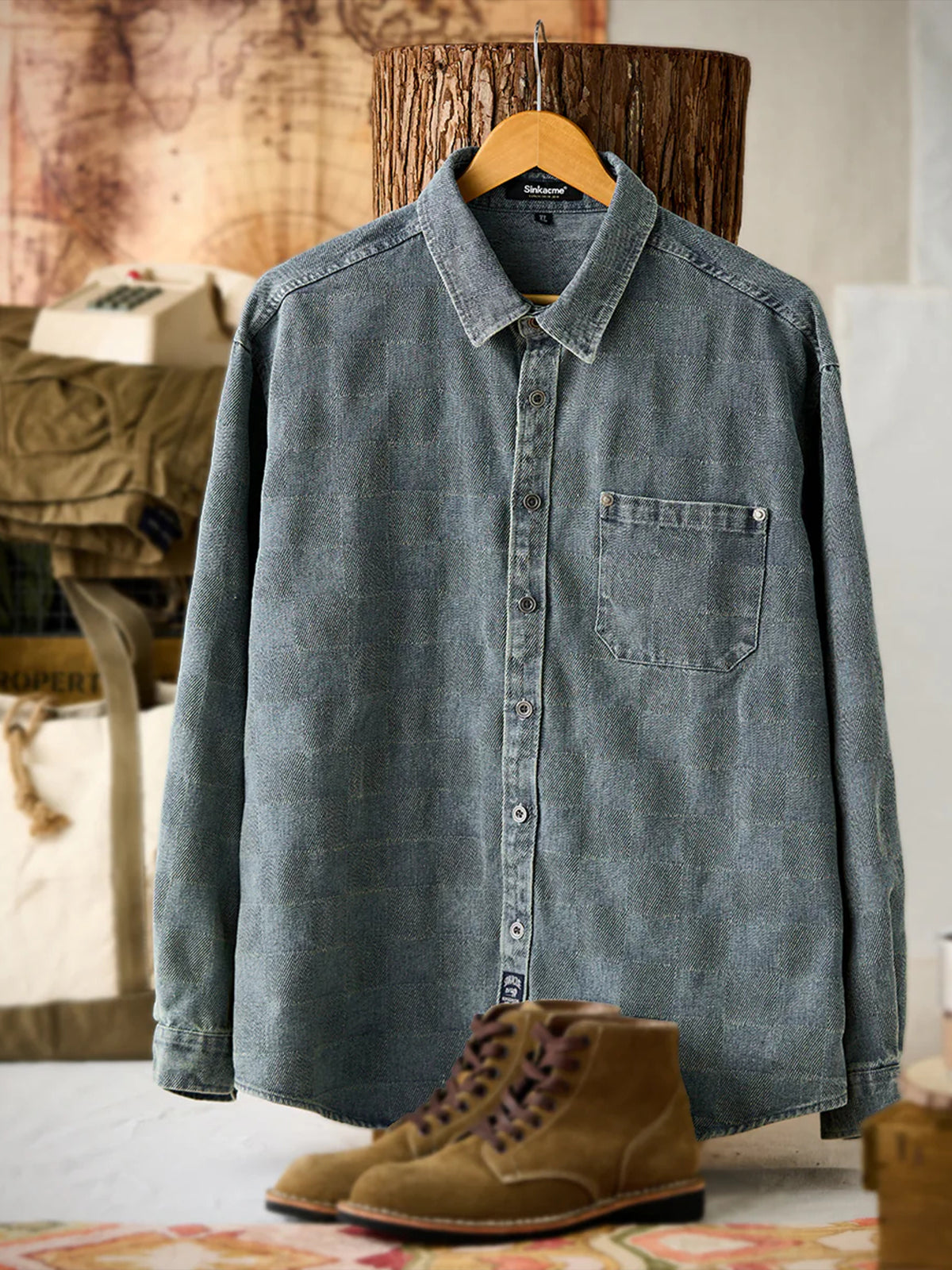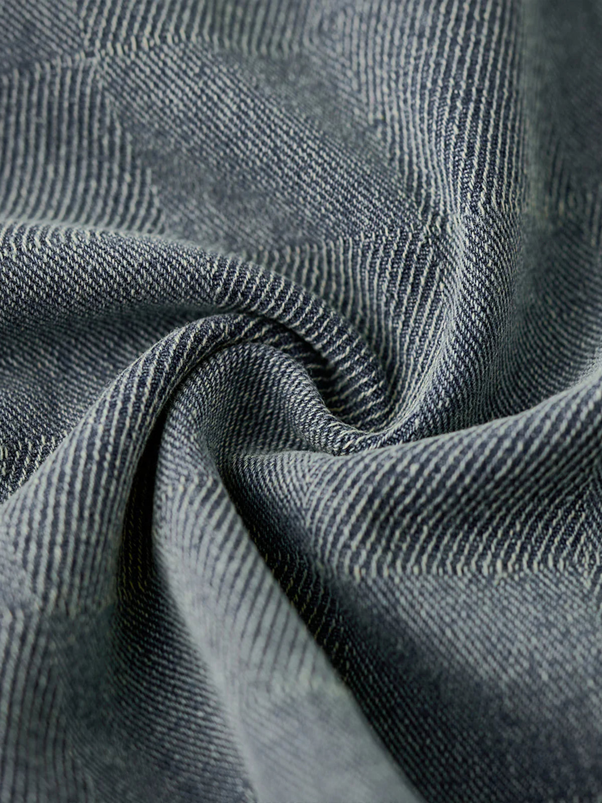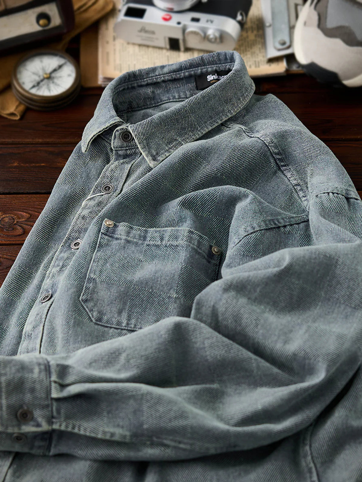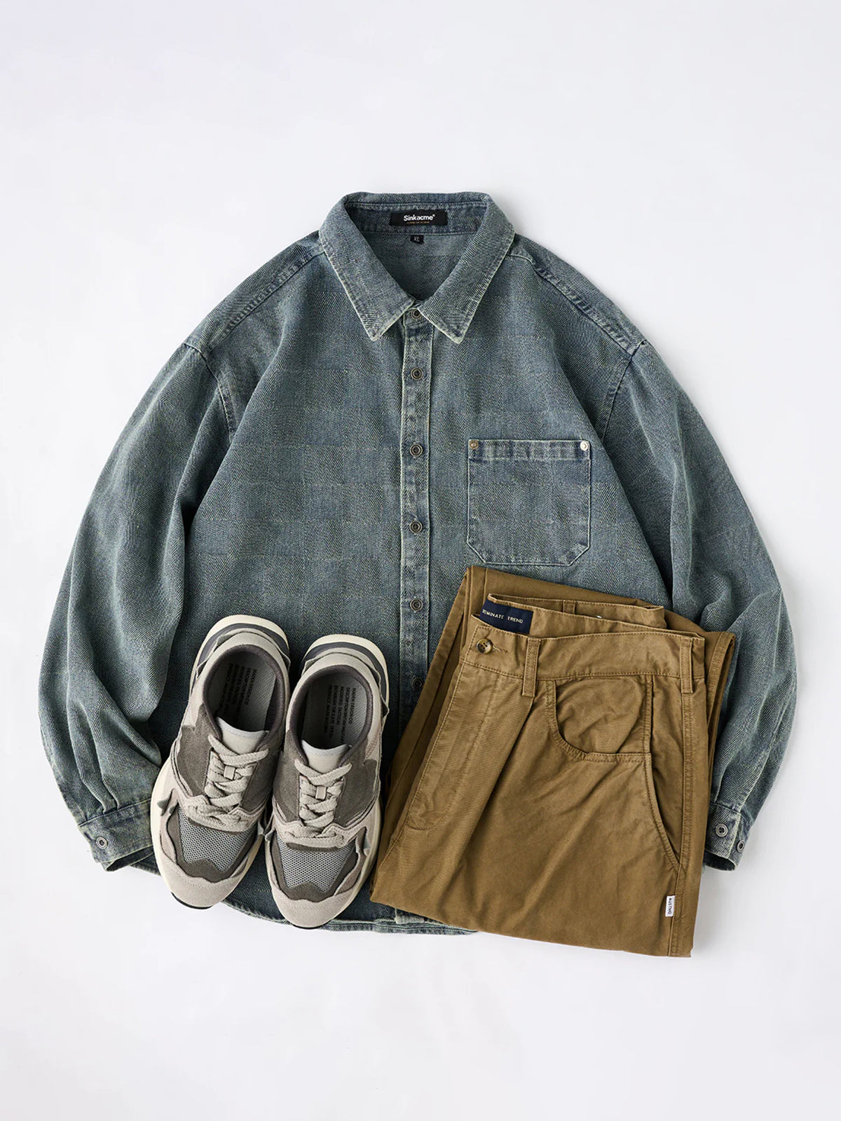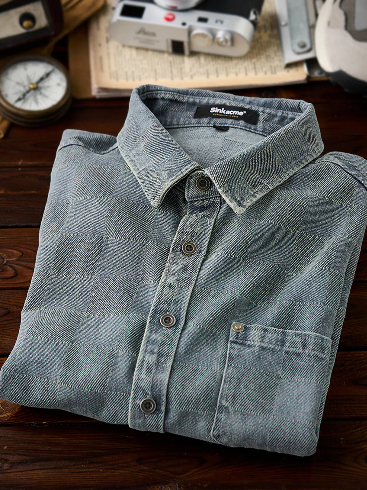 The entire area is designed with a checkered weave, and the pattern created by the weaving creates a casual three-dimensional luxury feel. The design on the front is simple without any additional decoration, giving an elegant impression. A pocket is used to store the typical practical details of a work shirt. The sleeves are slightly longer and have button cuffs that fit the wrist. The hem is designed with a round cut to create a natural style.