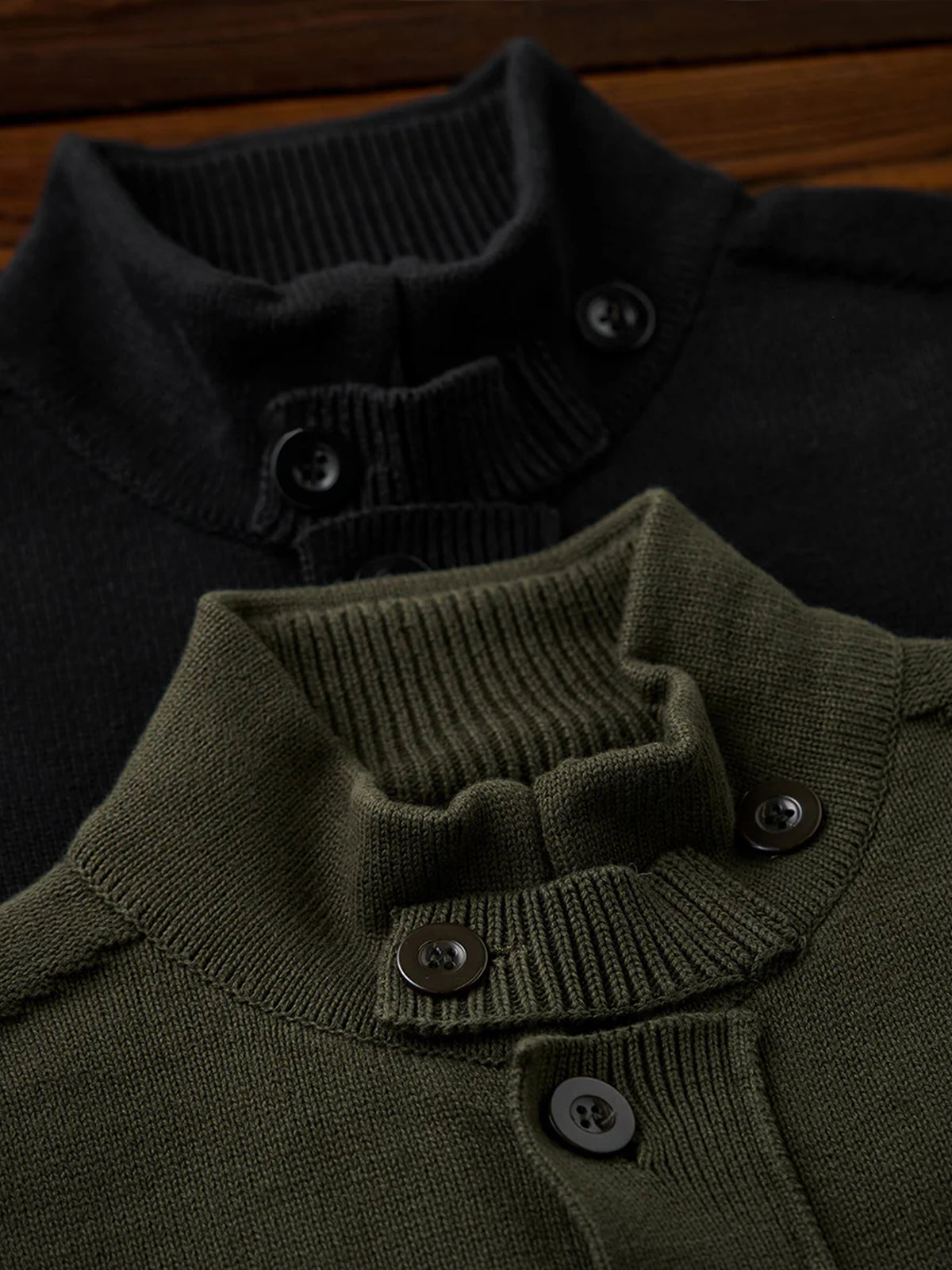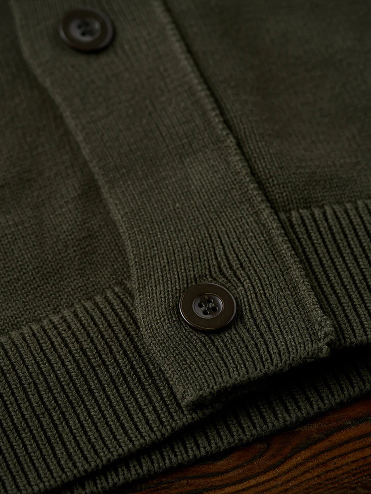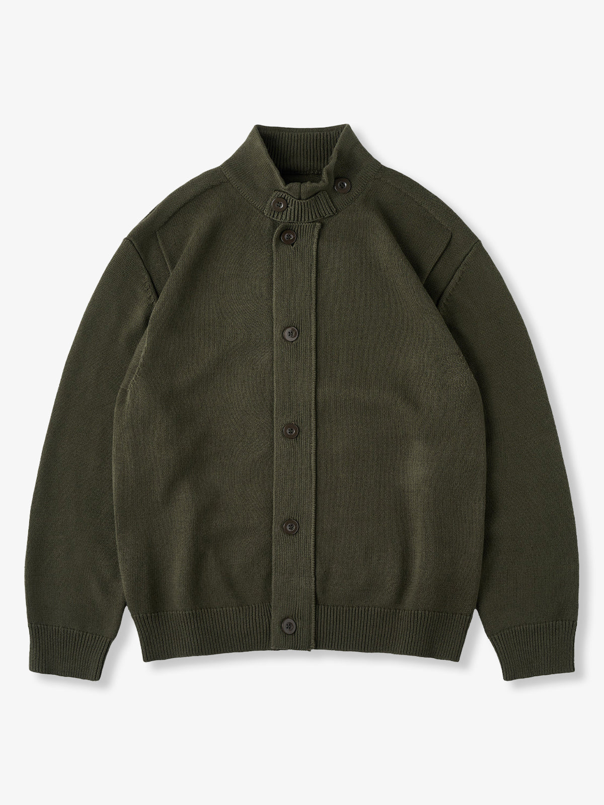 This cardigan features a raised ribbed high neck, providing excellent warmth. The neck includes buttons, allowing you to adjust the opening for styling versatility.