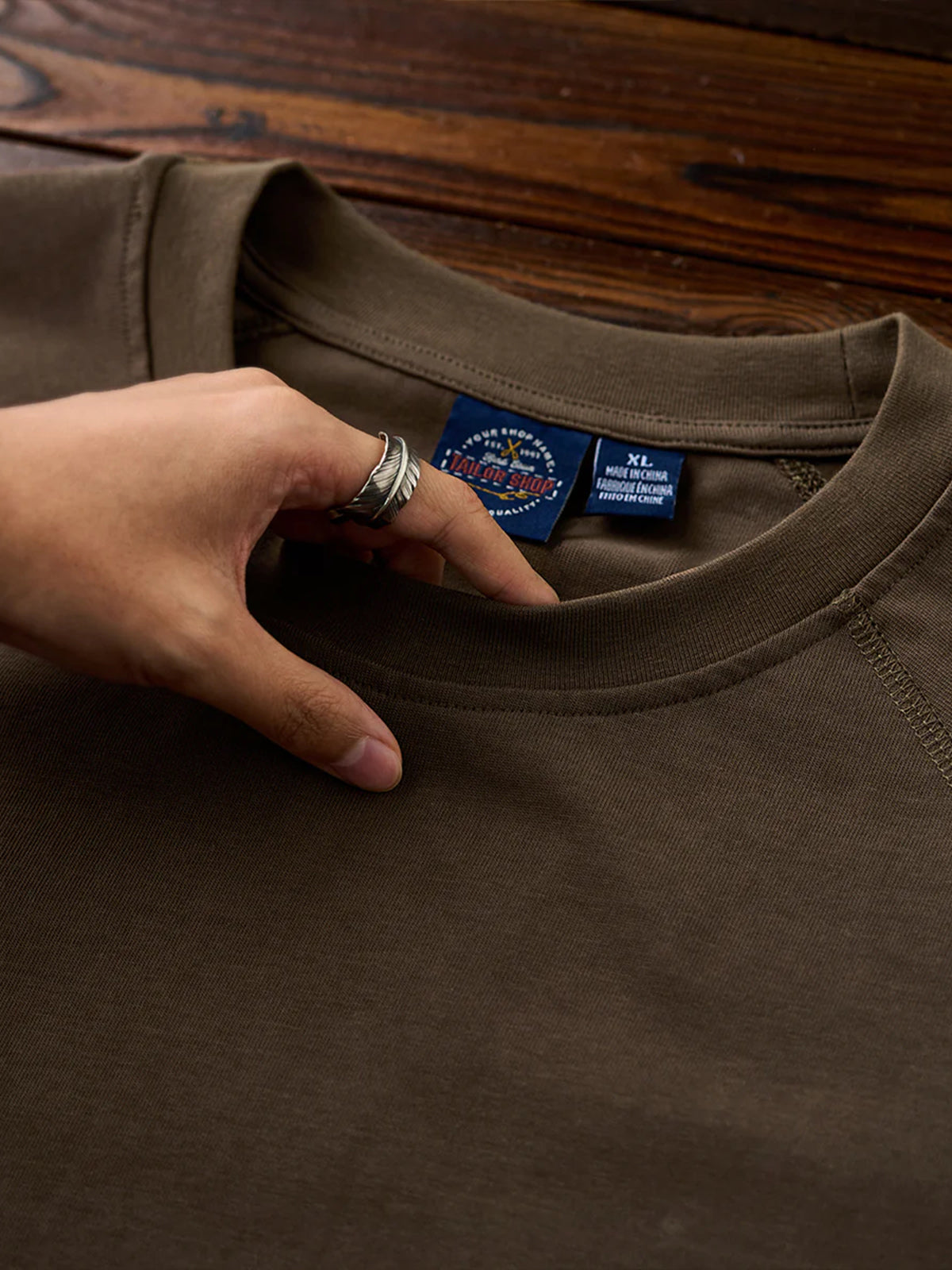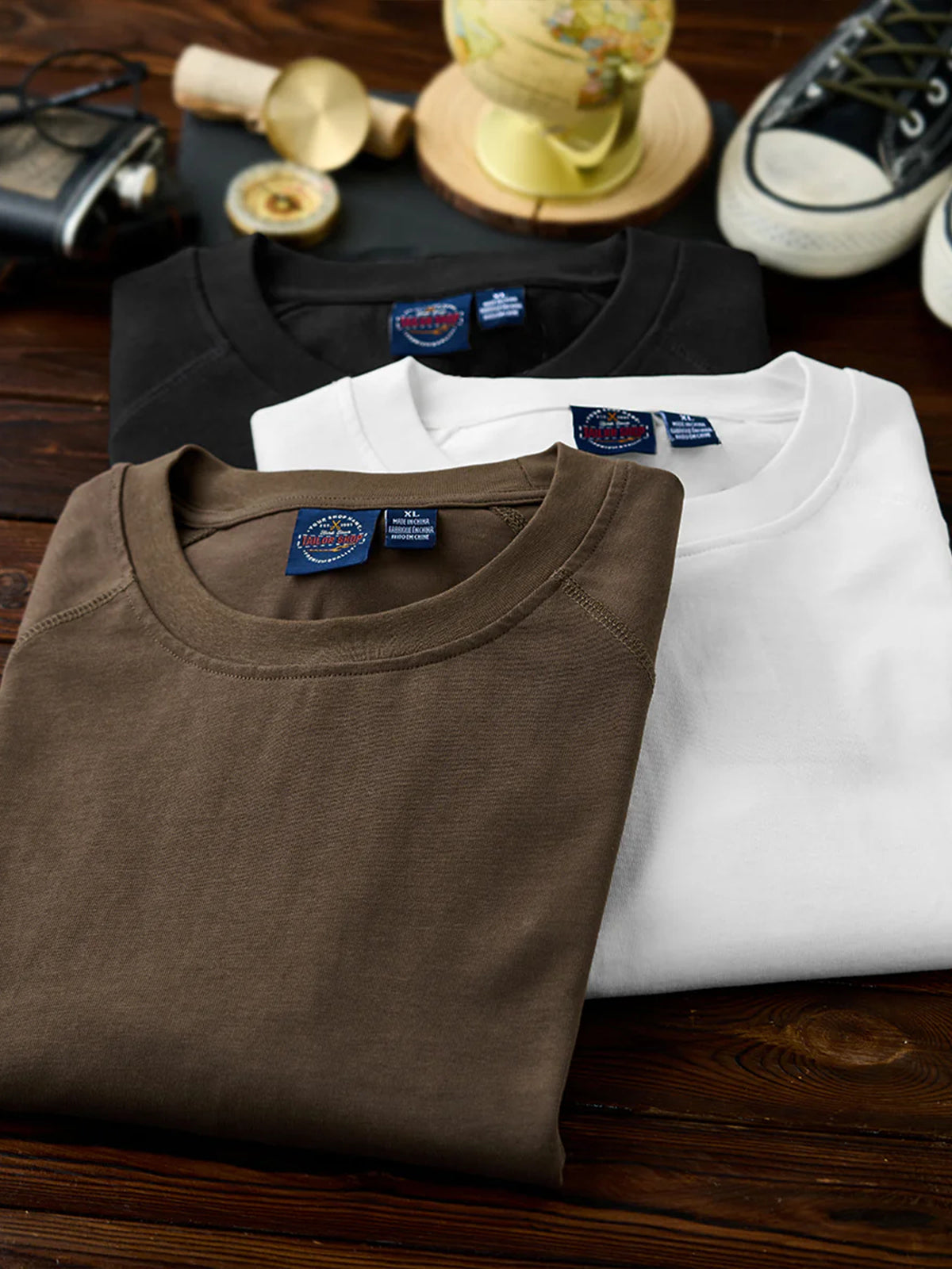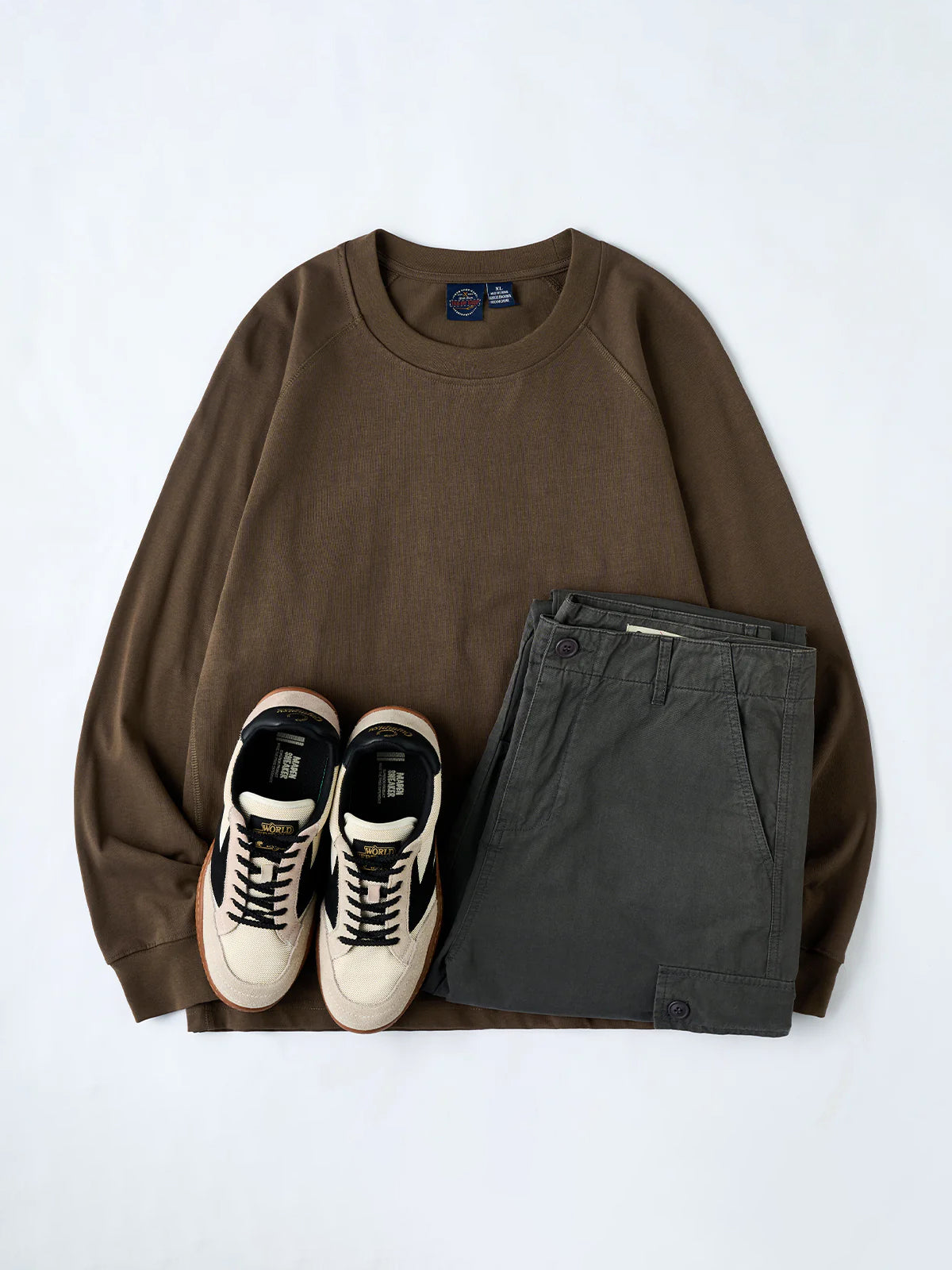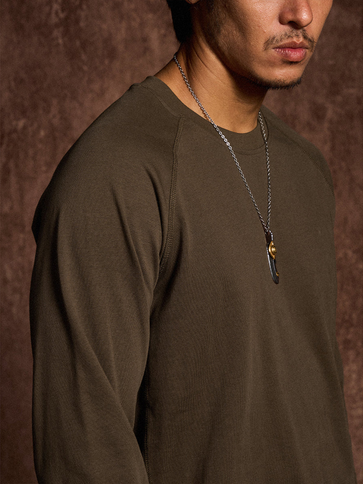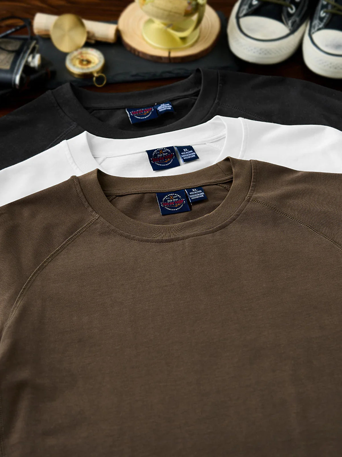 A long-sleeve T-shirt featuring a raglan sleeve construction that extends smoothly from the shoulders to the cuffs. The seams and side stitch lines are reinforced with durable thread for strength and shape retention, creating a clean, dimensional silhouette. A small brand tag is placed subtly at the hem, adding a refined touch to the minimalist design. Available in coffee, black, and white, this versatile piece transitions effortlessly from casual to streetwear styles.