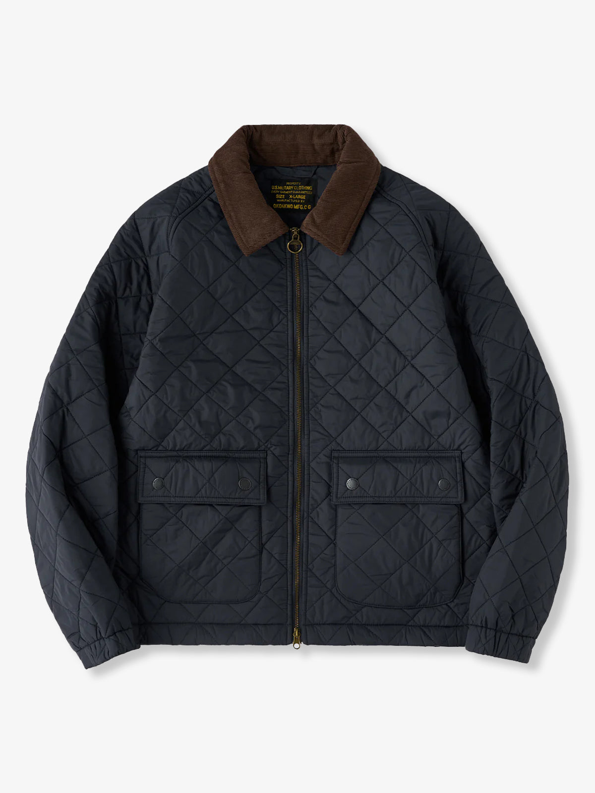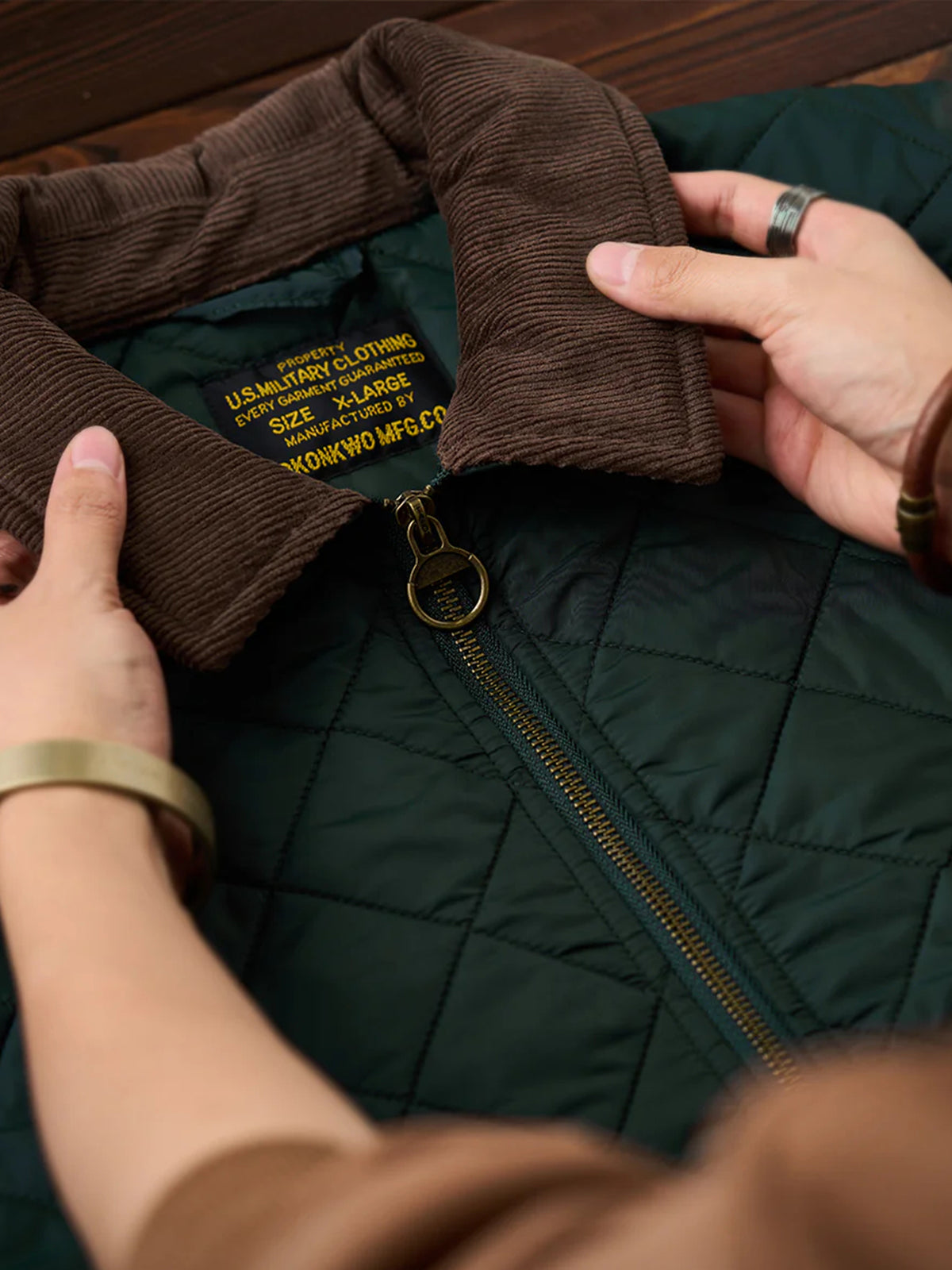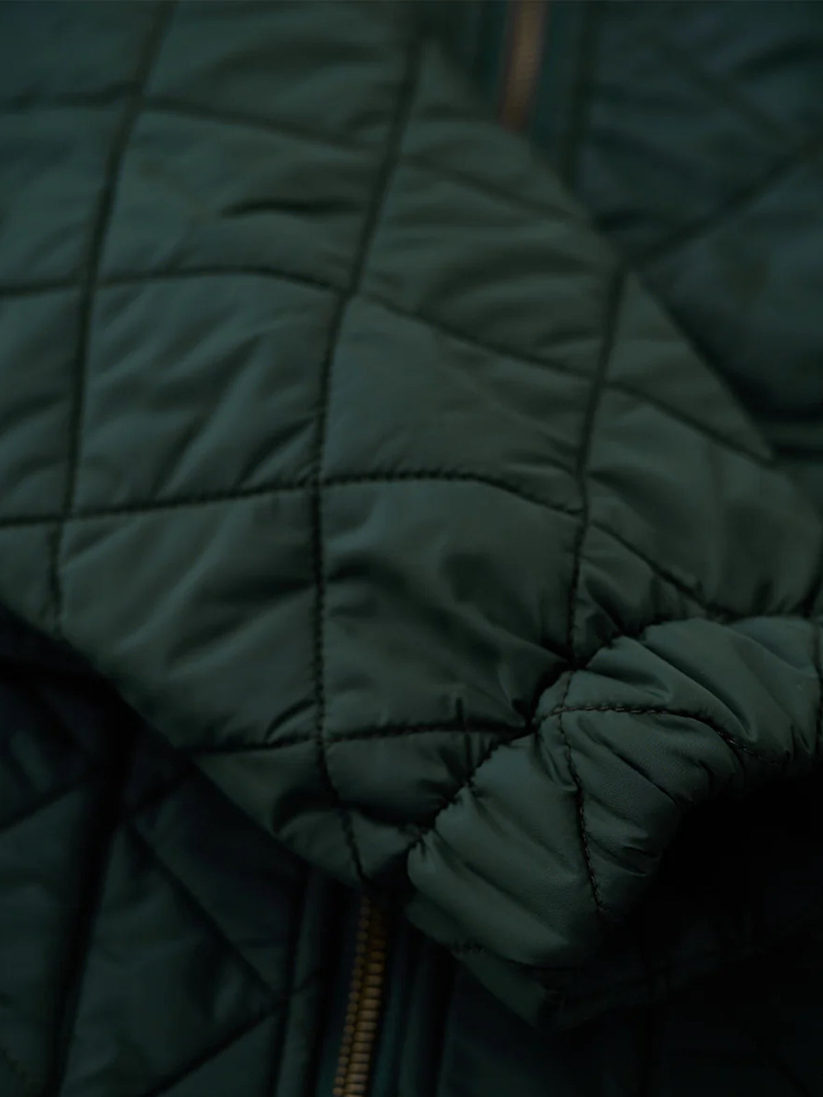The entire surface is adorned with a diamond-shaped quilted pattern, creating a textured look that gives the jacket a stylish appearance. The diamond quilting is typically arranged with consistent size and spacing, showcasing meticulous attention to detail.