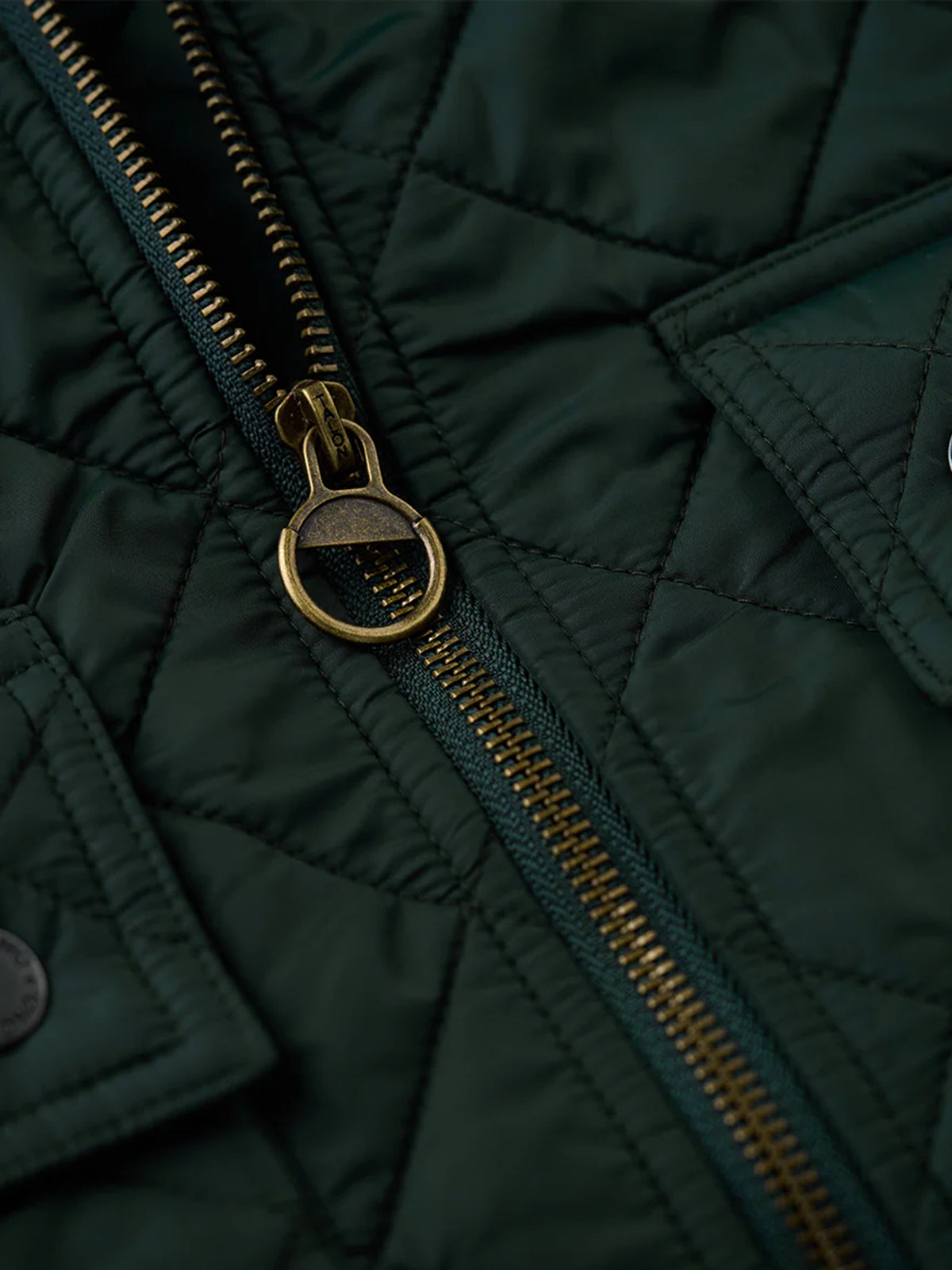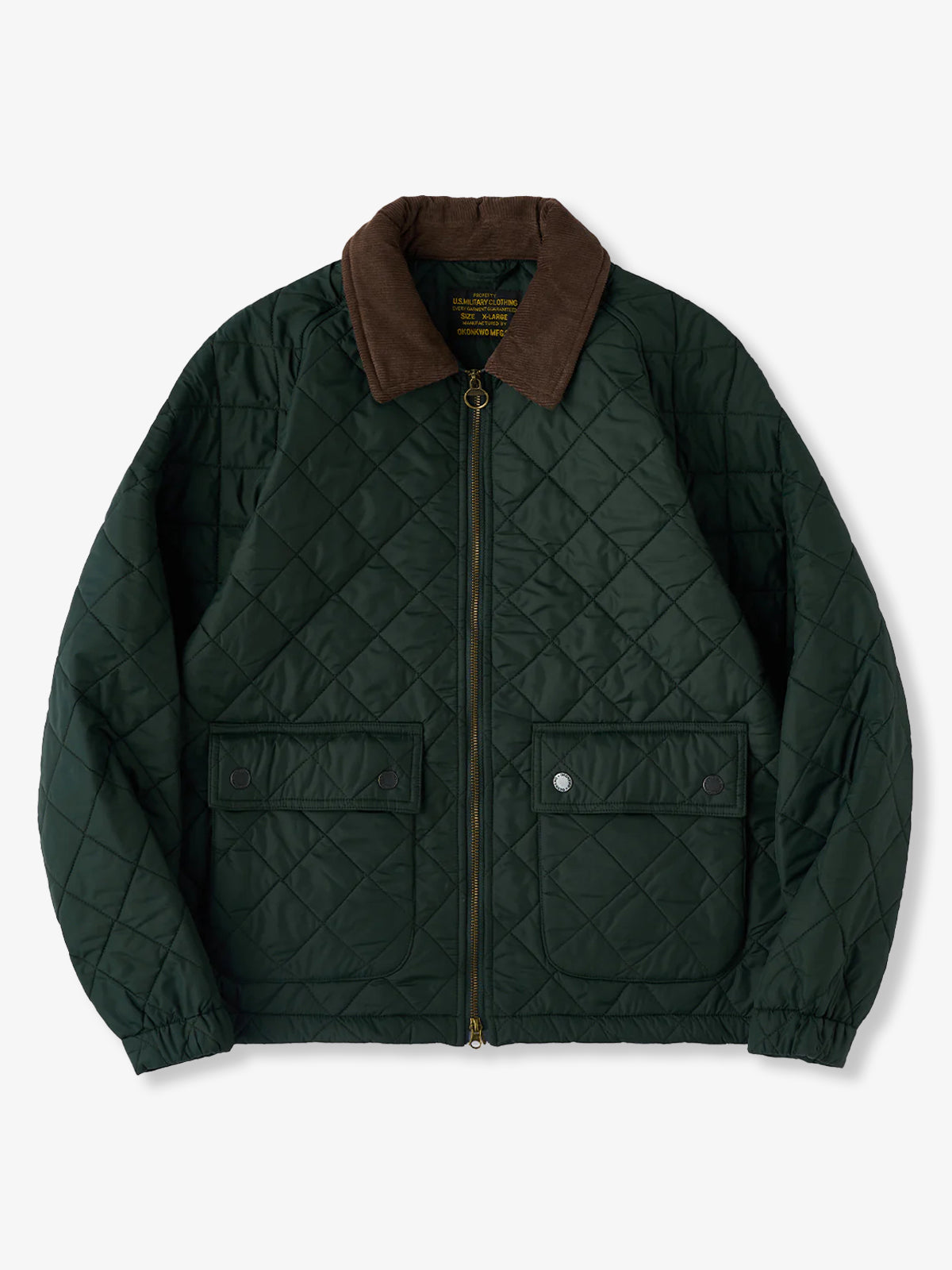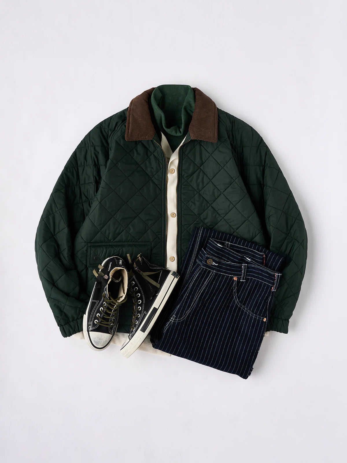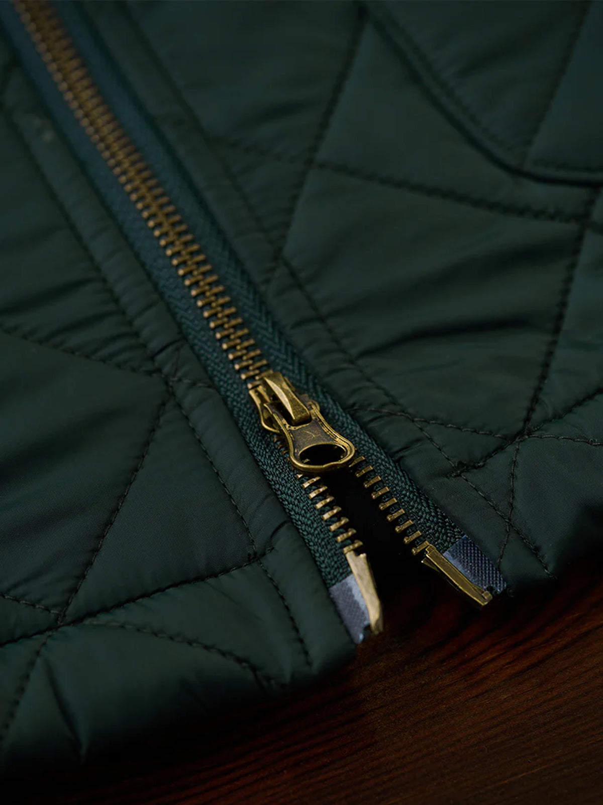 The entire surface is adorned with a diamond-shaped quilted pattern, creating a textured look that gives the jacket a stylish appearance. The diamond quilting is typically arranged with consistent size and spacing, showcasing meticulous attention to detail.