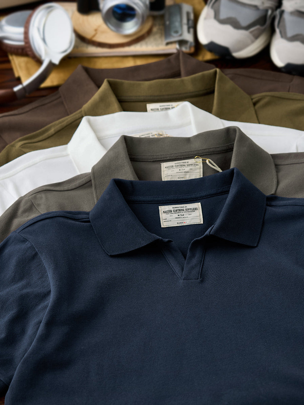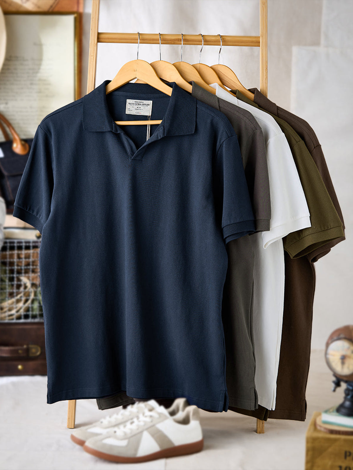 From the "Clean Fit" series that balances relaxed comfort with refined style, this Italian collar polo shirt is offered in five versatile colors. The open, buttonless neckline adds a touch of effortless elegance, creating a polished casual look suitable for any setting. With a minimalist and sophisticated design, it transitions seamlessly between on and off-duty wear. Lightweight and breathable, it's ideal for warm-weather dressing, with each color bringing its own unique vibe.