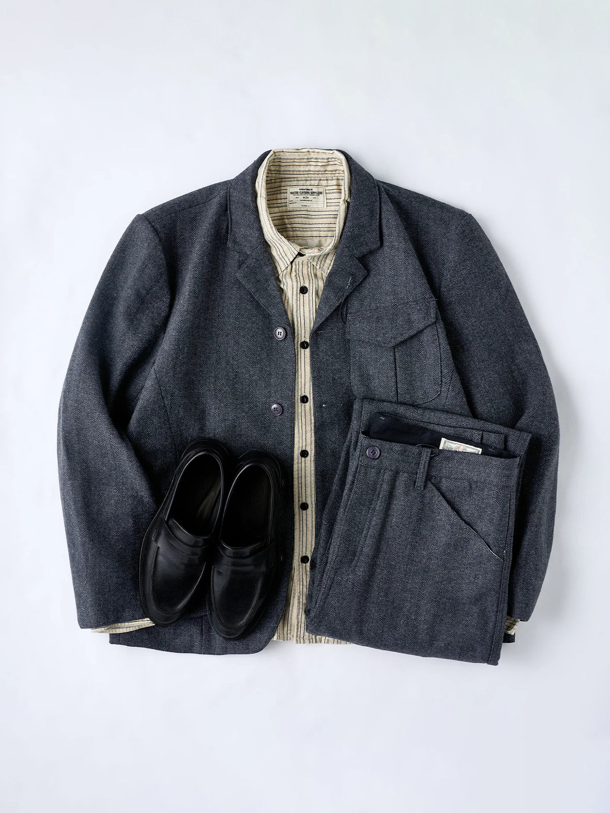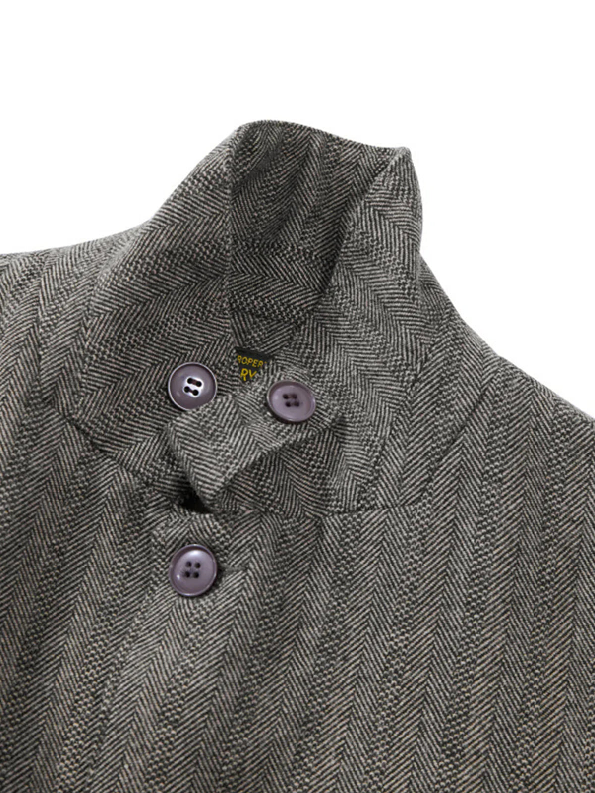 Crafted from a premium wool-blend fabric and finished in a classic herringbone weave, this tailored jacket delivers both refinement and rugged charm. The collar is equipped with a chin-strap button, allowing you to fasten the neck securely on windy or chilly days — a practical detail rooted in vintage workwear. Three front pockets provide convenient storage for small essentials while adding a subtle work-inspired touch. The clean tailored silhouette is combined with heritage-style accents, making it a versatile piece that works across business, smart casual, and everyday outfits.