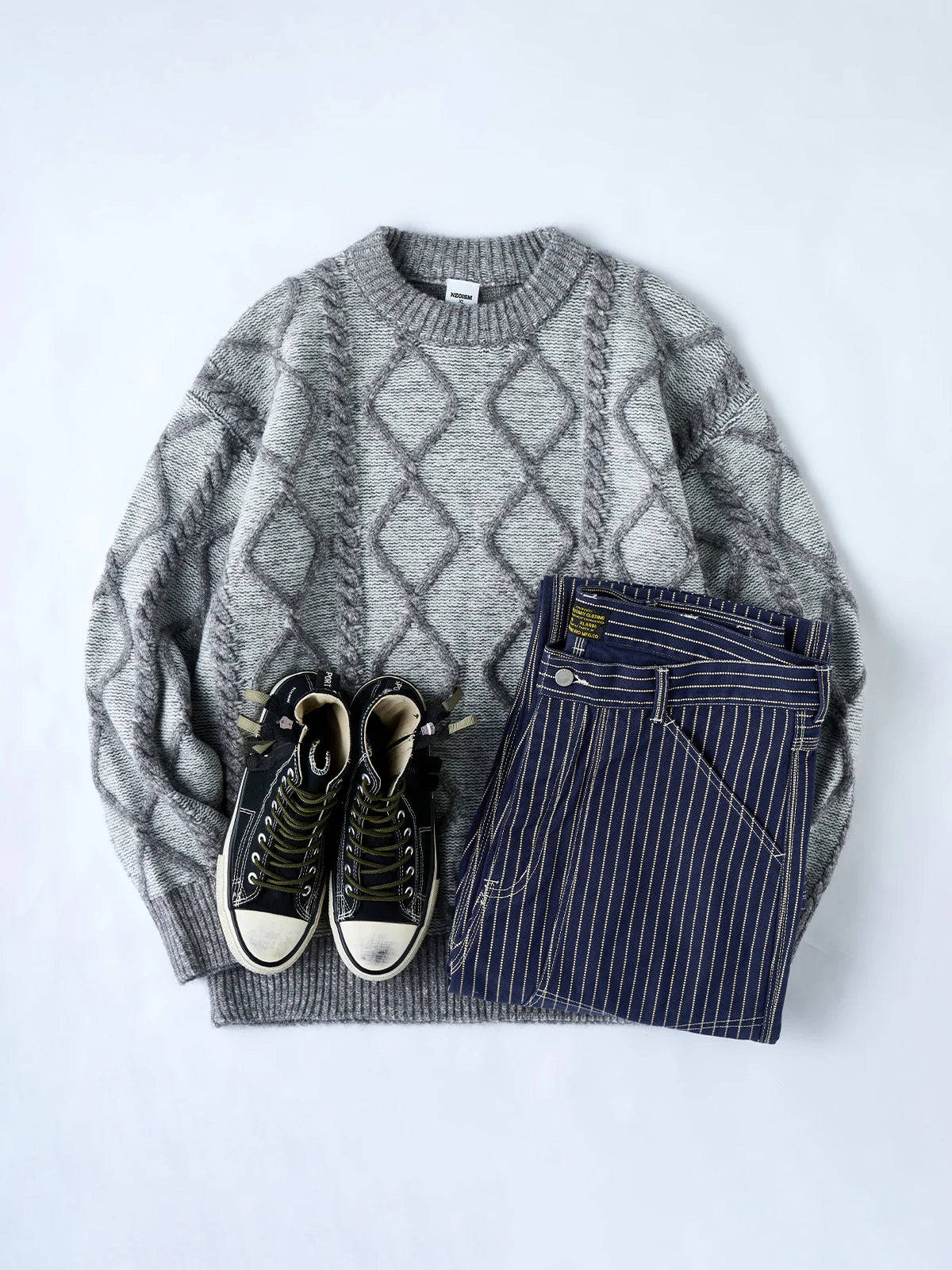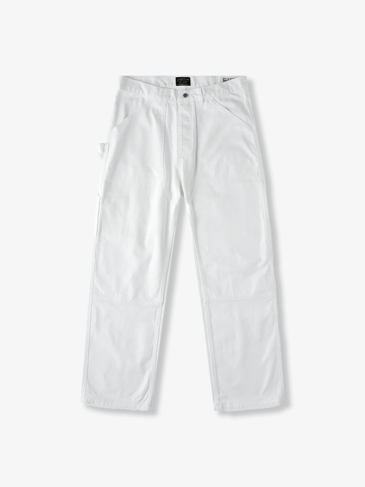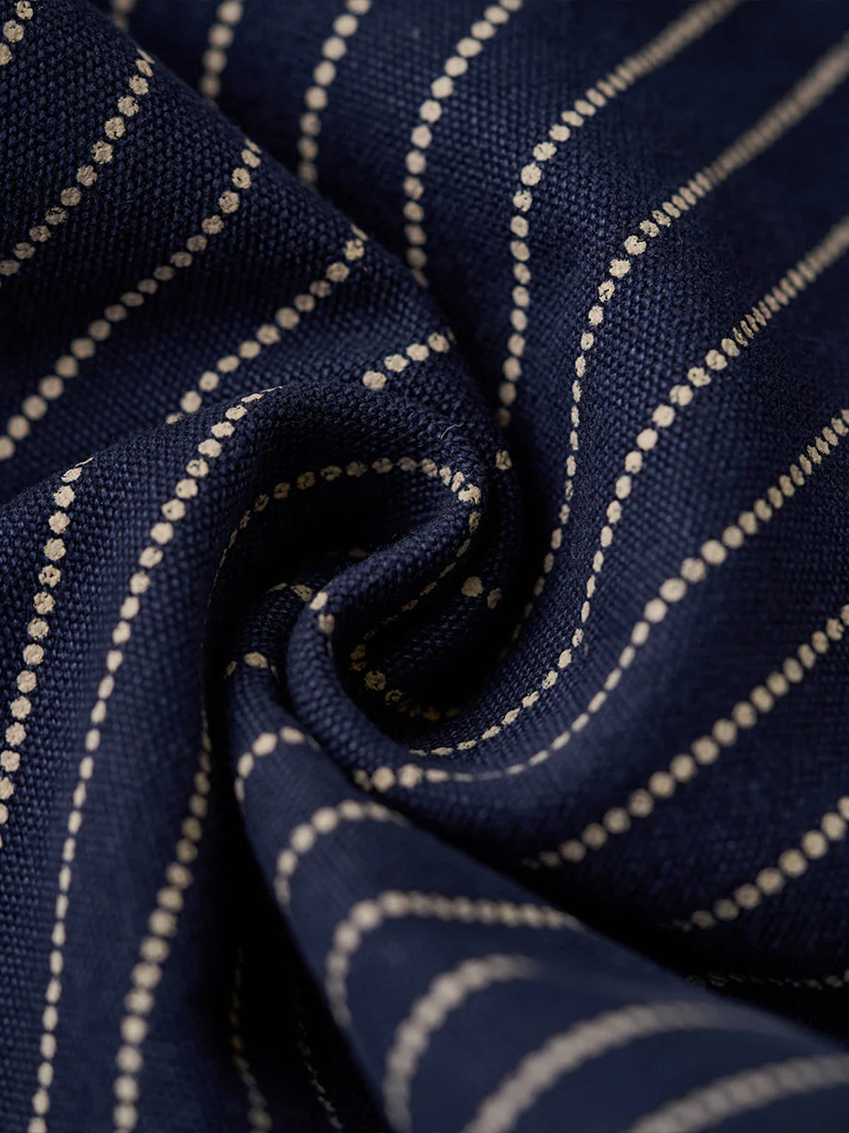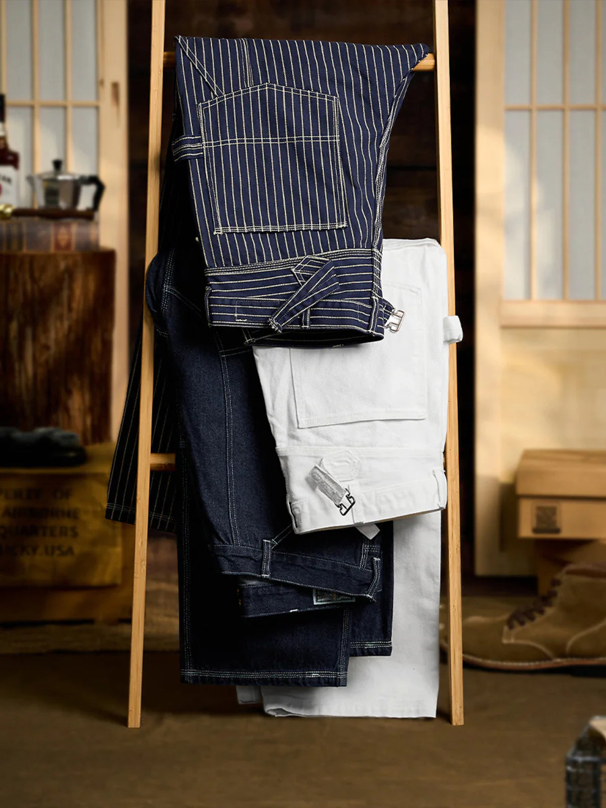 Featuring classic Wabash stripes with thin white lines on a navy background, these pants evoke the timeless feel of traditional workwear. The solid denim options offer a simple and refined look. Functional details like side tool loops emphasize utility, while visible stitching enhances durability and adds subtle design accents. Large, practical back pockets provide extra convenience.