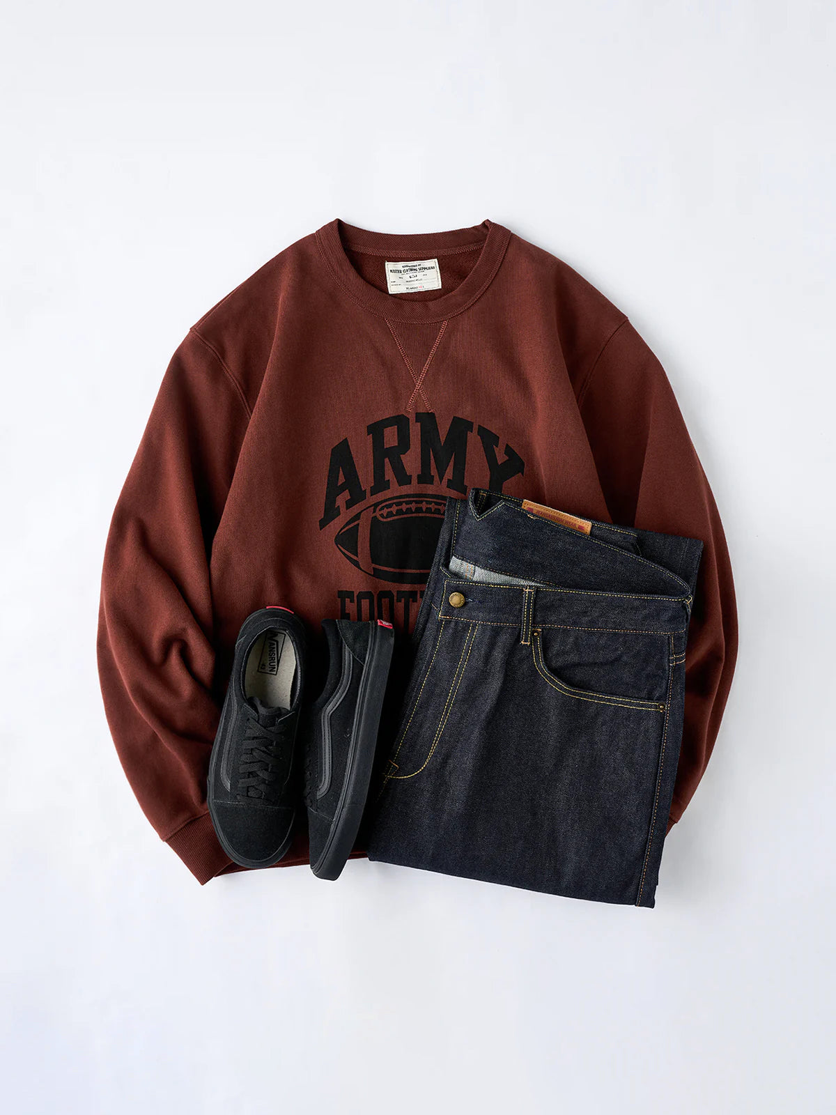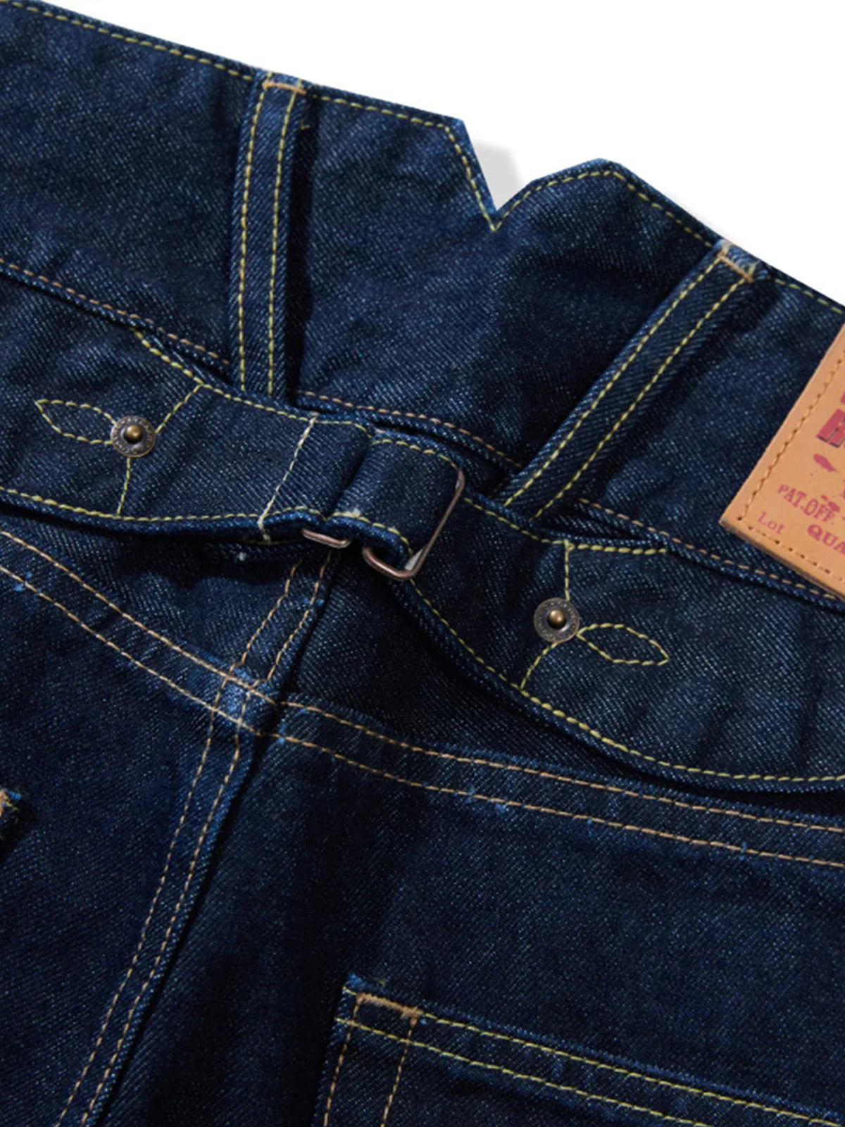 A classic-looking pair made with 14.75oz heavyweight denim. The back waist features a cinch back, originally devised in an era when belts were not yet widespread, to adjust the fit around the waist. It not only offers workwear-like functionality but also gives a distinctive presence to the rear view. The fabric comes in two types: “raw denim,” which allows you to cultivate your own fades as you wear it in, and “one-wash denim,” which lets you enjoy a natural texture. The more time passes and the more you wear it, the deeper the character becomes, and together with the workwear-derived details, it develops into a unique pair that is yours alone.