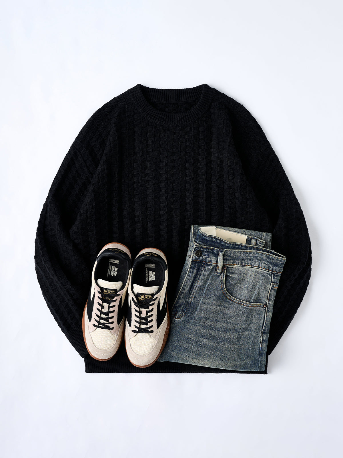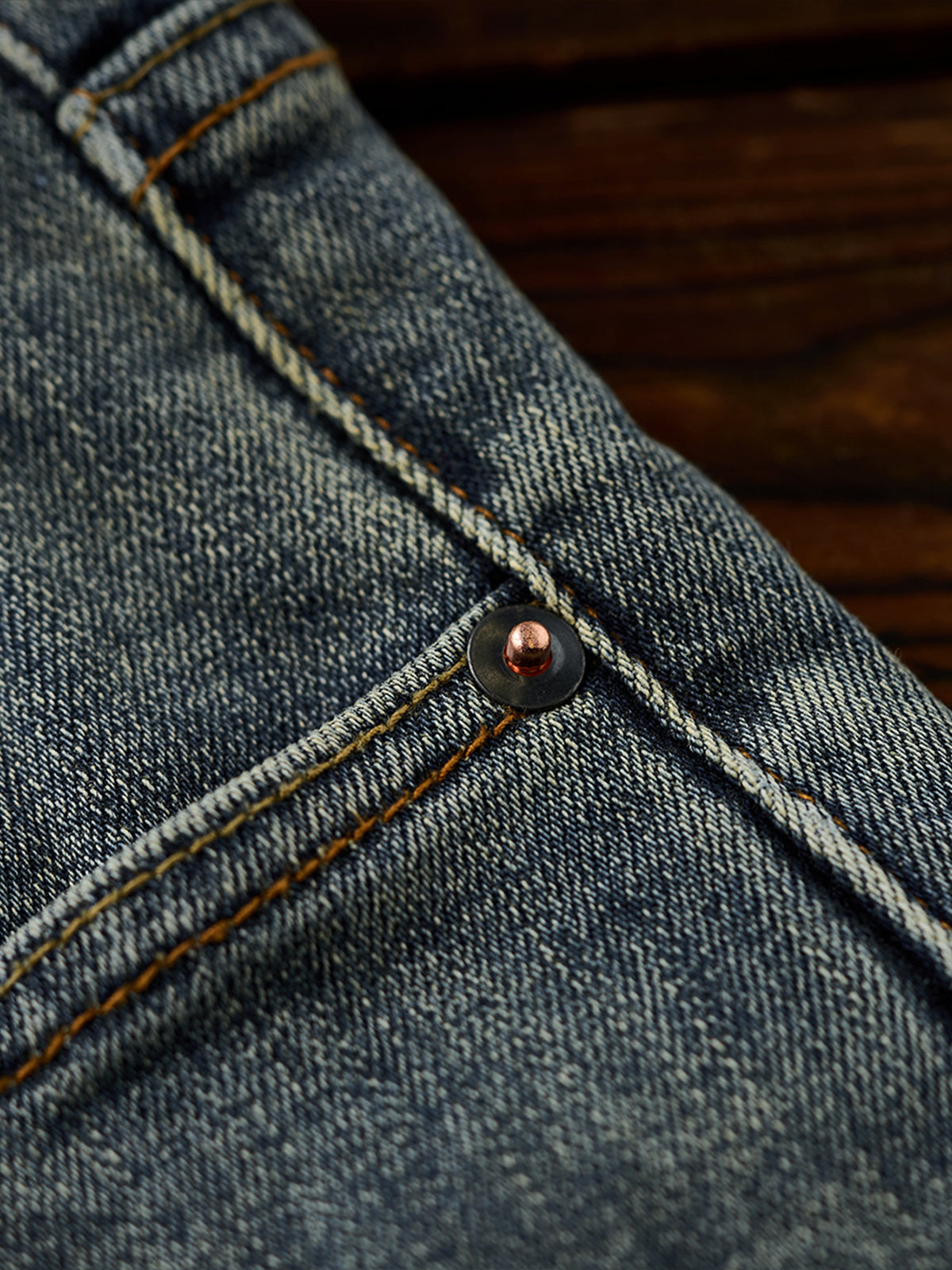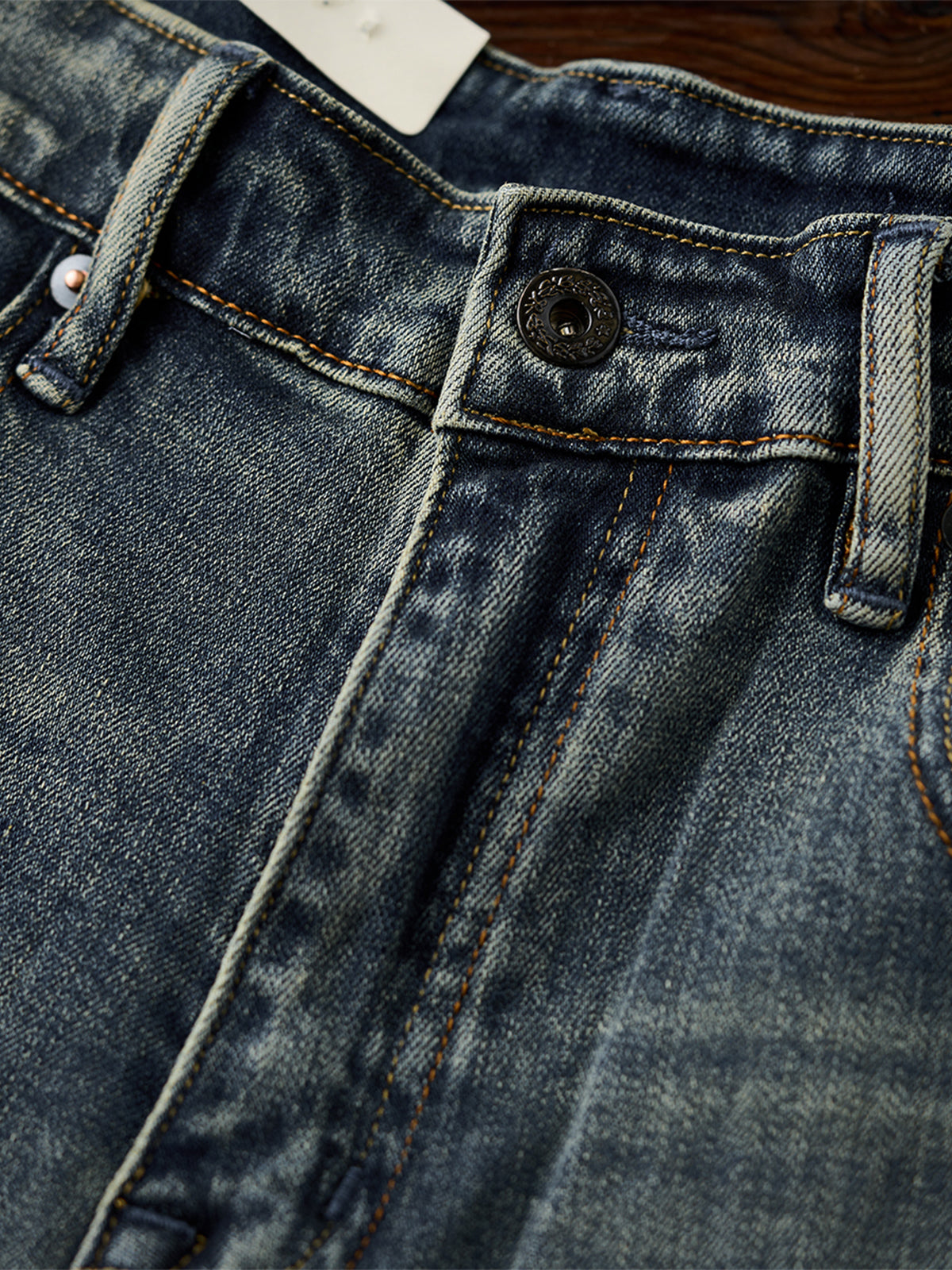 The original tuck buttons with a dull finish give off a calm, understated vibe and pair well with the heavy feel of the denim. The pocket sizes and placements are well-balanced, and while the label design is simple, it exudes a unique presence. Every detail has been carefully crafted to offer a rich, textured finish.