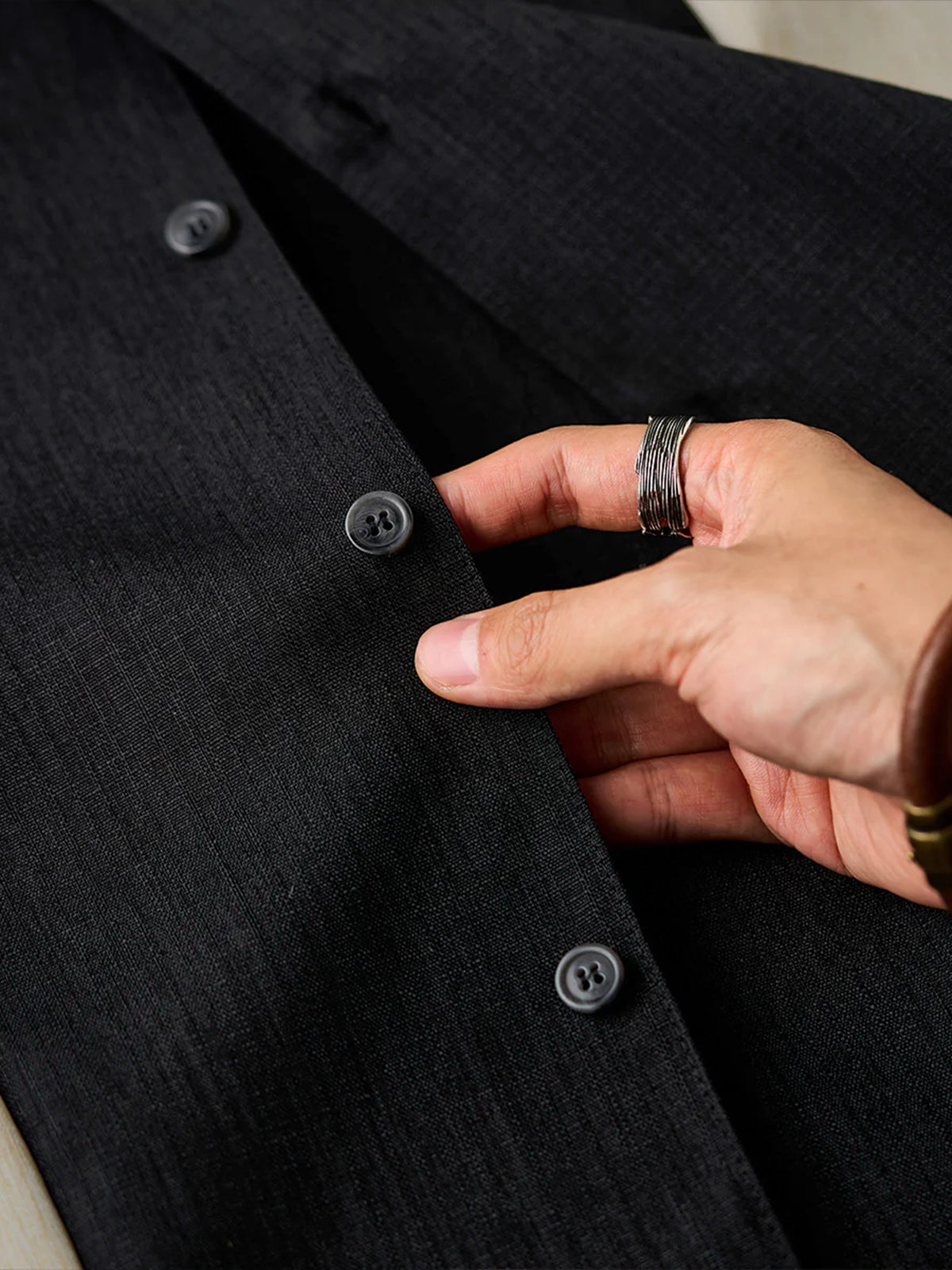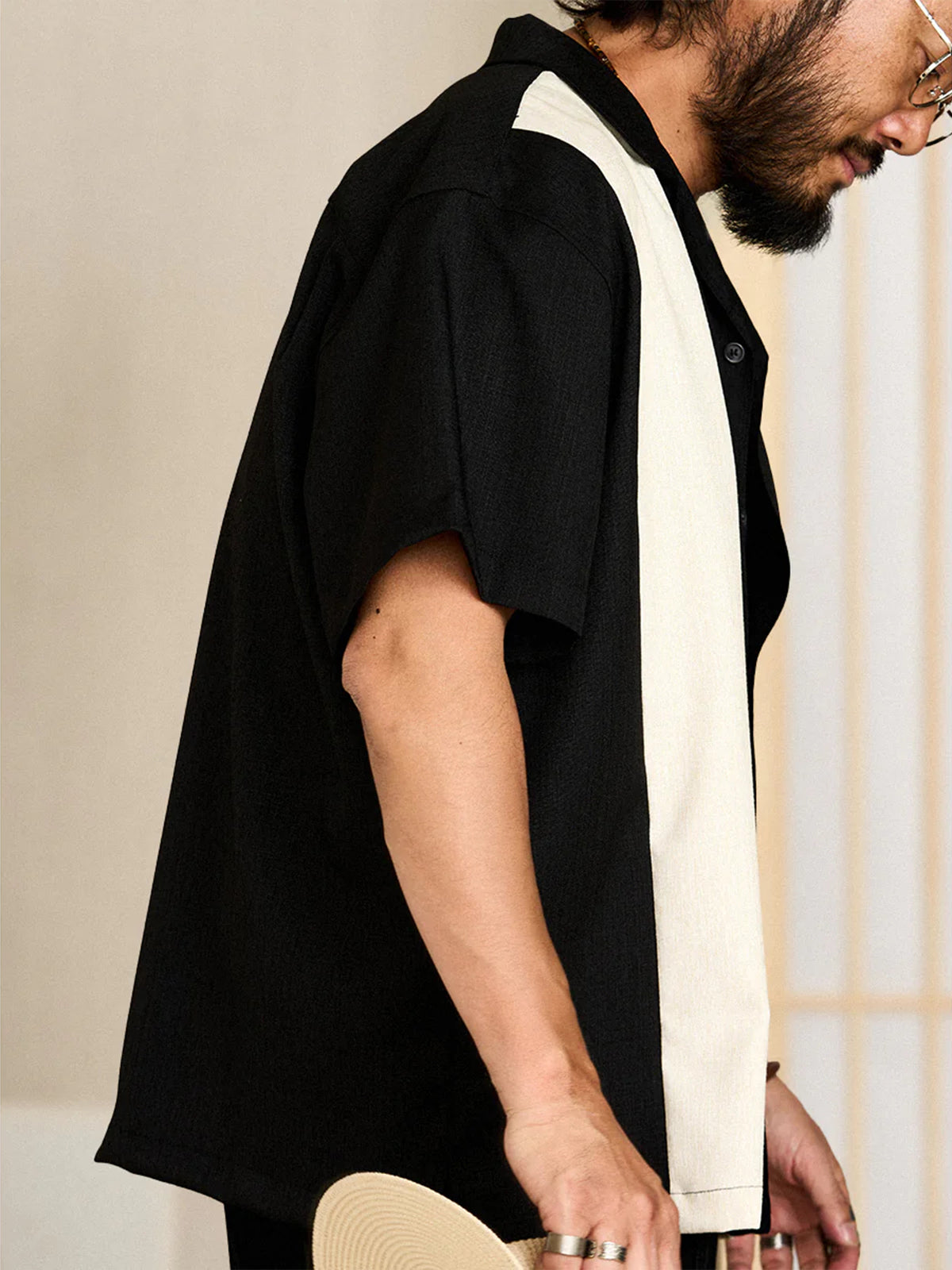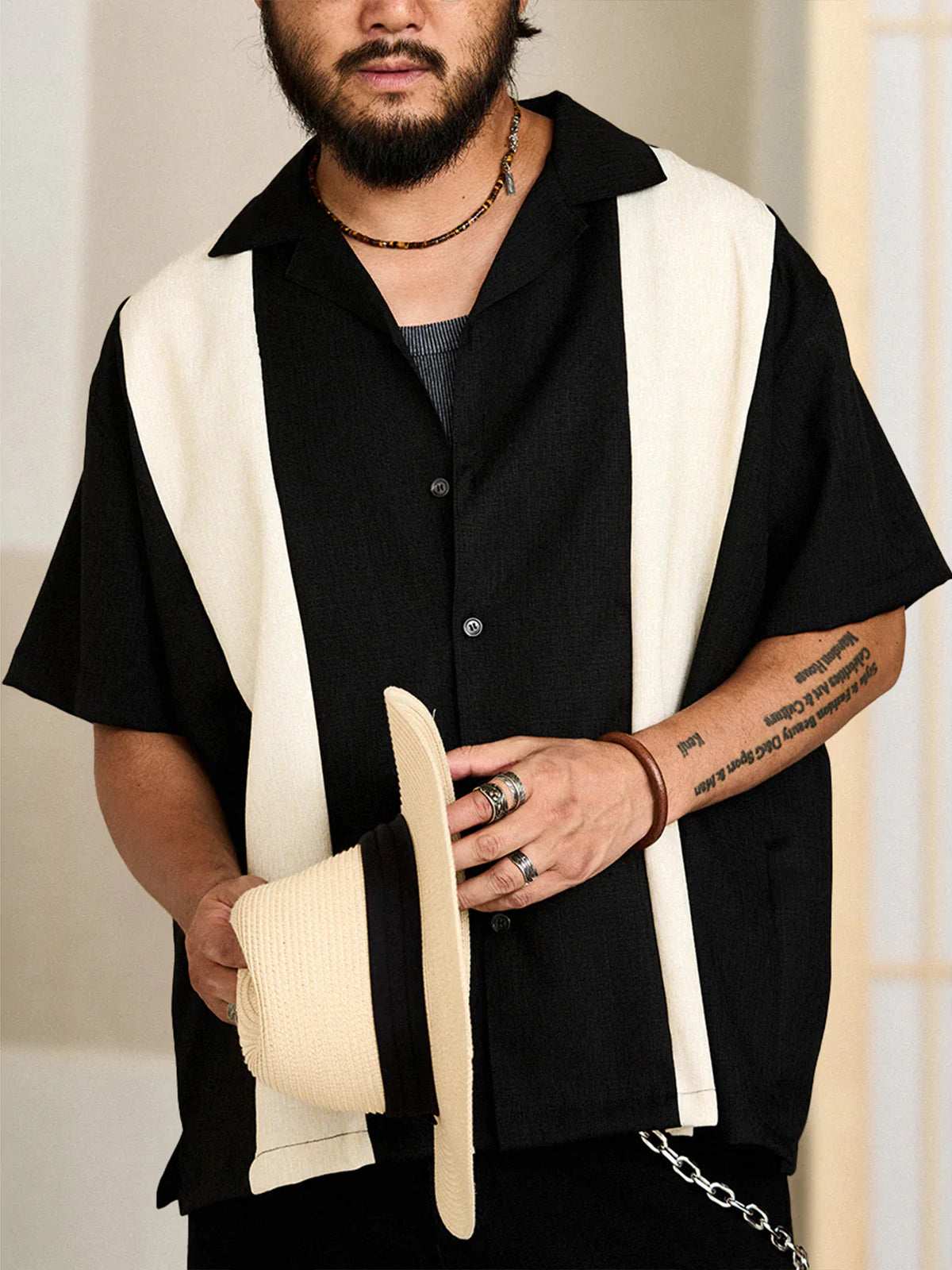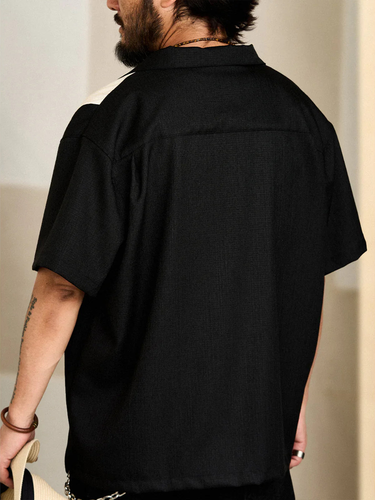 This item is finished with a combination of different materials, and the black and white stitching design on the front, the texture and texture look beautiful, giving people a special and retro feeling. It is a light and soft fabric made of yarn-dyed fabric, which is characterized by a unique marble pattern and glossy feel. It is comfortable, breathable, crisp, easy to create a fashionable retro style, and can be used for a variety of purposes, from daily use to outdoor style.