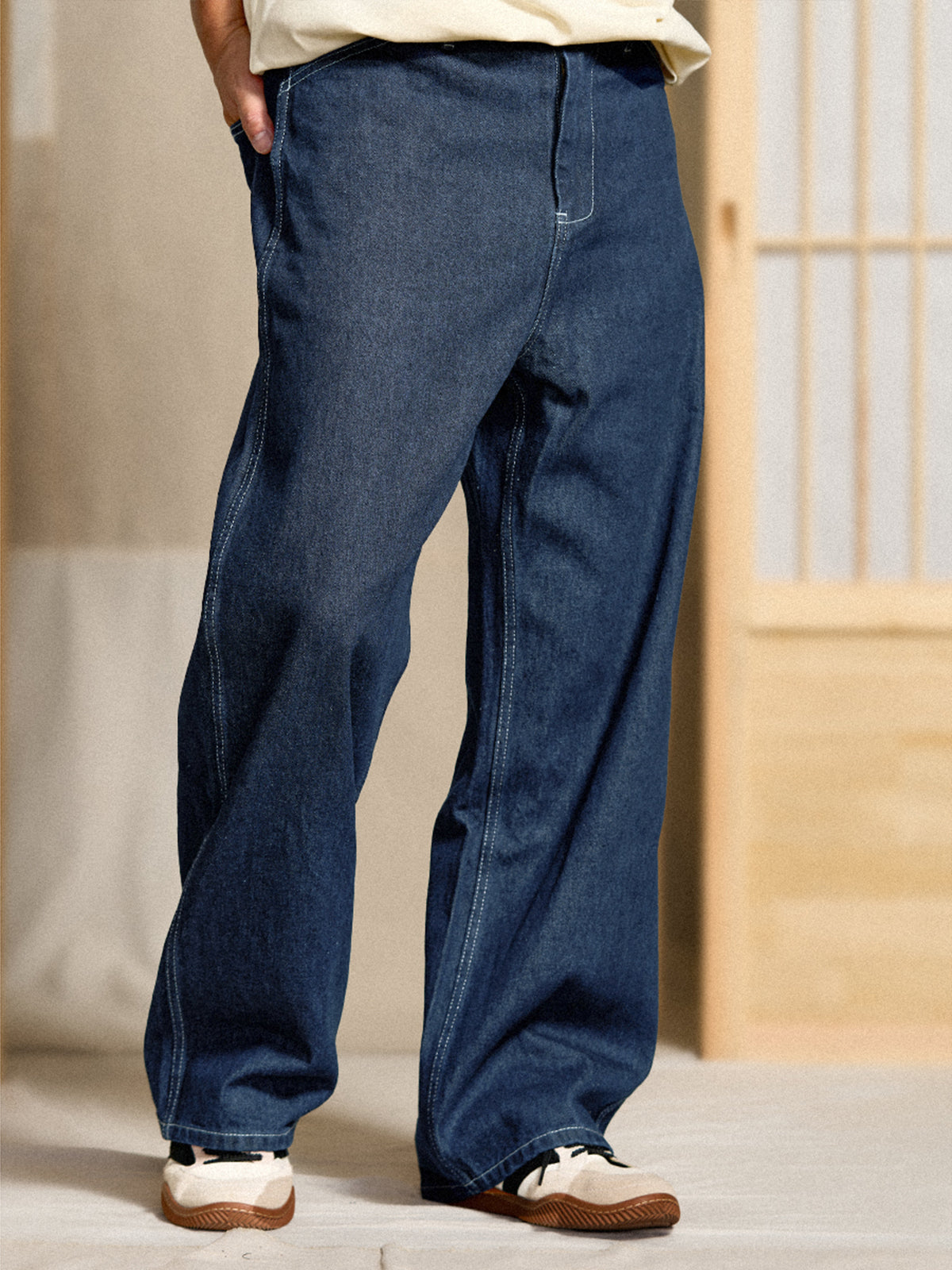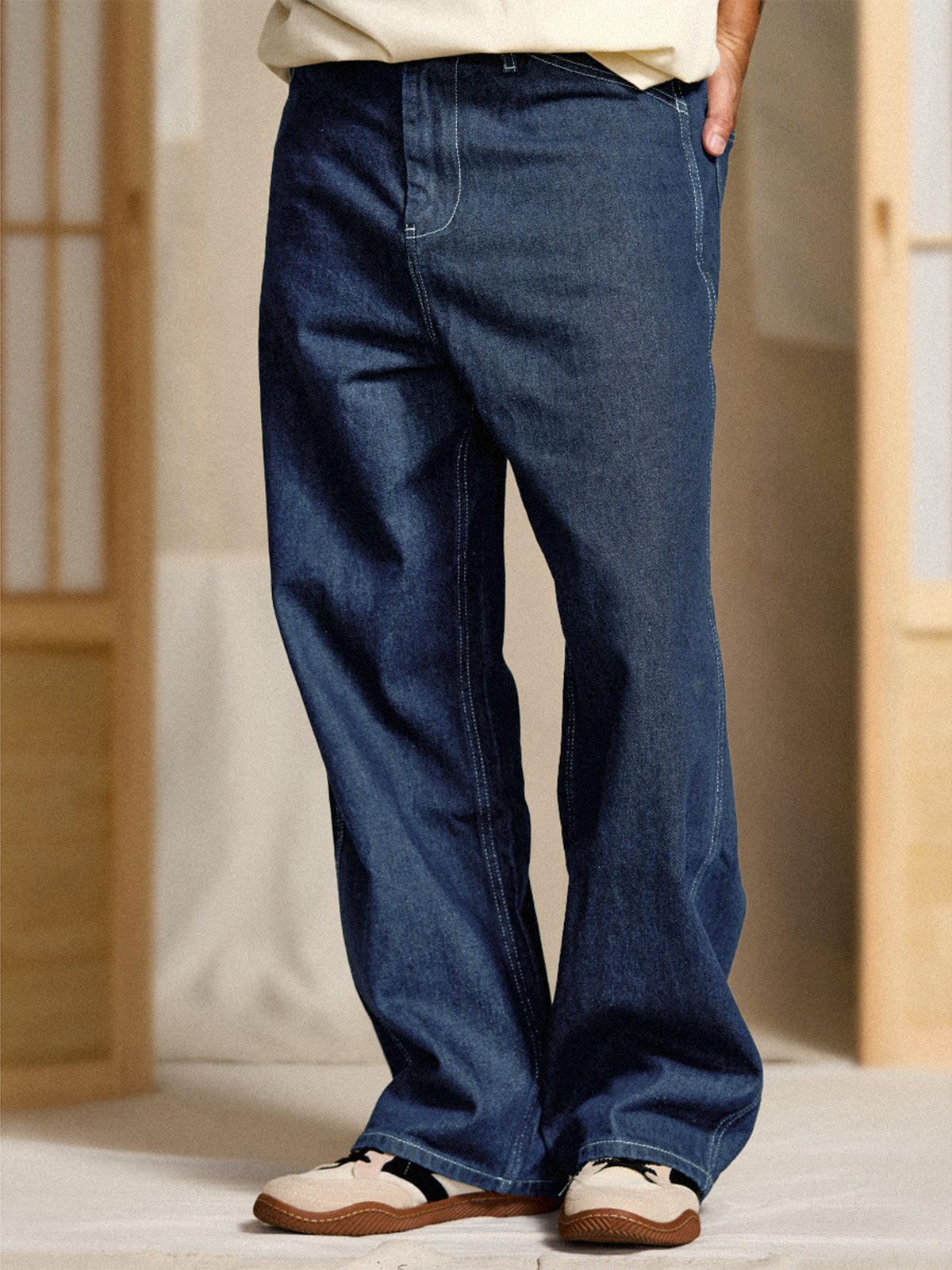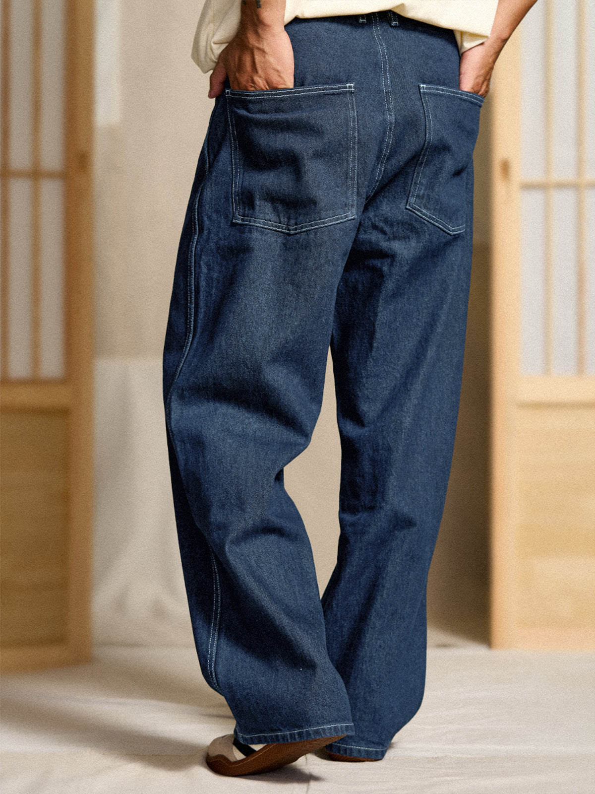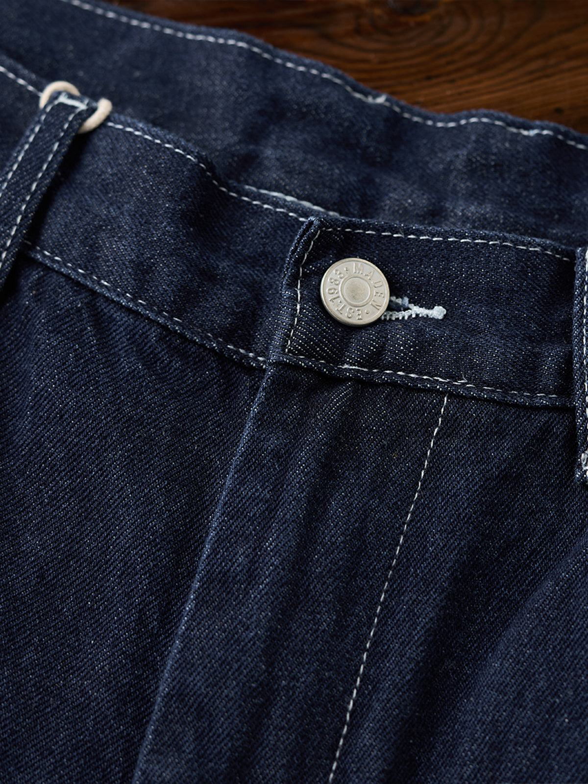 This item inherits the manufacturing with excellent practicality and durability in people's daily life in the past. From the material representing the 11.5OZ denim that workers love, the original denim fabric that thoroughly focuses on the twisting and density of the original yarn is hard, has a strong tension, and has a good texture, and can stand alone as it is. It is characterized by a deep crotch, and the silhouette is neatly displayed with a wide and calm fabric.