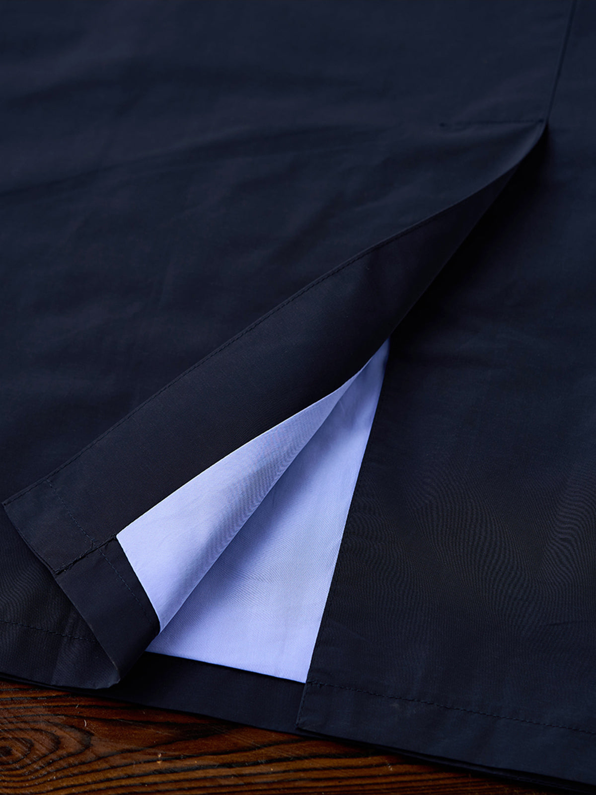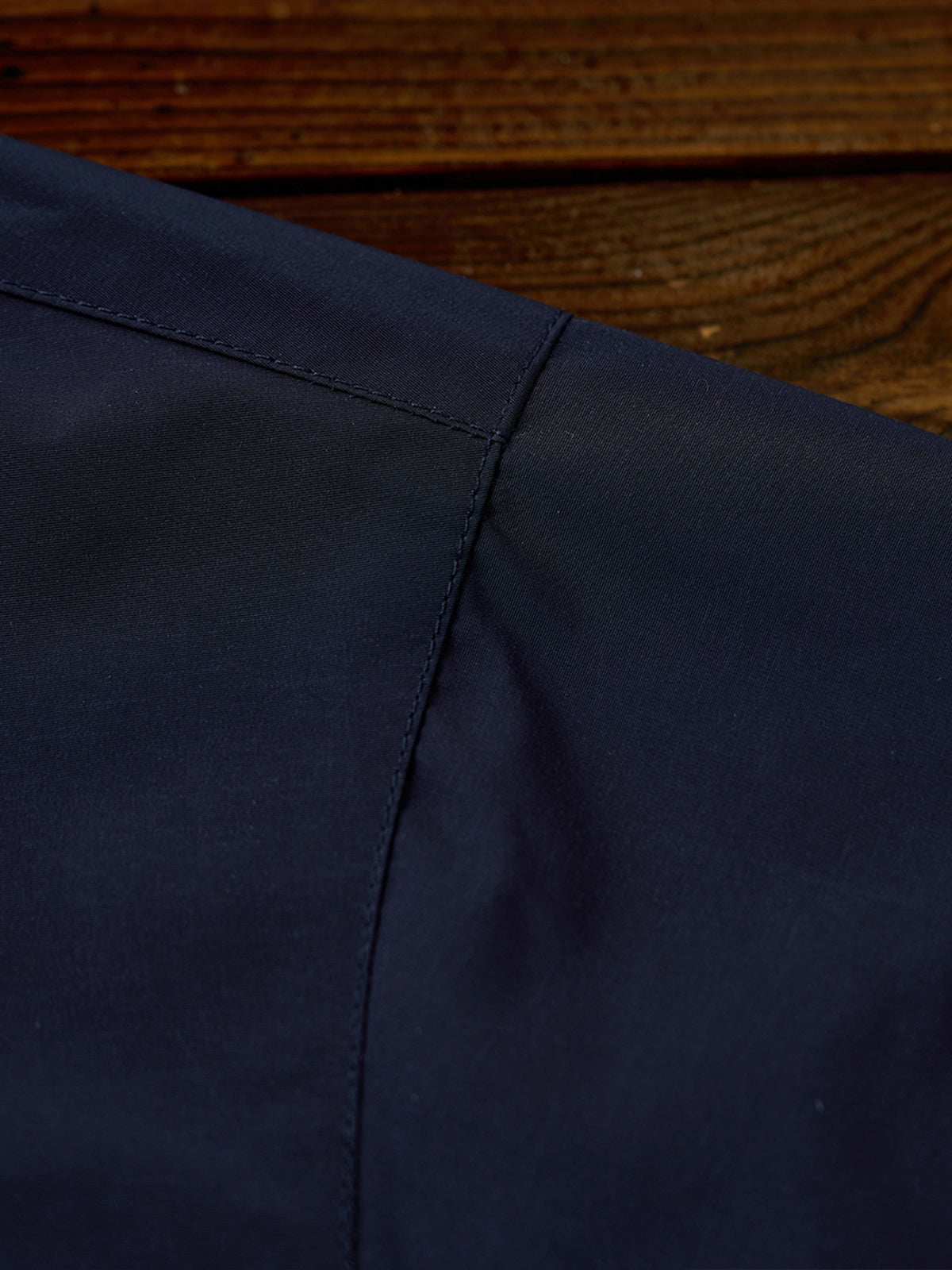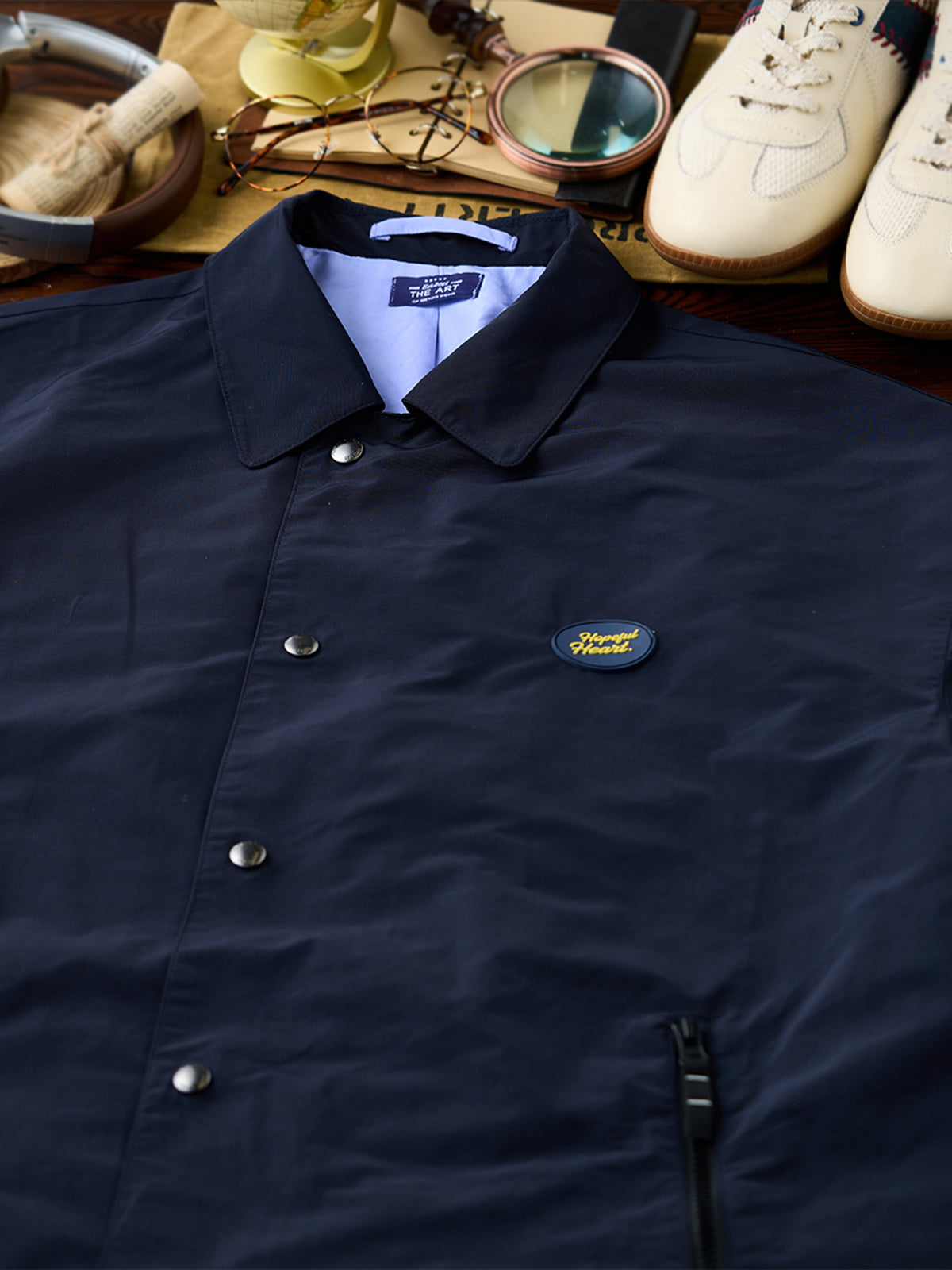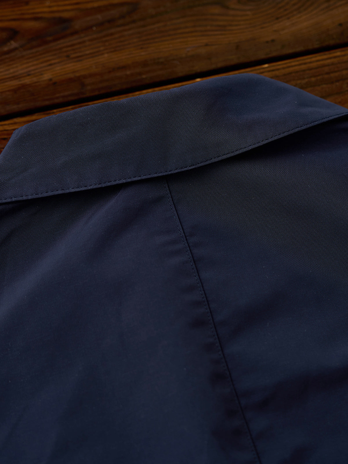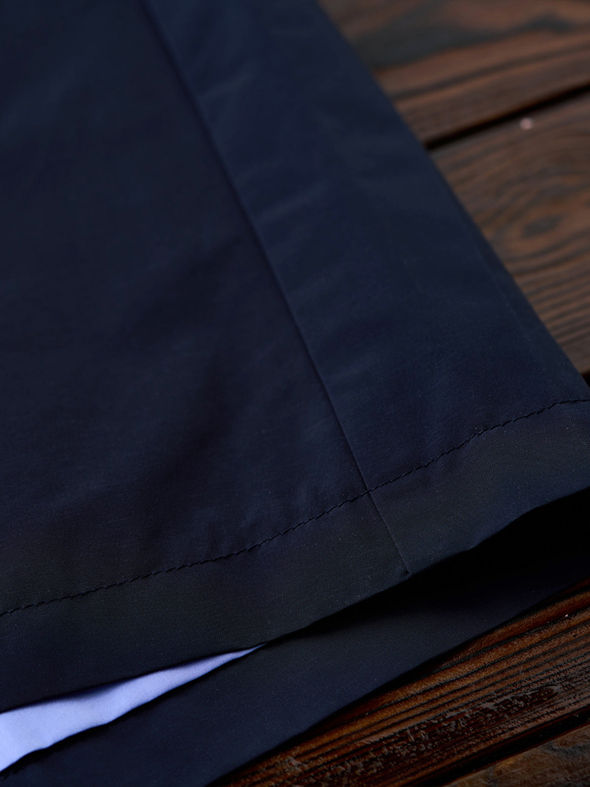 A sturdy outdoor-inspired Balmacaan coat finished with Teflon fabric protector processing for windproof, waterproof, and stain-resistant performance. Practical details such as pockets on the front enhance usability. The fully lined construction, with a material that is neither too thick nor too thin, makes it perfect for the autumn and winter seasons. The front features a concealed placket design in which only the top button is visible when closed, lending a clean and refined impression. With a relaxed silhouette and long length, the coat feels light to wear and drapes moderately without looking stiff.