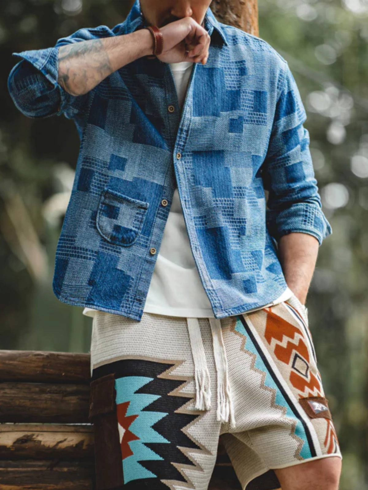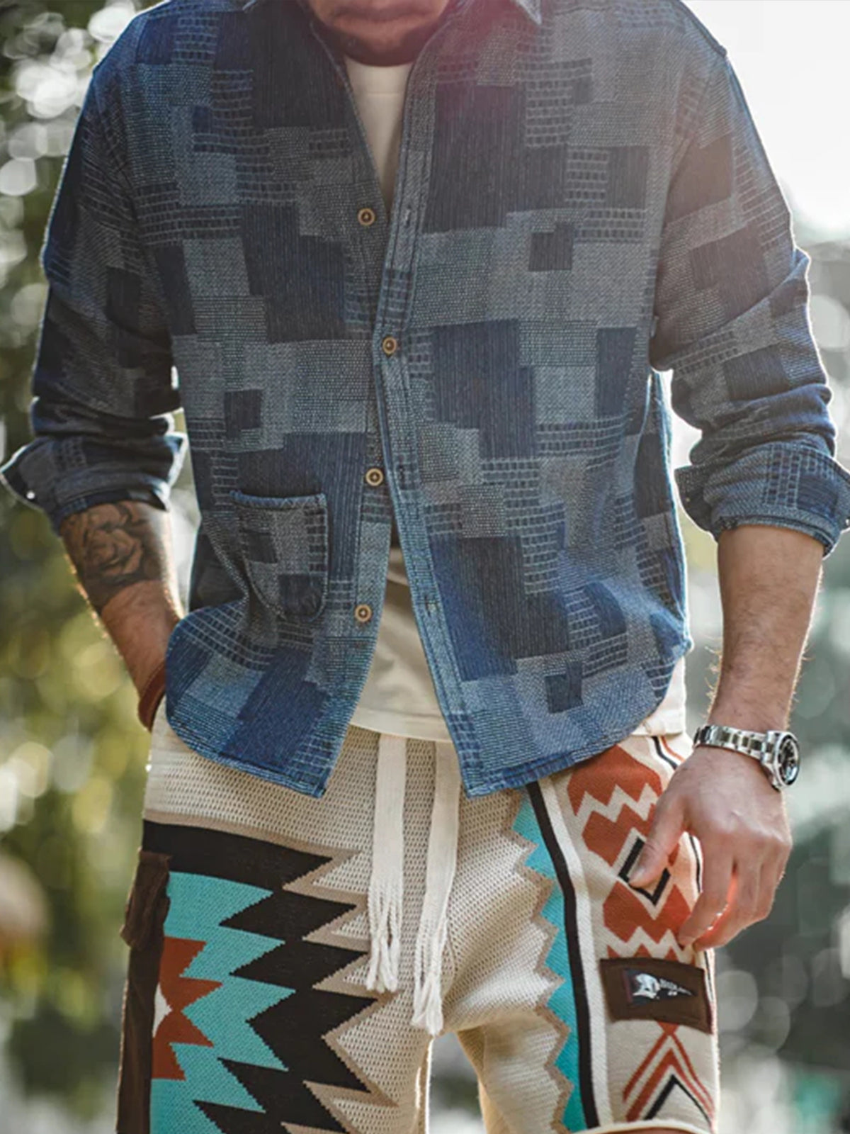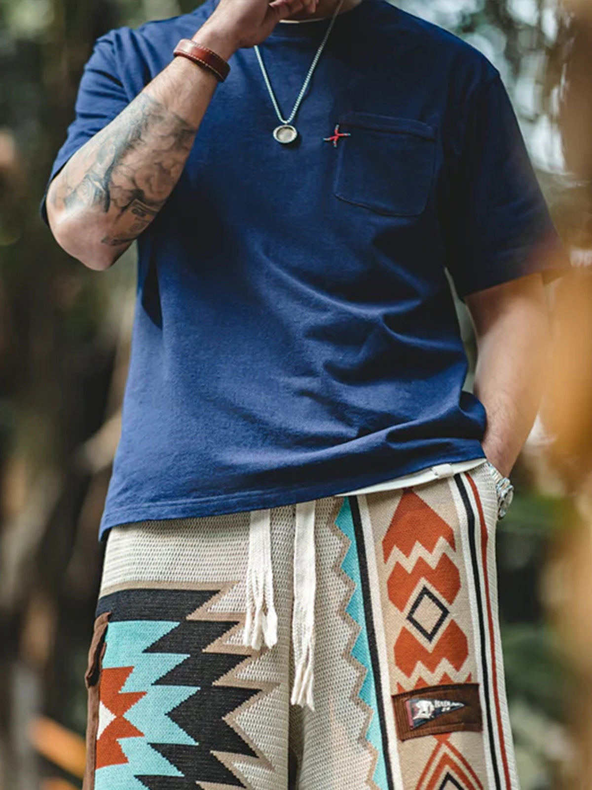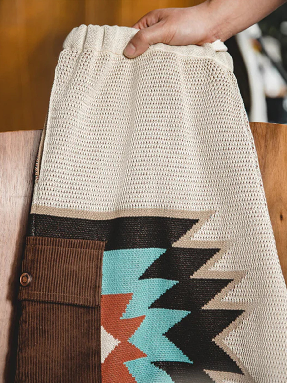 Navajo has always been an indispensable element of American retro style. It is a symbol of the culture cultivated by their ancestors with 300 years of history, and many patterns are abstract and have a strong decorative effect. The trousers are decorated with Navajo patterns, and the intarsia yarn is knitted, so the same pattern as the front can be seen even from the back. The Navajo pattern has a clear but thin finish. Equipped with a large pocket to store the items you need for the day, the simple design and elastic waist drawstring allow you to adjust the fit. In addition to Indian elements, it also has the agile atmosphere of contemporary art. The style is traditional and modern, and you can feel the strong energy and vitality.