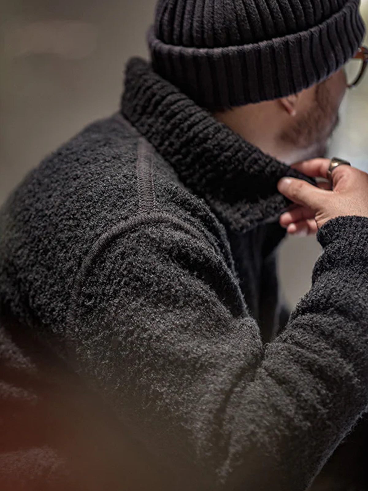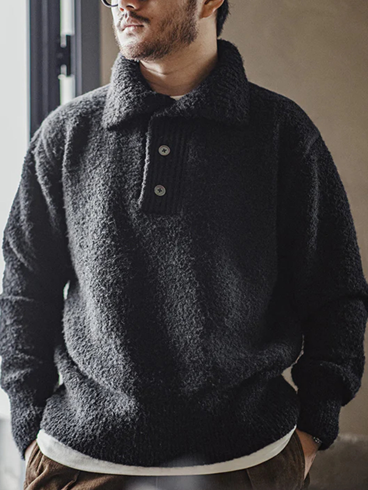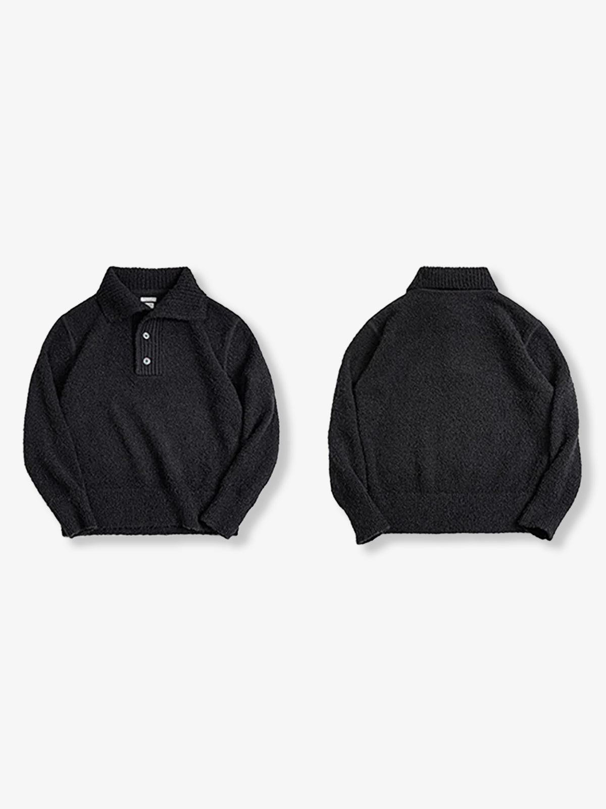 A classic polo-style knit updated with a sporty, relaxed vibe. Designed with a collared neckline and front button placket, it’s detailed with ribbed cuffs and hem for a clean, structured finish. The loop yarn fabric, characterized by its textured surface, is densely knitted to deliver remarkable warmth, durability, and a distinctive three-dimensional look.