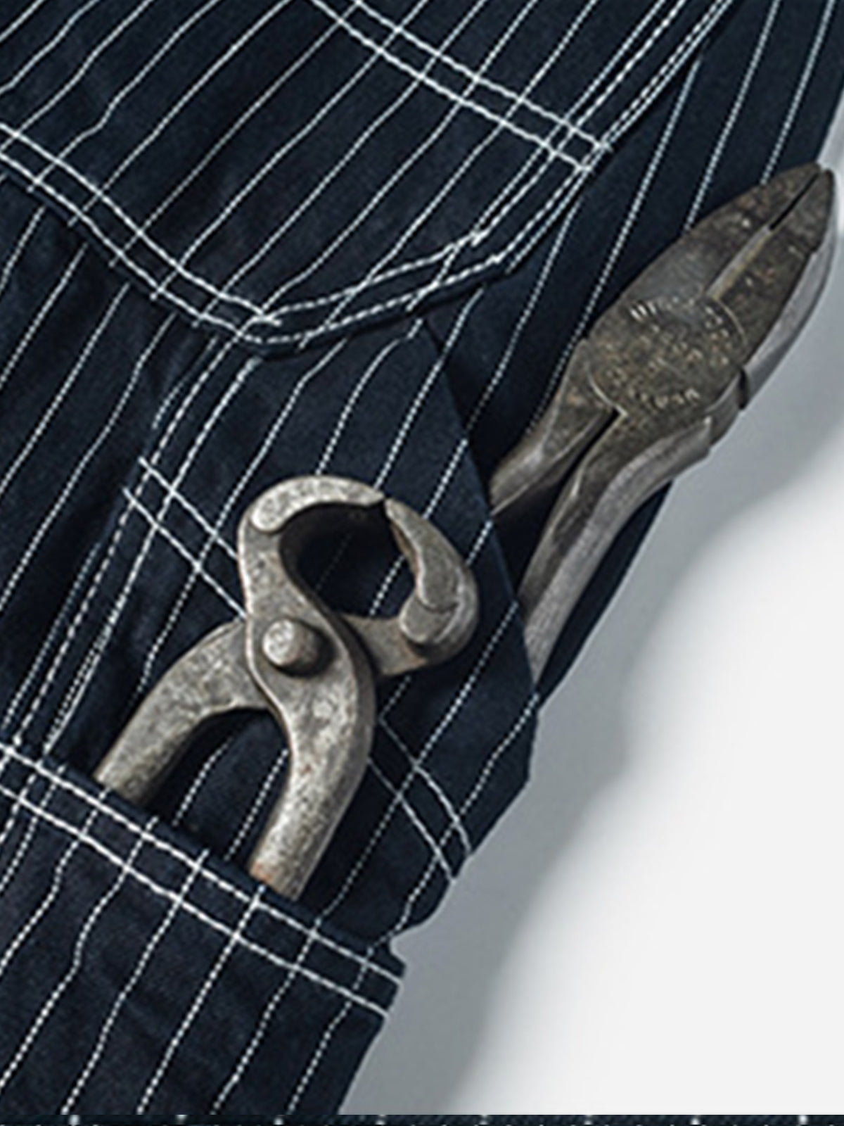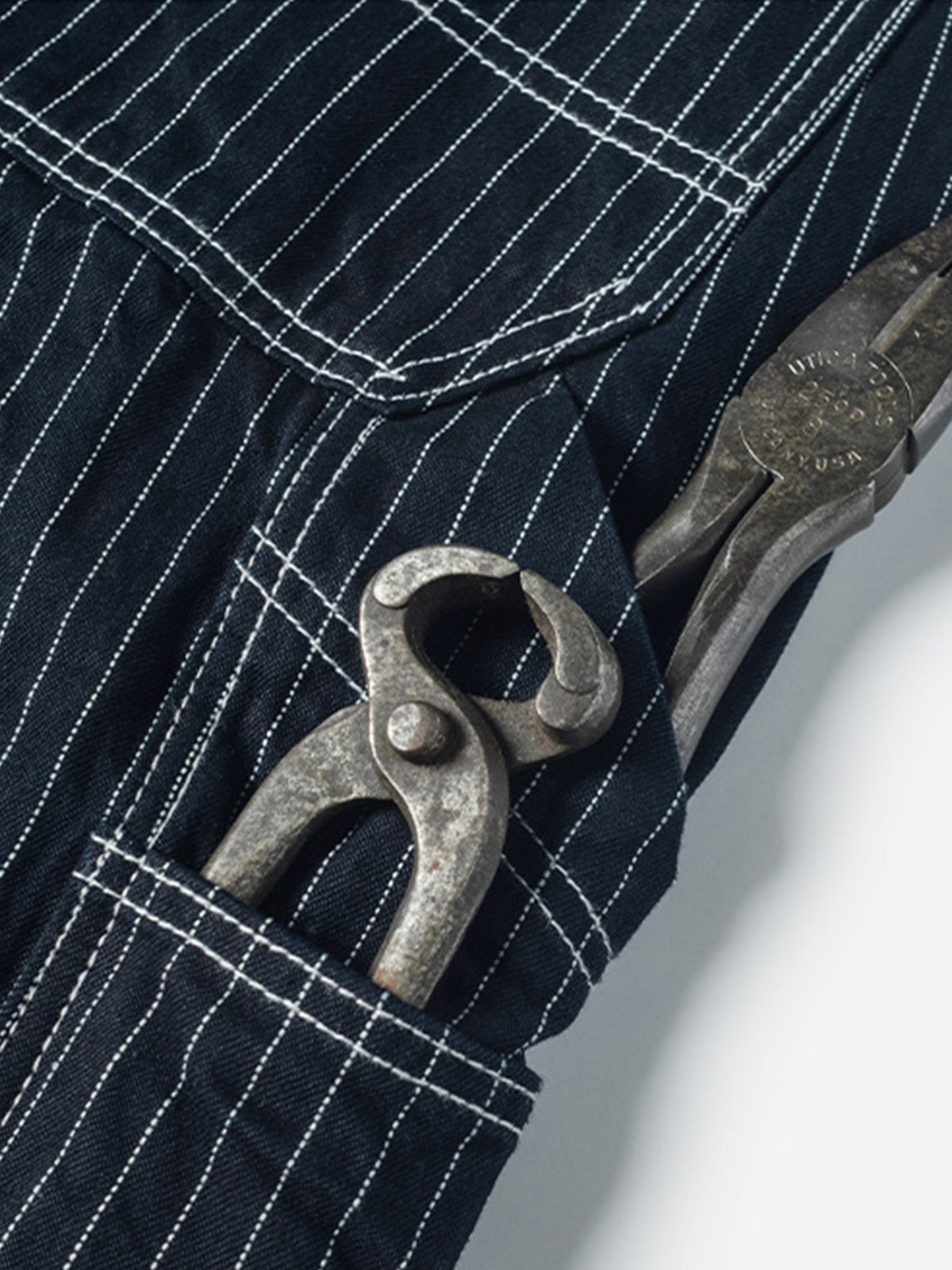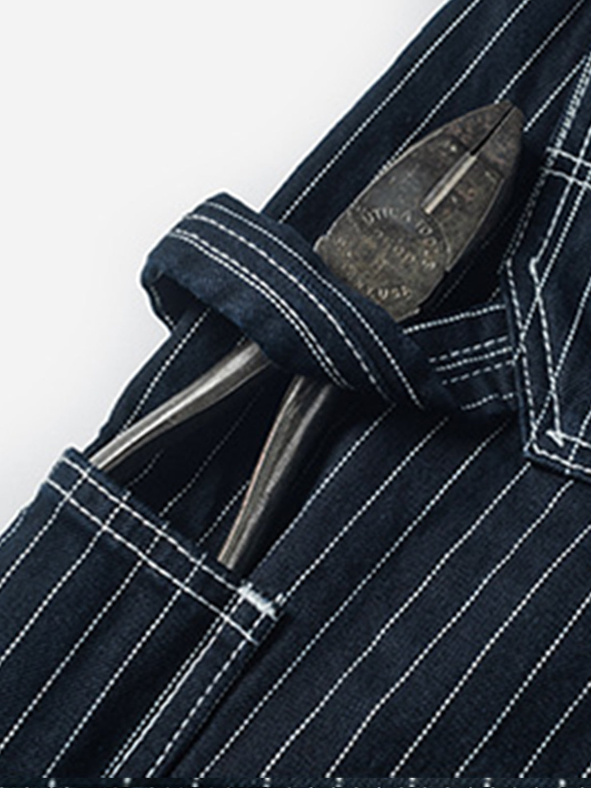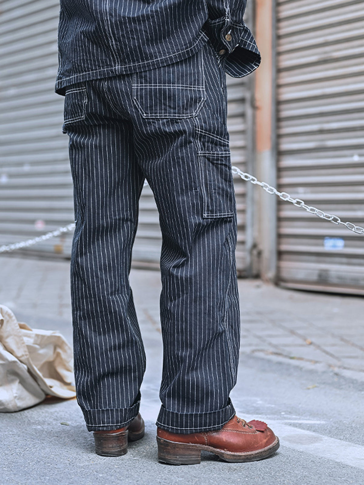 This design is based on railroad work pants from the late 1930s up to 1942. Building on the classic five-pocket style, it features additional tool pockets on both thighs—a detail still commonly seen today on vintage work pants.The pants have a relaxed high-waisted straight-cut silhouette with clean, vertical lines, making them highly versatile for various styling options.