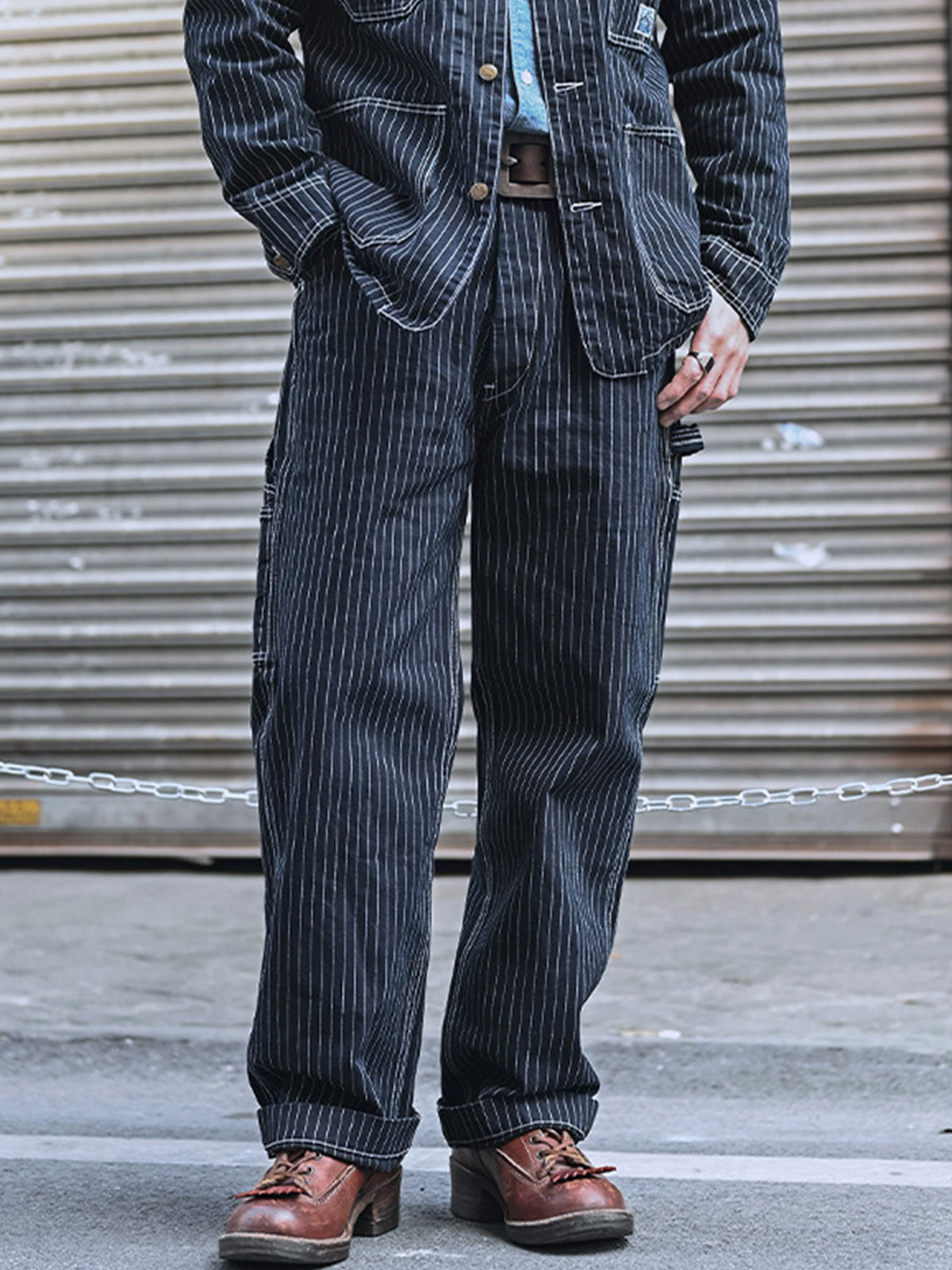 - Fabric Features: Made from deep indigo twill denim fabric with yarn-dyed threads matching the base color, it exudes a strong railroad workwear vibe with a classic look. The fabric weighs between 360-380g (approximately 11-12 oz), providing a sturdy and substantial feel, ideal for spring, autumn, or early winter wear.