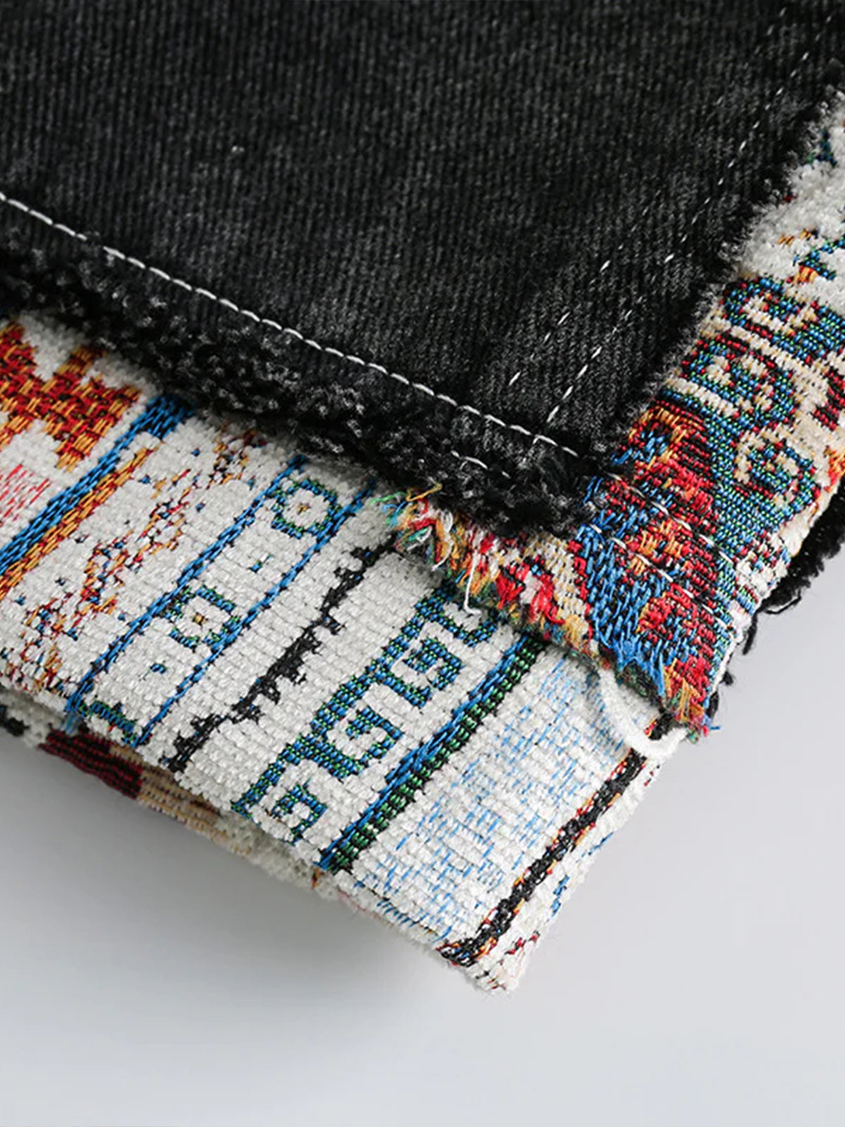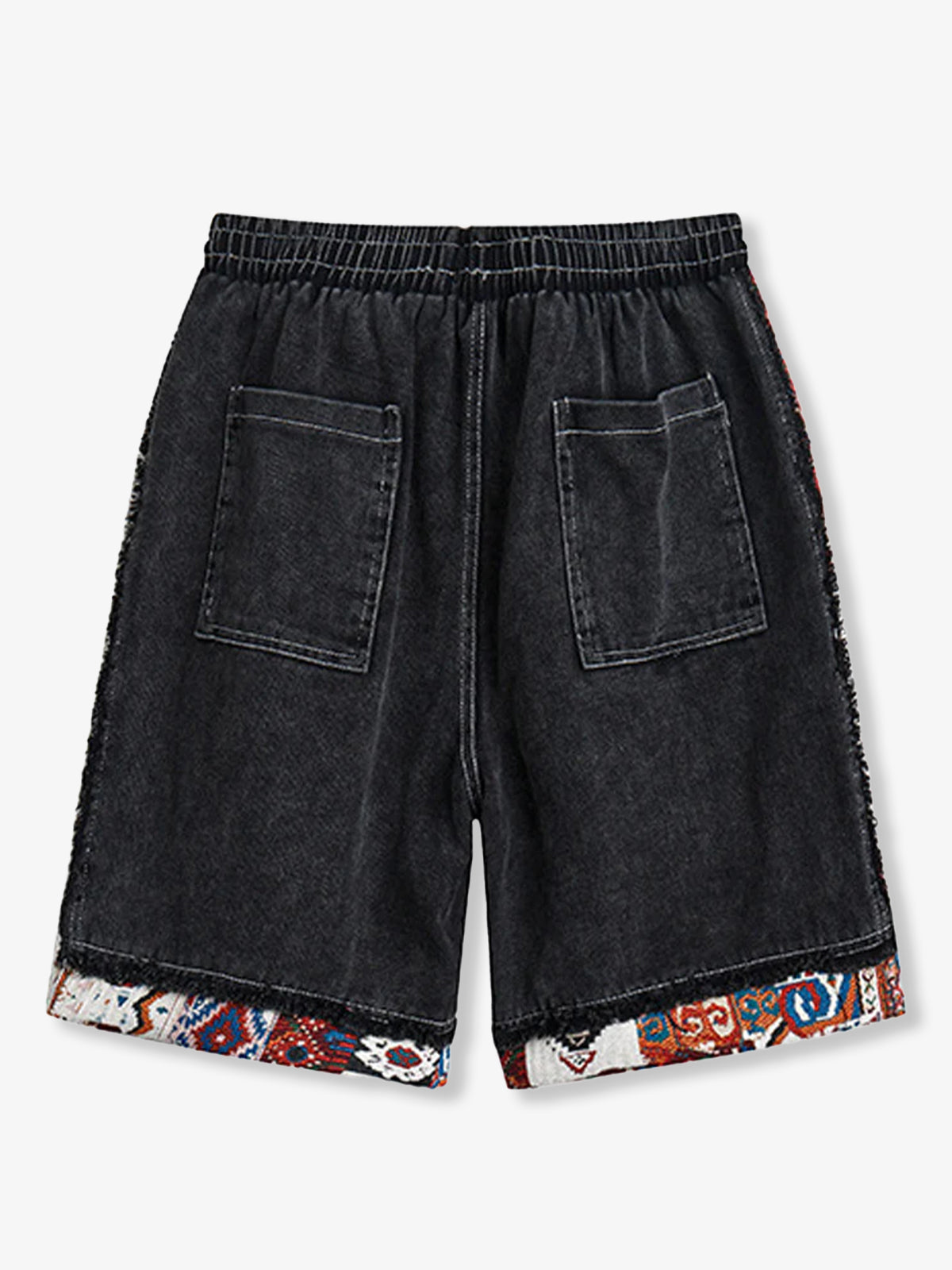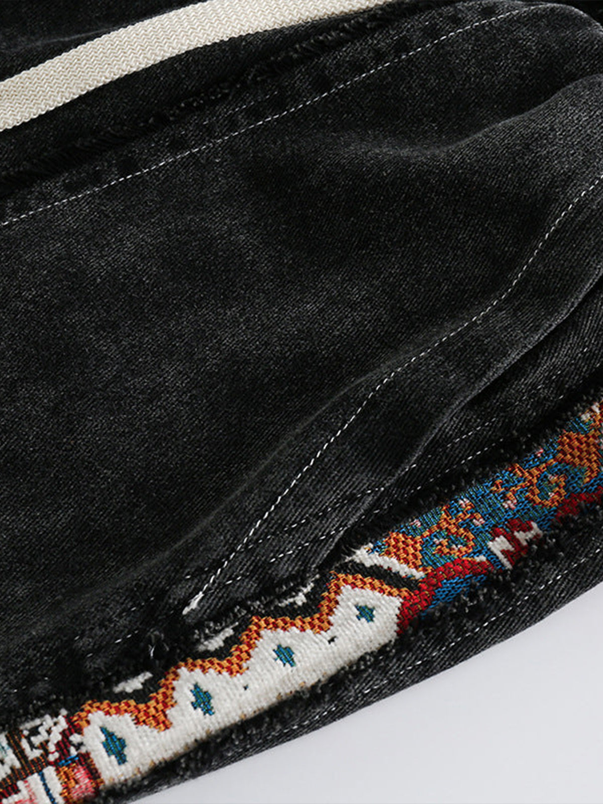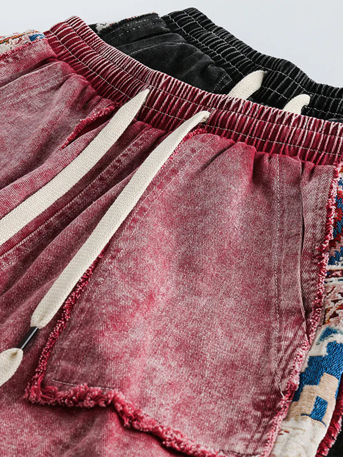 It is a classic pair of shorts with an American outfit. Fresh pink denim shorts are now available, and you can make those around you stand out just by wearing them! Excellent presence! The washed finish and pink body color full of old clothes-like distressed feeling are eye-catching, and the most eye-catching thing is the patchwork of ethnic jacquard patterns, and the unique taste with a sense of imitation yard is attractive.