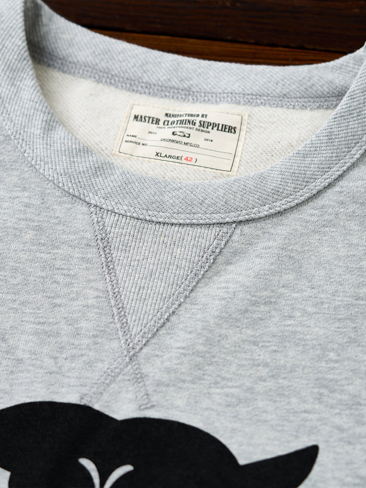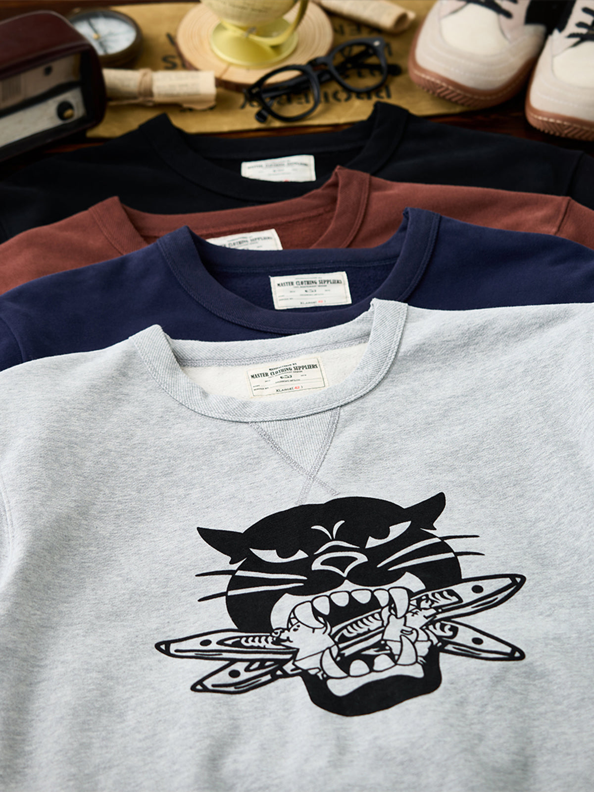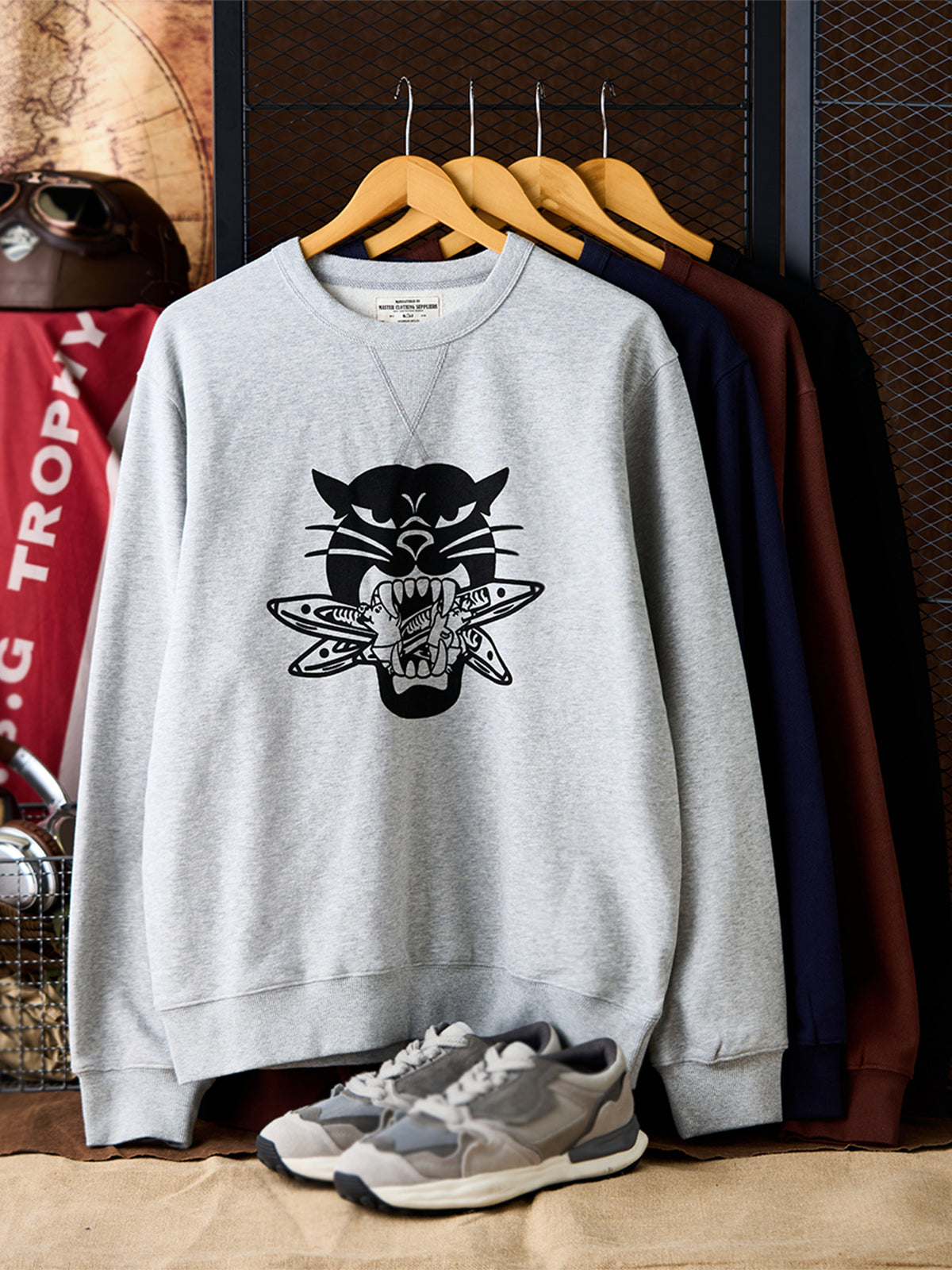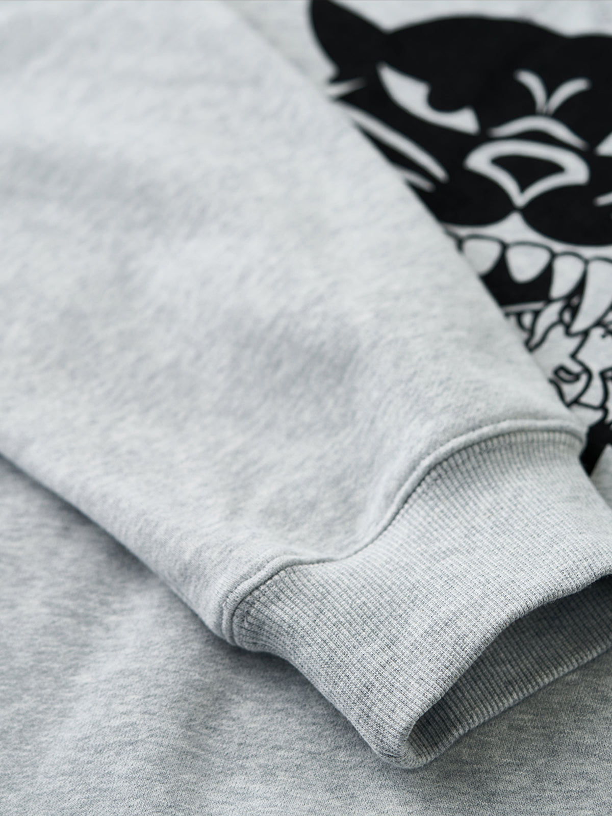 The print is created using an advanced discharge printing technique that offers vivid colors and a soft feel, while the triple-needle stitching enhances the garment’s strength and longevity. The loopback cotton material is not only cozy but also highly breathable, making it perfect for cooler seasons where both comfort and style are essential.