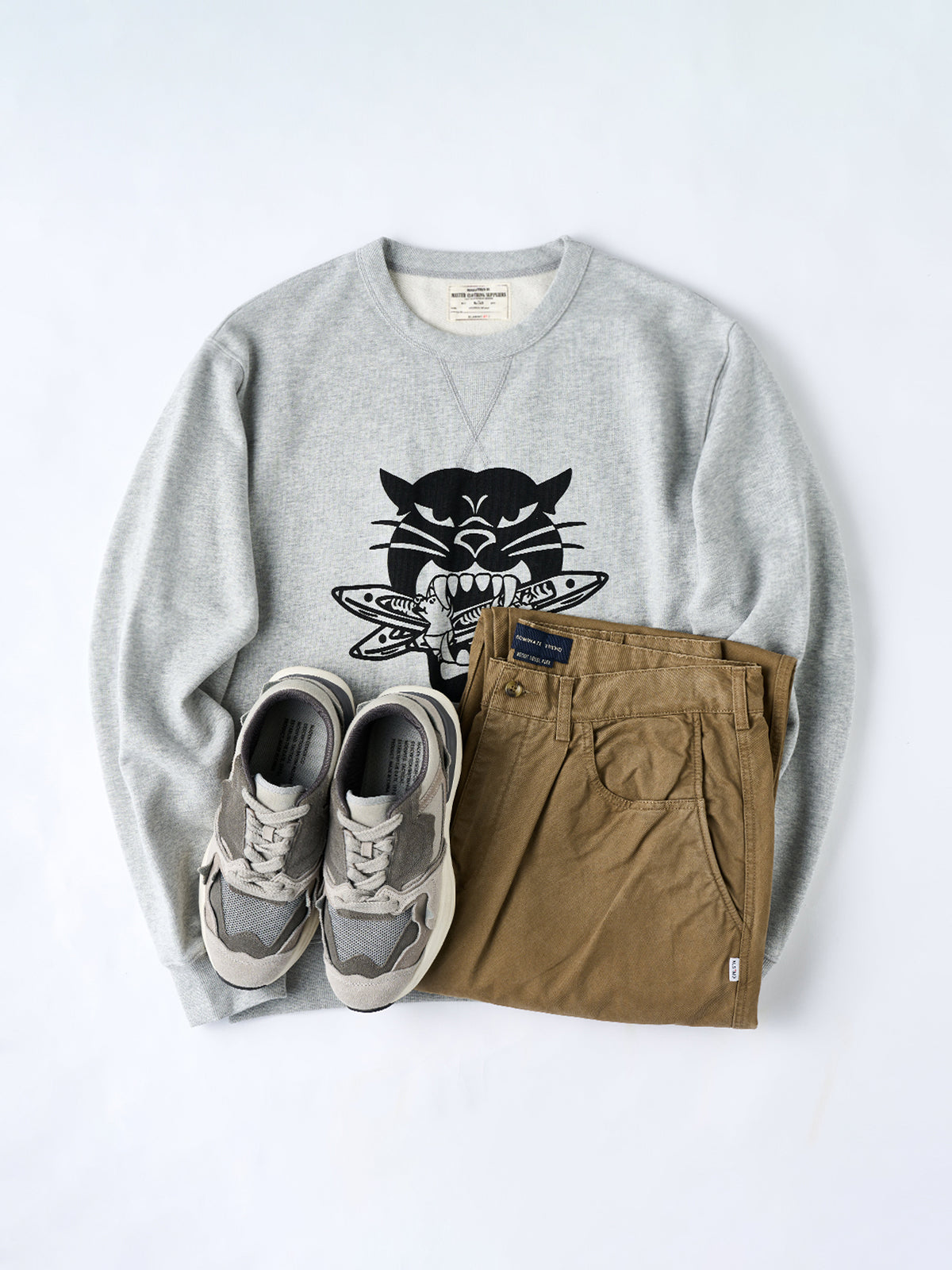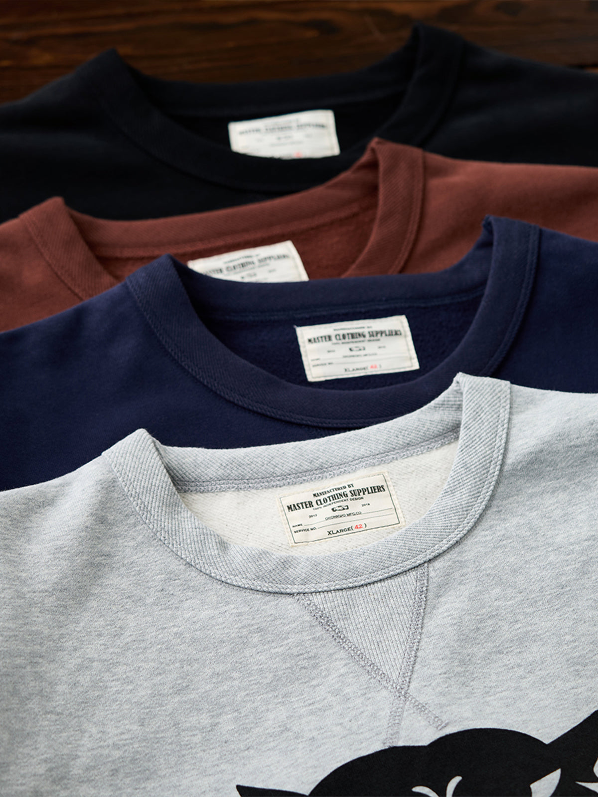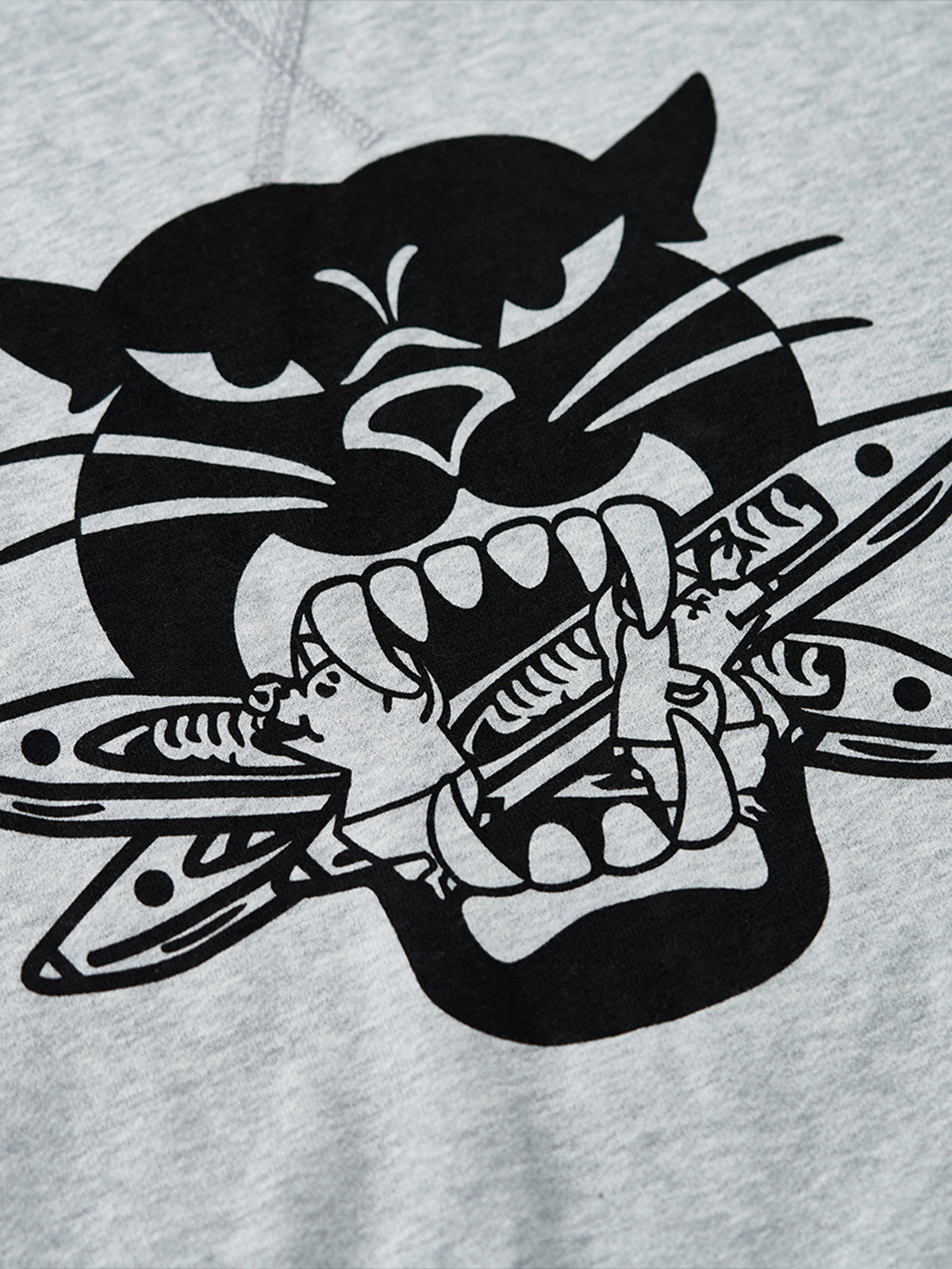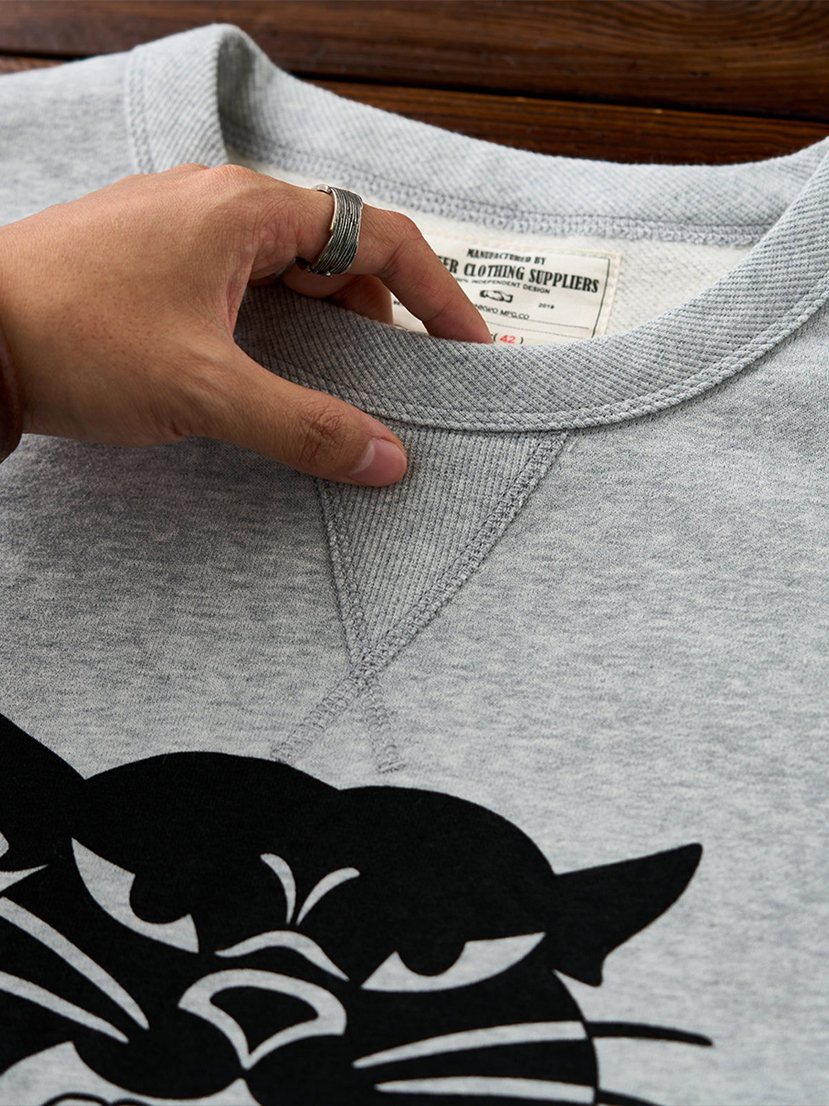 The print is created using an advanced discharge printing technique that offers vivid colors and a soft feel, while the triple-needle stitching enhances the garment’s strength and longevity. The loopback cotton material is not only cozy but also highly breathable, making it perfect for cooler seasons where both comfort and style are essential.