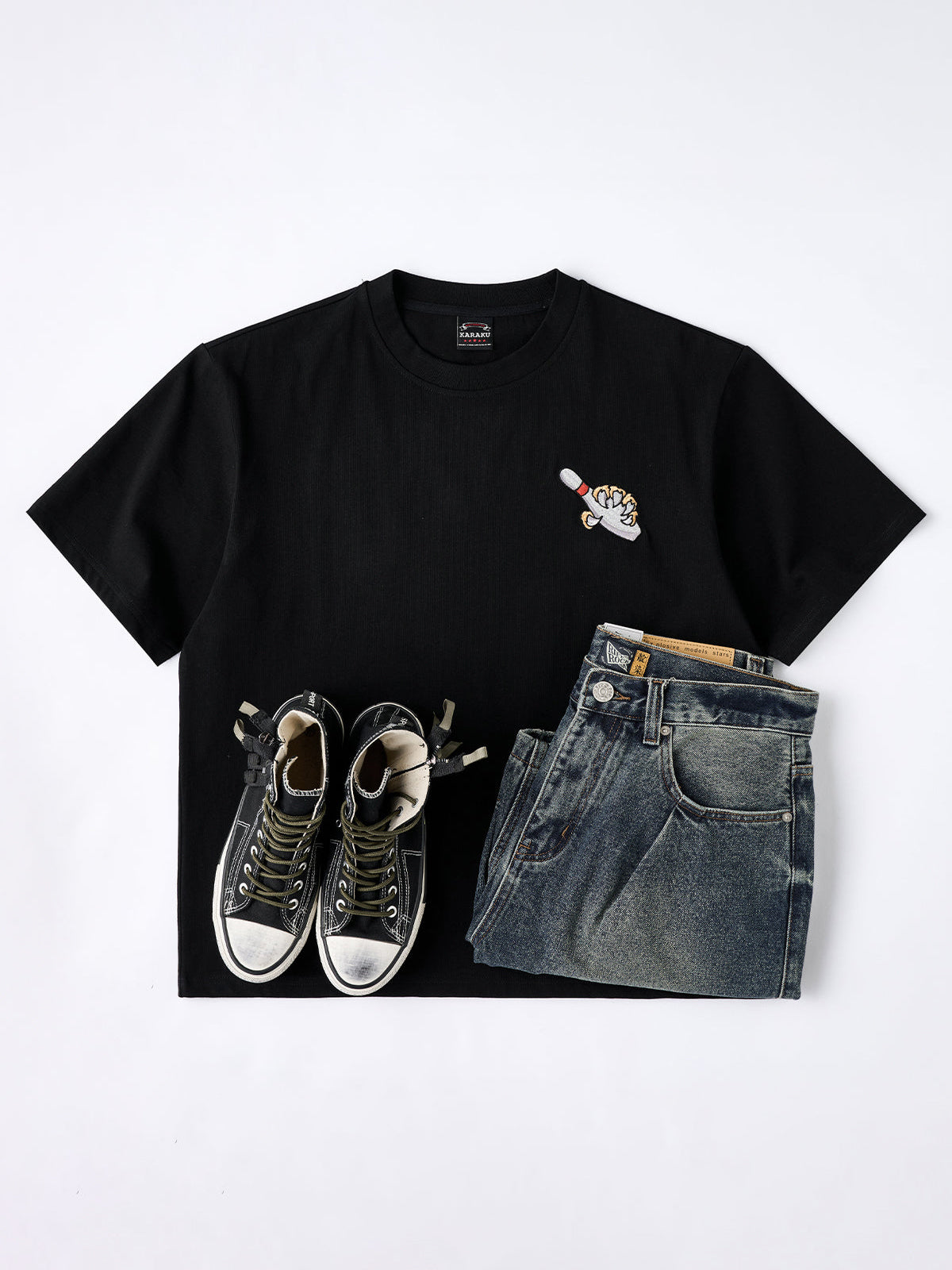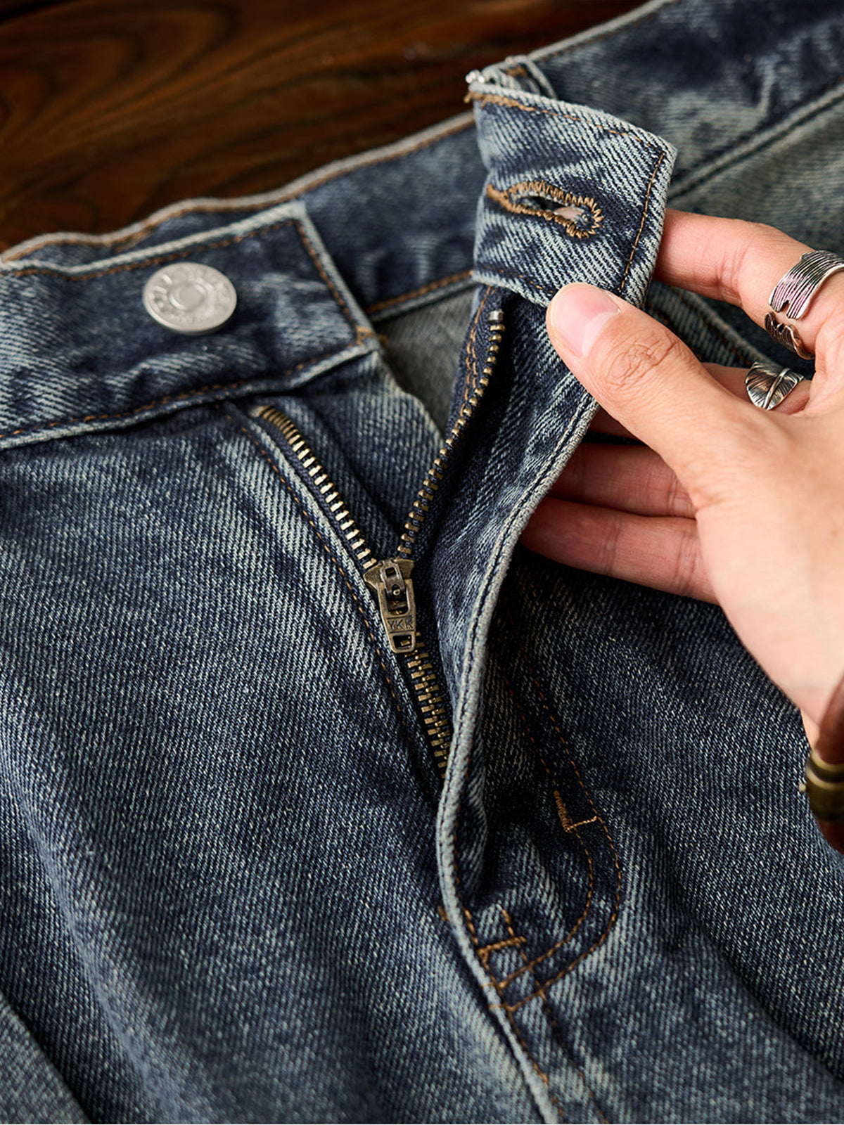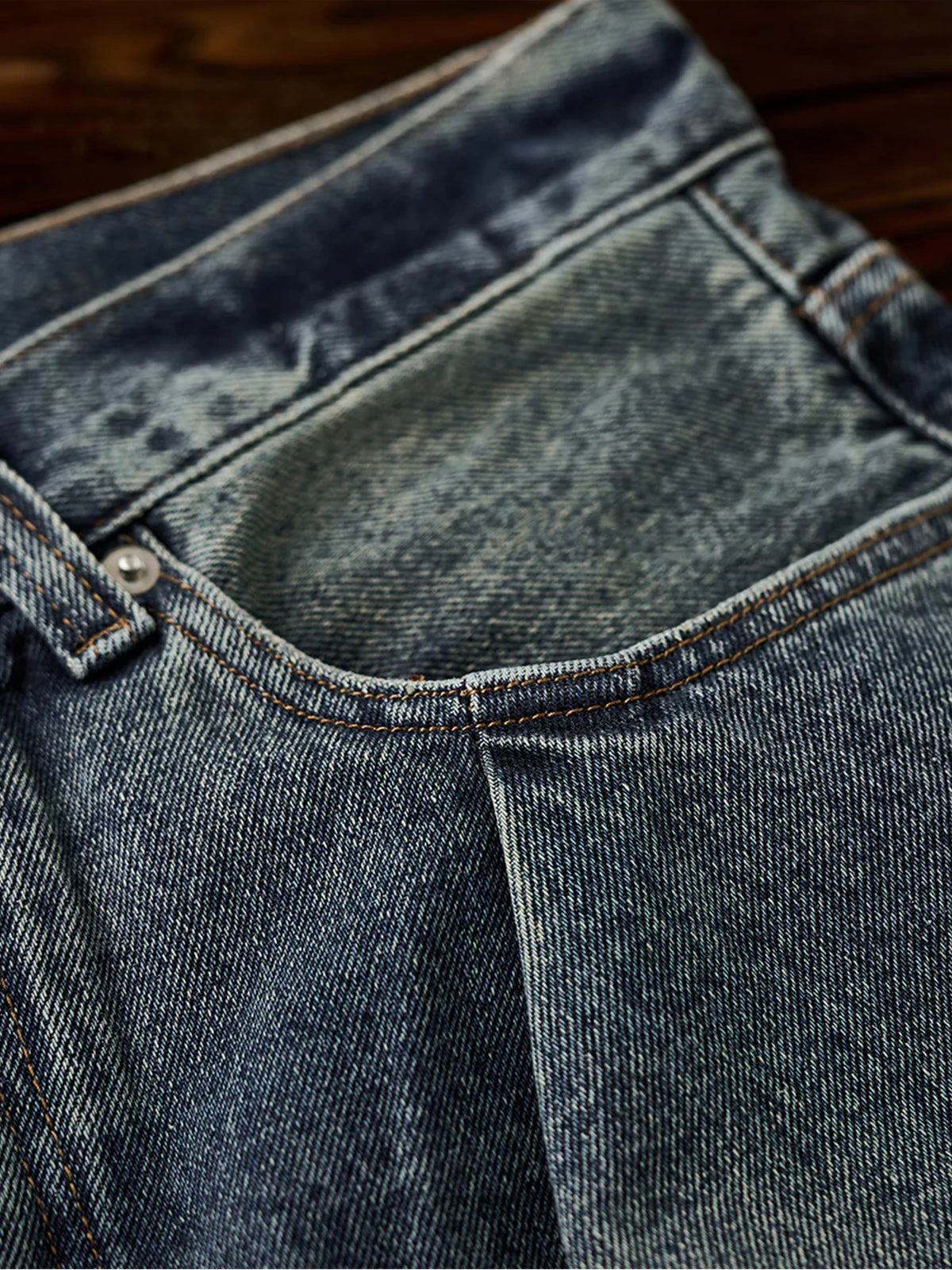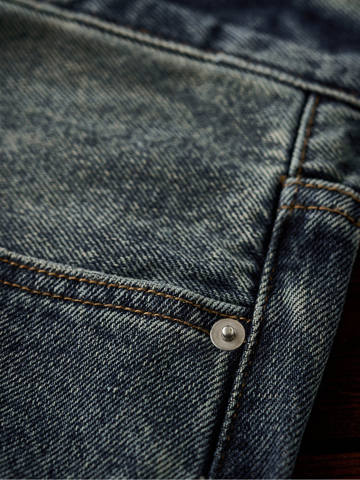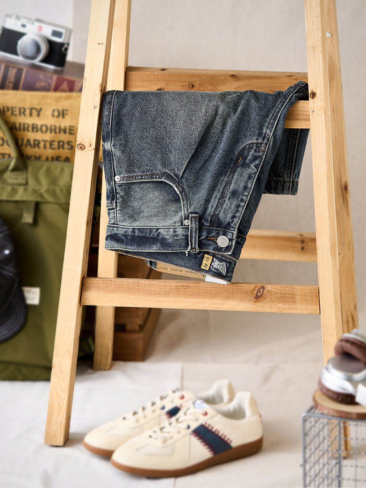 The denim fabric is treated with a full stonewash process, using stones or abrasive agents to create a naturally faded surface and soft handfeel. The result is a vintage-inspired texture that feels broken-in from the start.Light distressing at the hem adds a casual, effortless look. The raw edge finish enhances its laid-back vibe.