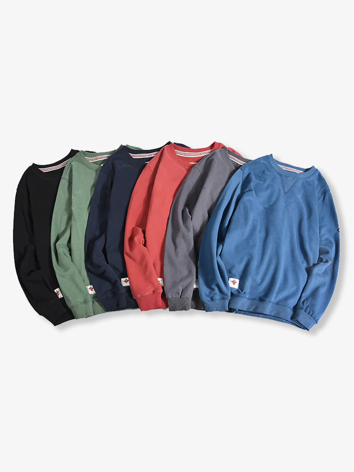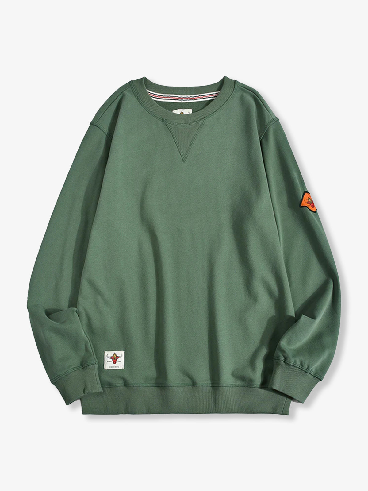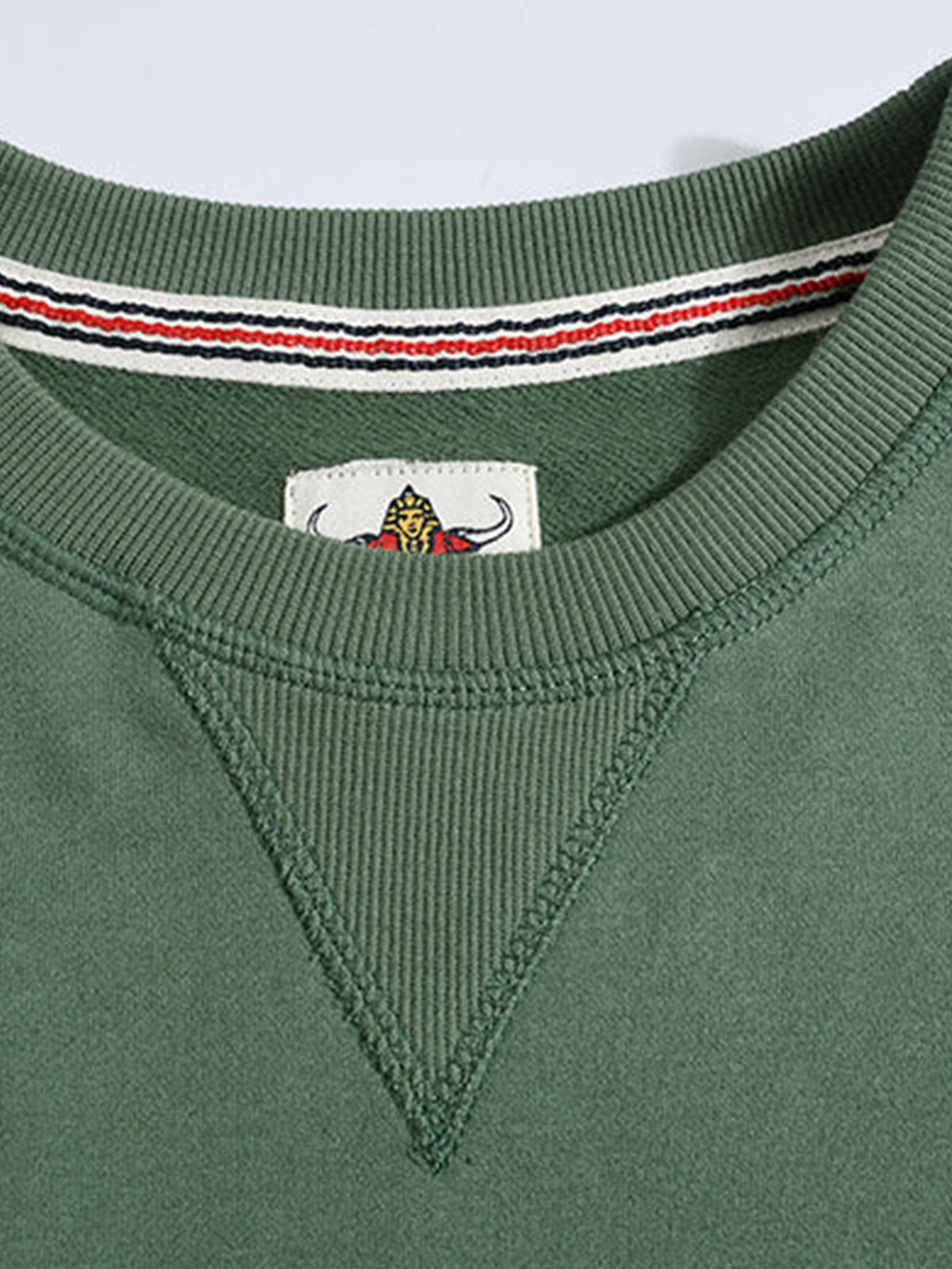 This sweatshirt features a stitched triangular detail on the front, inspired by 1930s U.S. Navy trainers. The classic crewneck design protects the neckline while giving a stylish appearance. The interior is finished with a soft terry lining, providing warmth, comfort, and excellent moisture absorption.