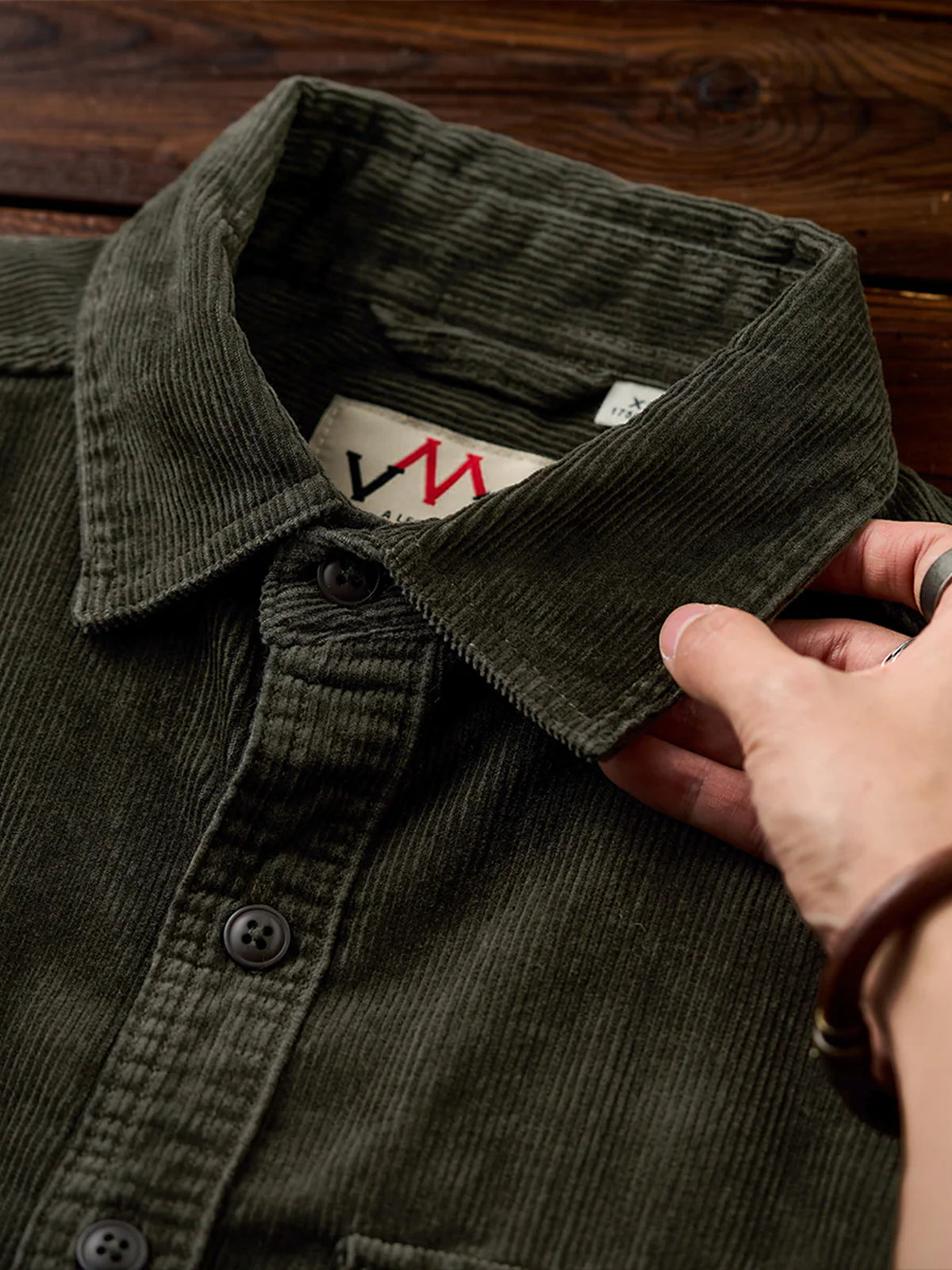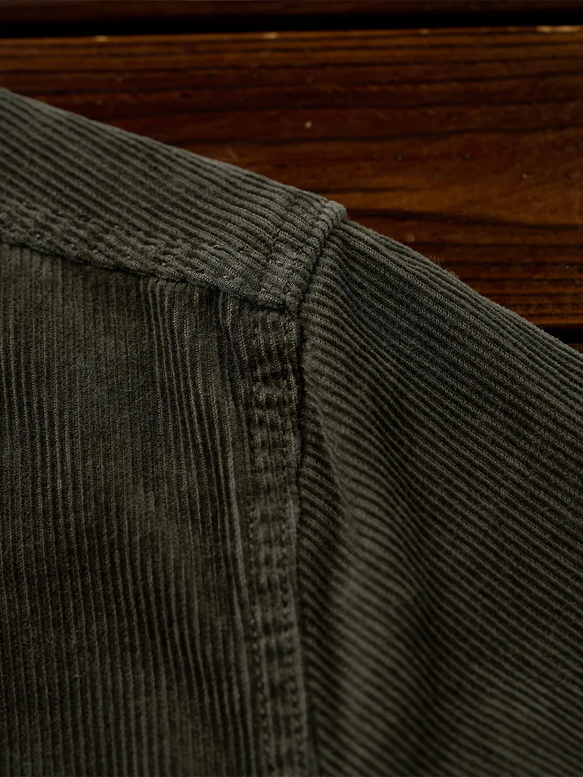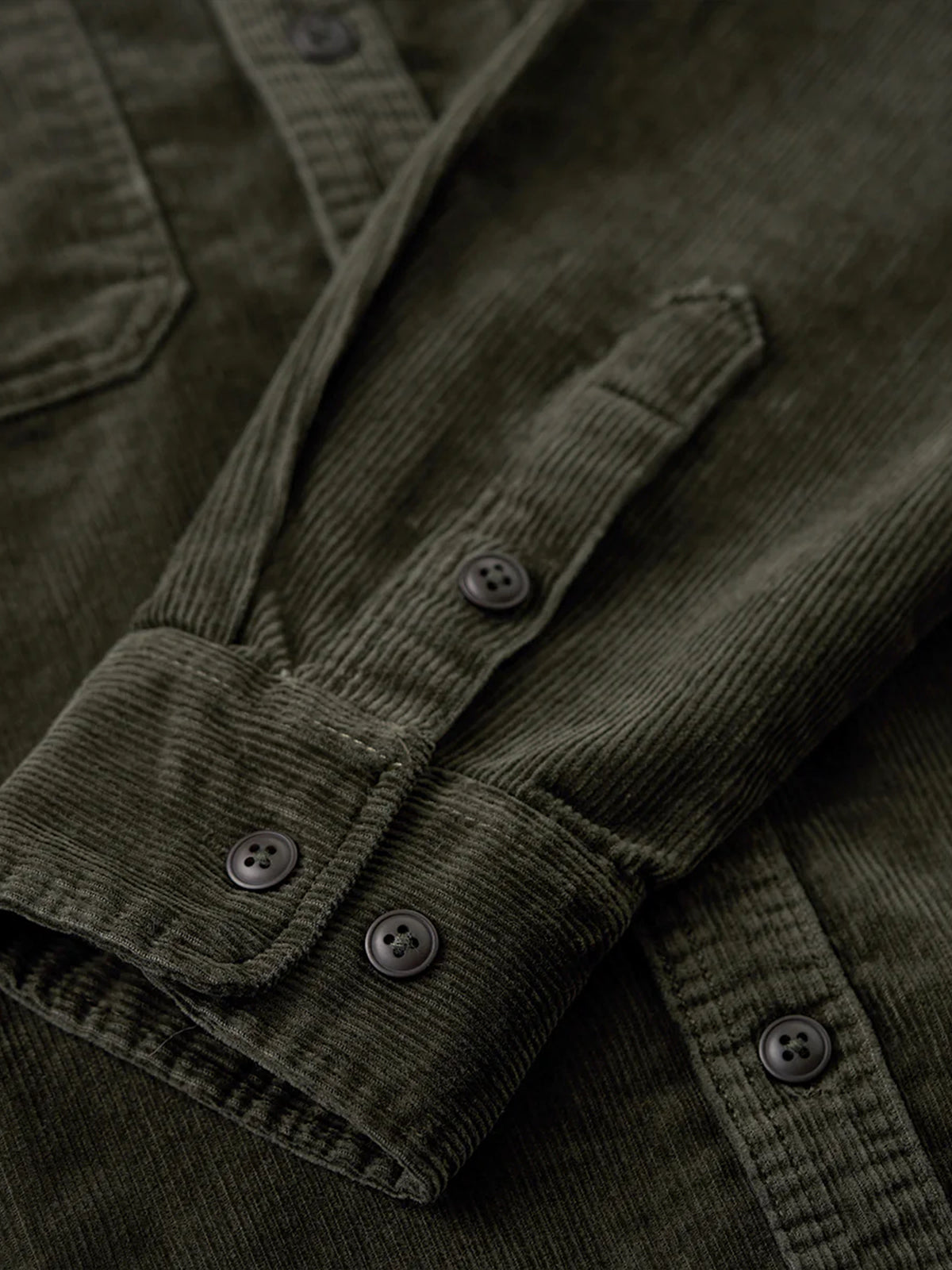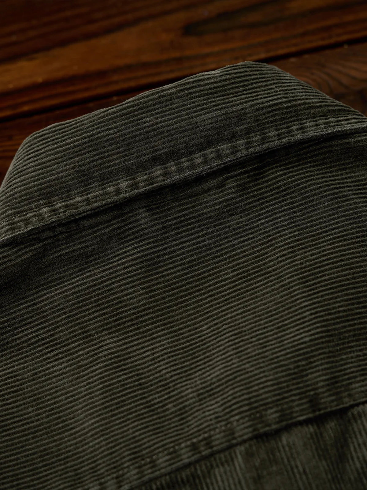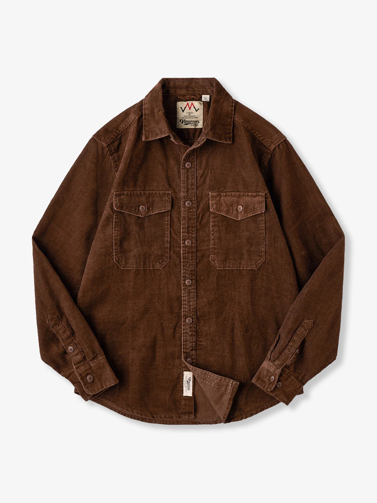 A long-sleeve shirt with work pockets, made from corduroy fabric that offers a warm and inviting texture. The fine-wale corduroy creates a three-dimensional effect that adds depth to the simple design, developing more character the more it is worn. The front features work pockets that combine practicality with a design accent. Balanced to avoid appearing too rugged, this shirt maintains a workwear aesthetic while remaining suitable for everyday wear. It works well as a standalone piece or as a light layering option. Available in multiple colors, allowing you to choose according to outfit or mood. A reliable classic shirt that adds natural warmth and texture to fall and winter styling.
