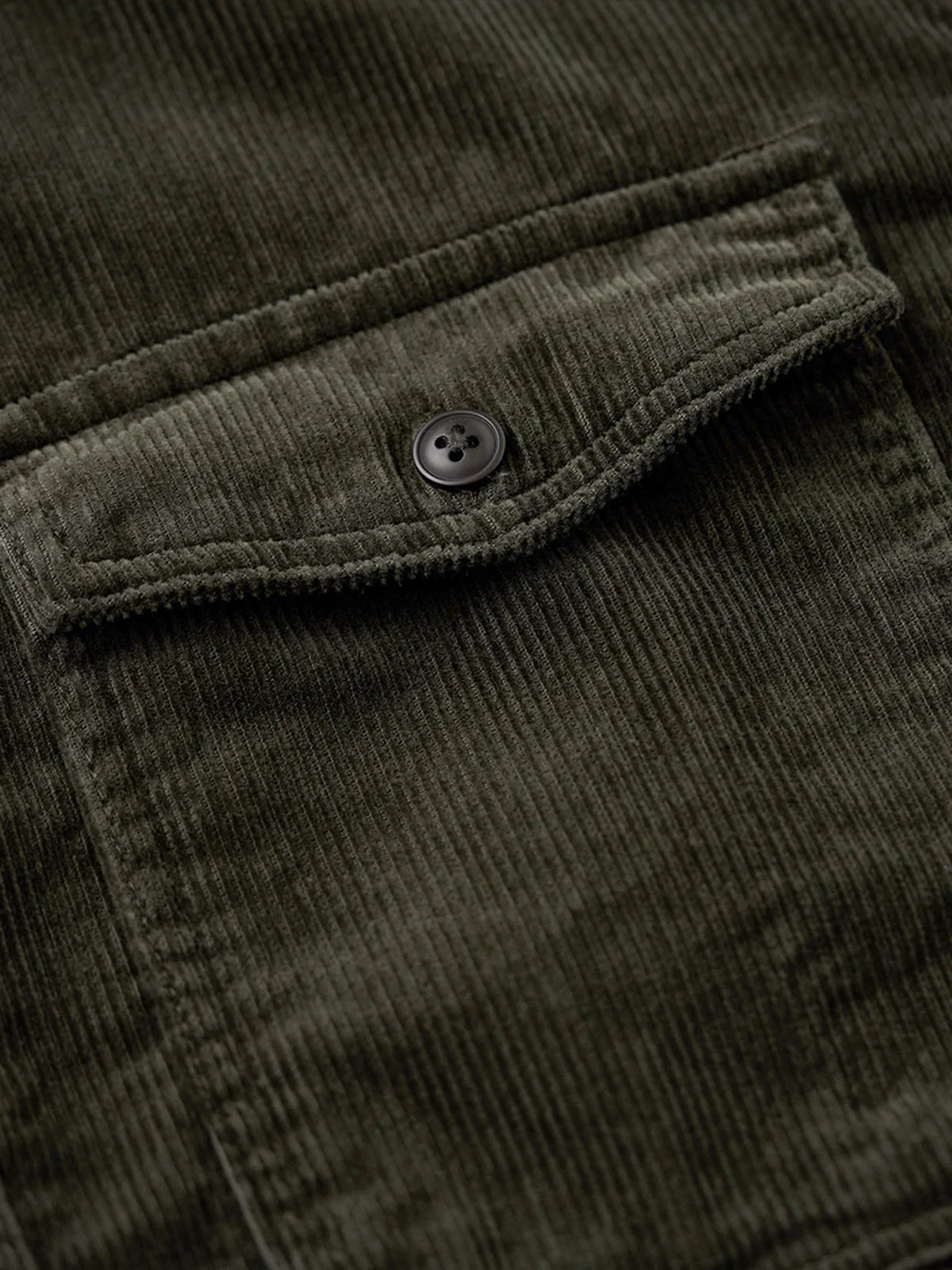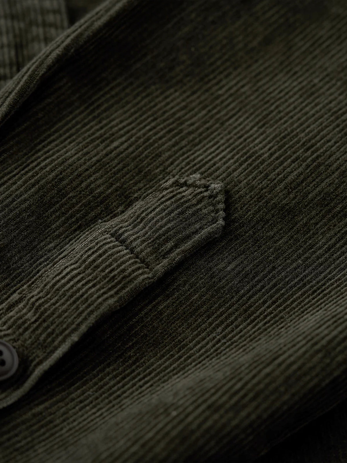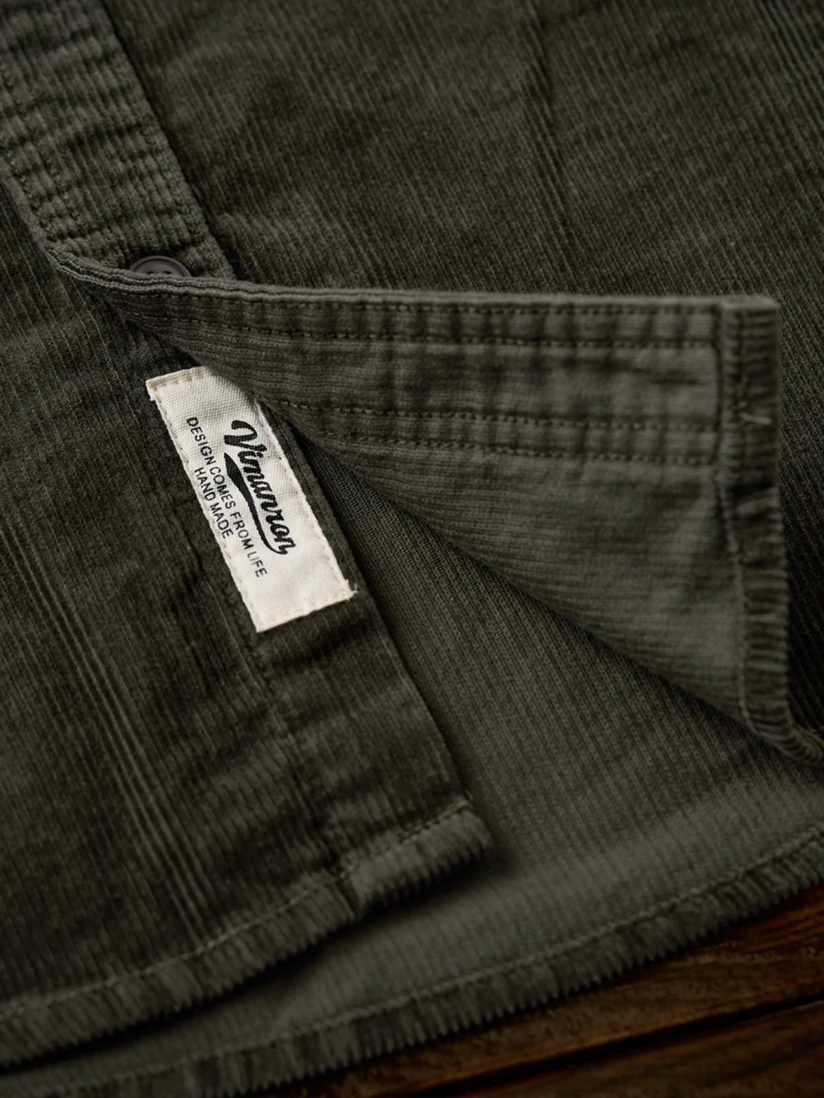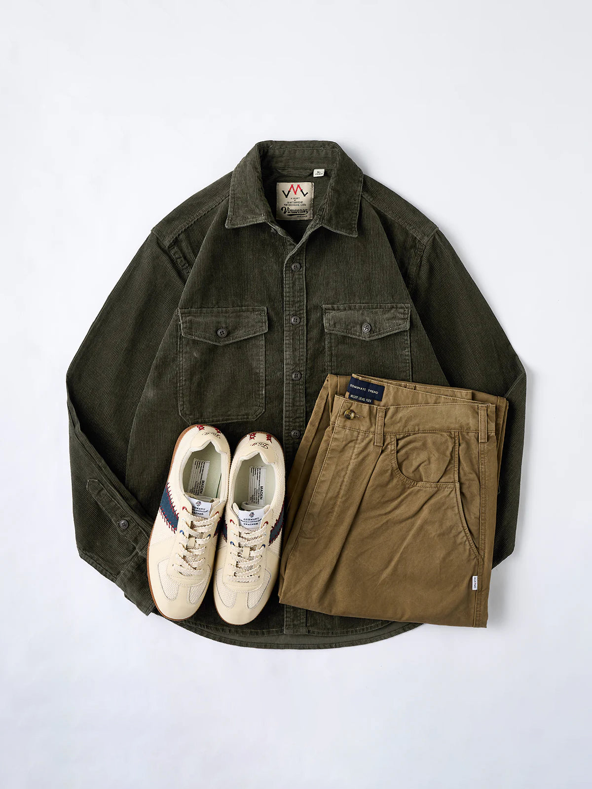 A long-sleeve shirt with work pockets, made from corduroy fabric that offers a warm and inviting texture. The fine-wale corduroy creates a three-dimensional effect that adds depth to the simple design, developing more character the more it is worn. The front features work pockets that combine practicality with a design accent. Balanced to avoid appearing too rugged, this shirt maintains a workwear aesthetic while remaining suitable for everyday wear. It works well as a standalone piece or as a light layering option. Available in multiple colors, allowing you to choose according to outfit or mood. A reliable classic shirt that adds natural warmth and texture to fall and winter styling.