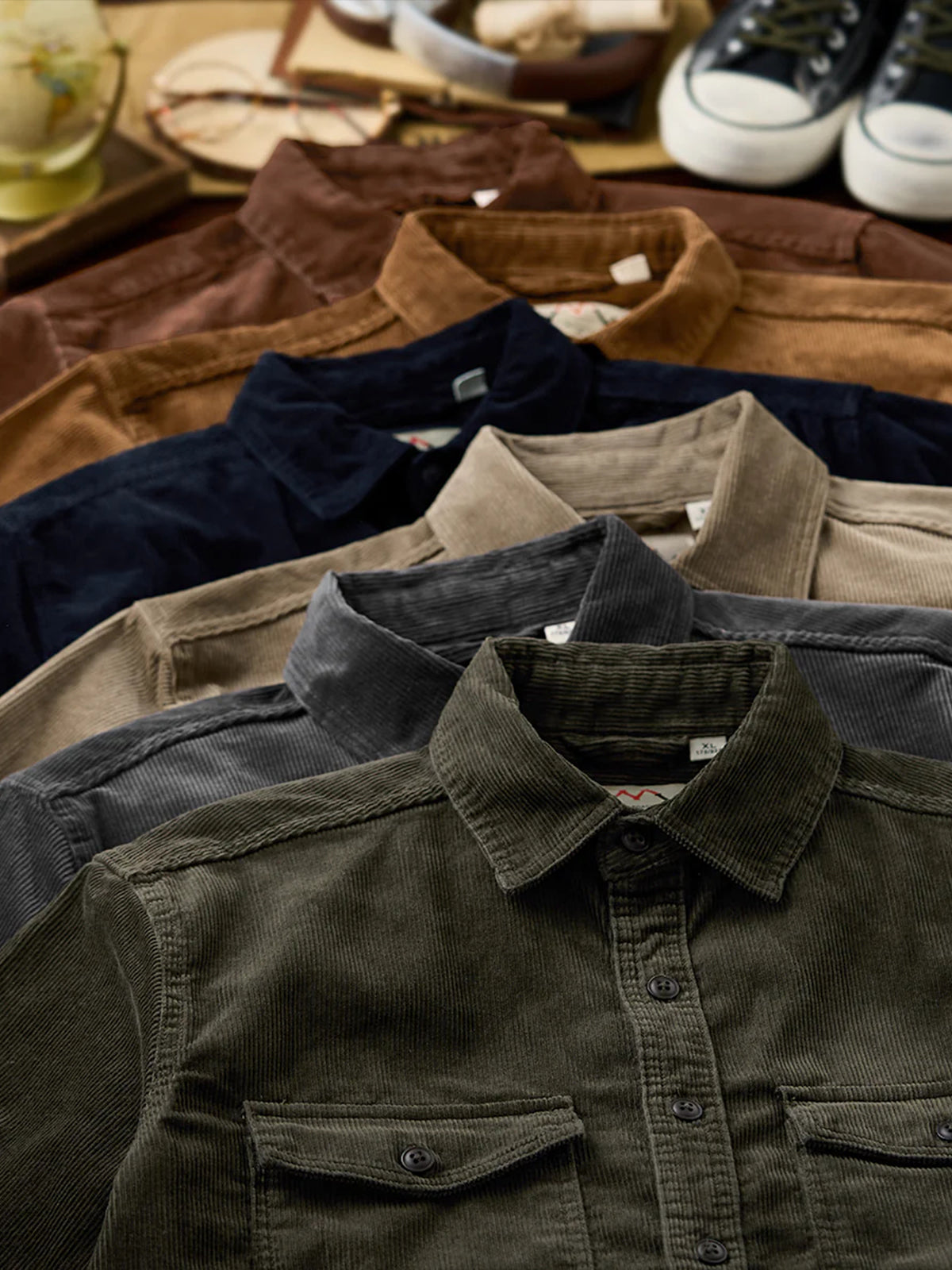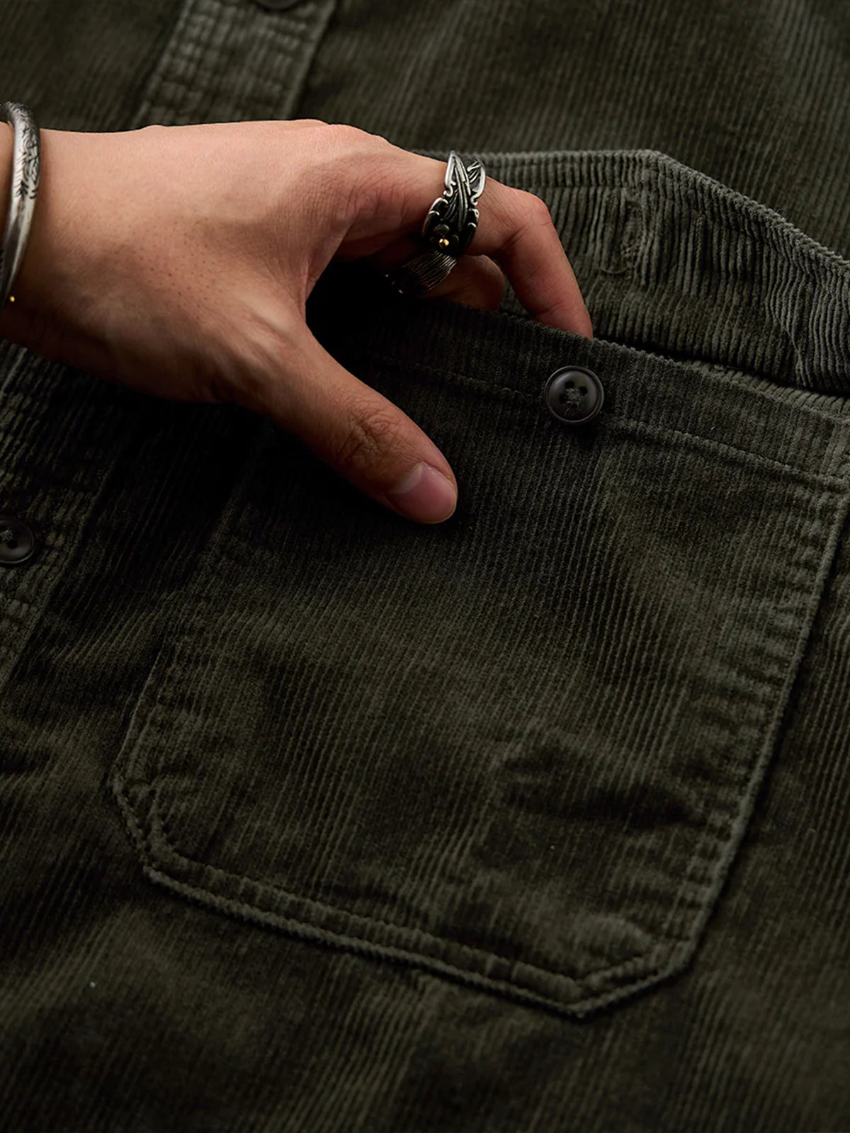 - Fabric Features: Made from cotton corduroy with moderate stiffness, not too thick or thin, suitable for year-round wear. The fabric is washed to create a natural fading and worn-in look, giving it a full vintage feel.