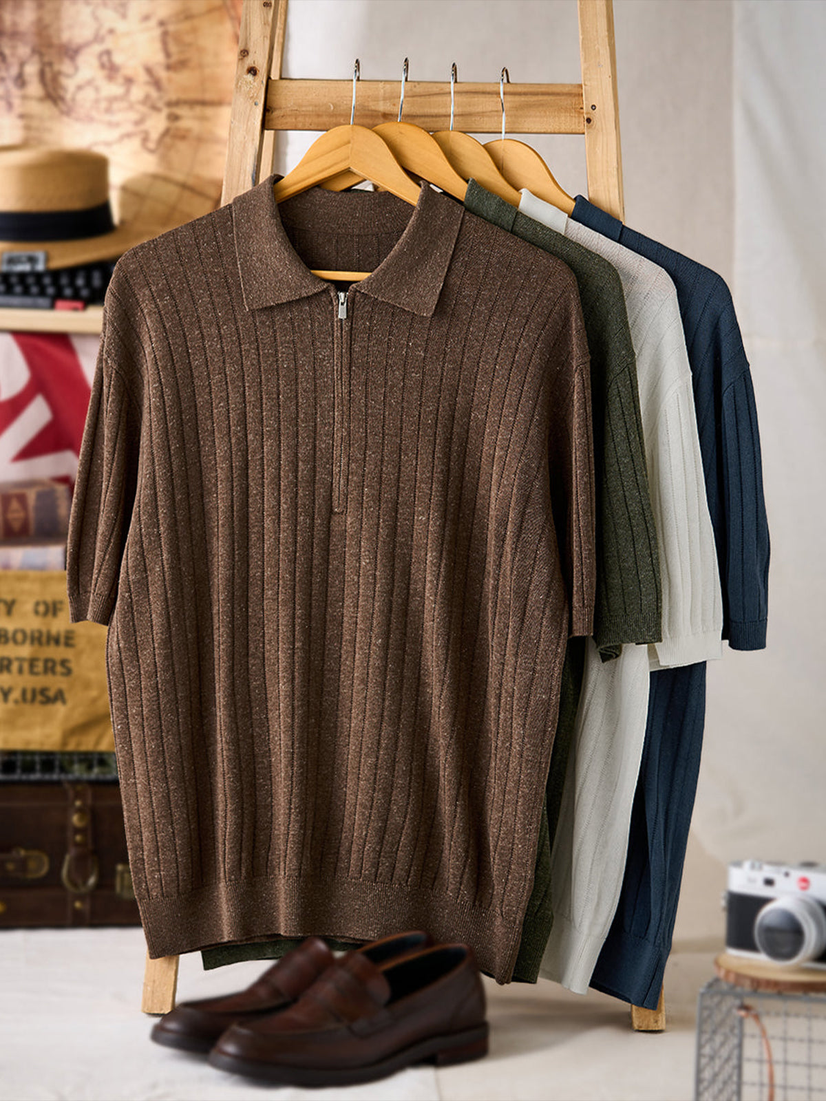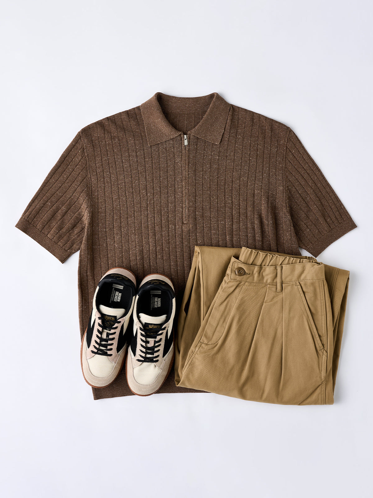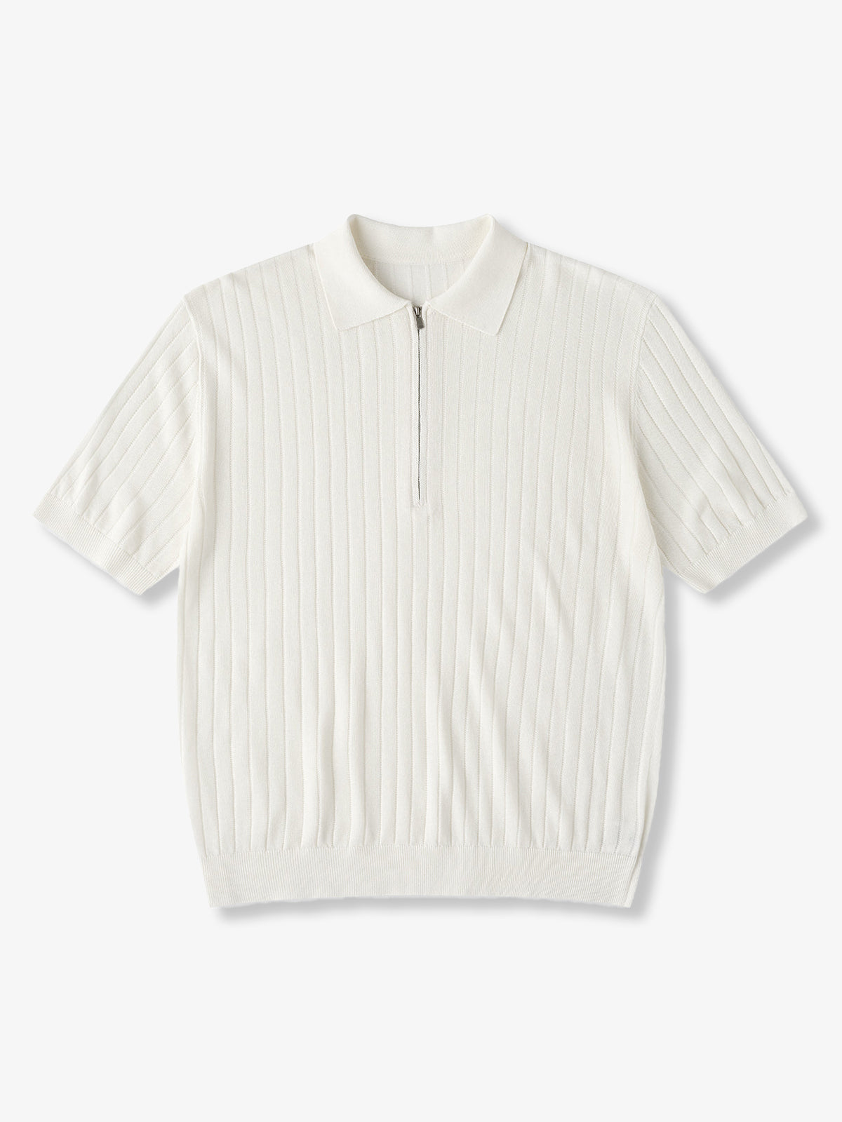 A half-zip knit polo shirt that combines just the right amount of relaxed ease with a refreshing feel. The soft stretch and drape unique to knit fabric create a silhouette that is both smart and relaxed. The half-zip closure allows you to adjust the neckline freely, and it can also be layered lightly over a T-shirt. With its casual yet refined appearance, this piece is perfect for a sophisticated summer style.