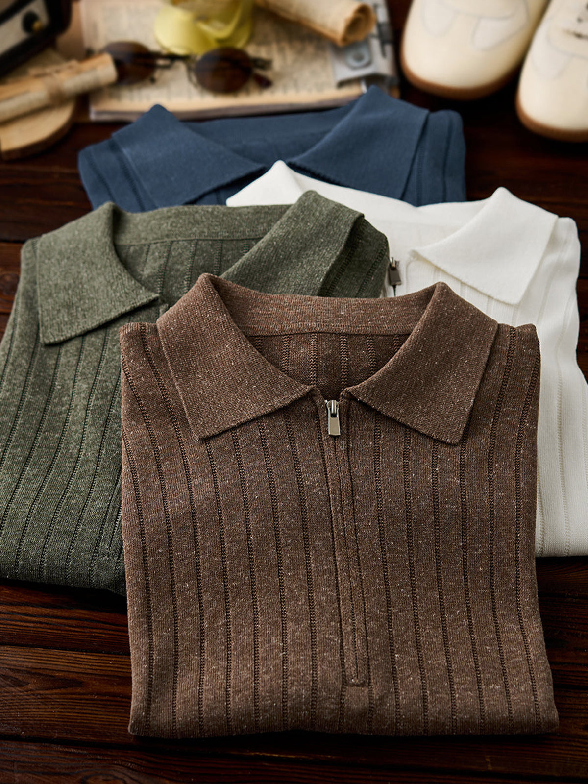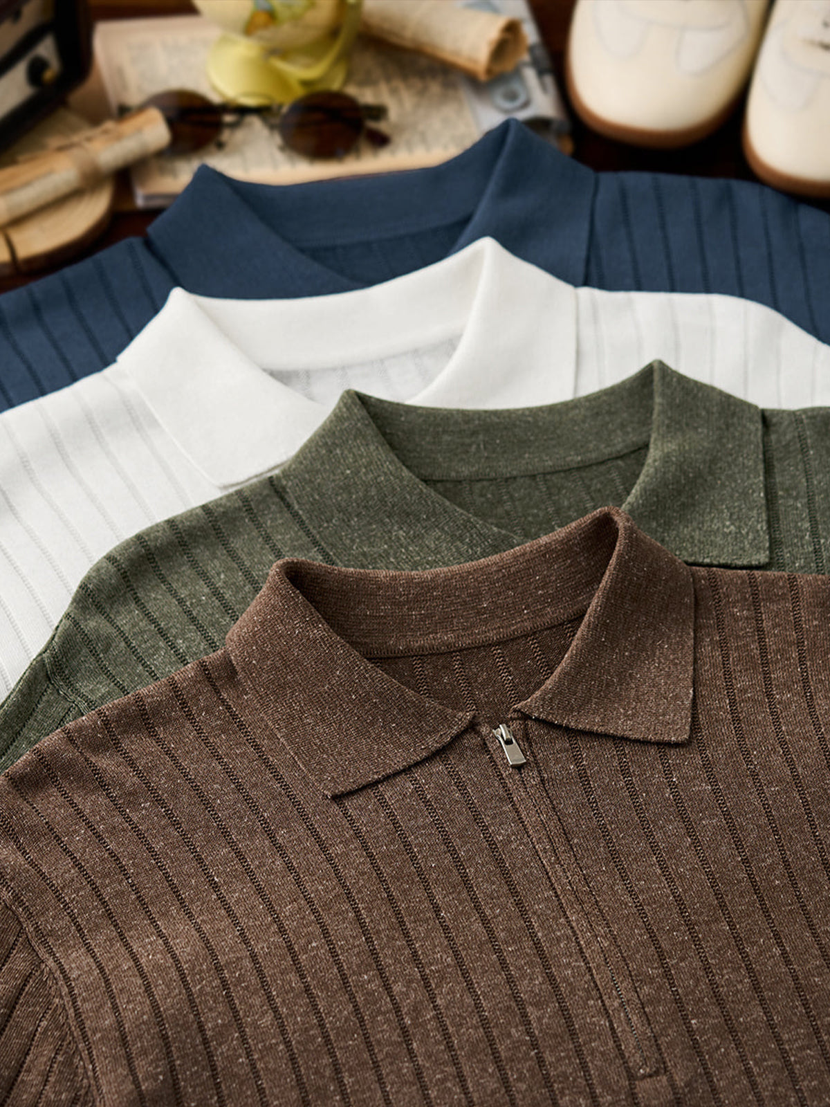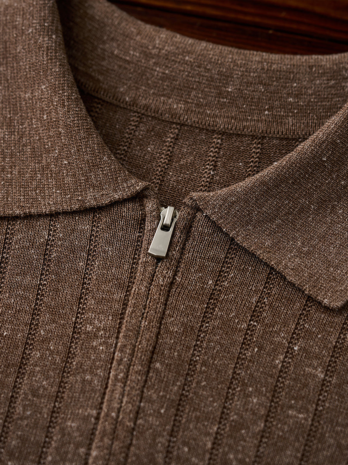 A half-zip knit polo shirt that combines just the right amount of relaxed ease with a refreshing feel. The soft stretch and drape unique to knit fabric create a silhouette that is both smart and relaxed. The half-zip closure allows you to adjust the neckline freely, and it can also be layered lightly over a T-shirt. With its casual yet refined appearance, this piece is perfect for a sophisticated summer style.