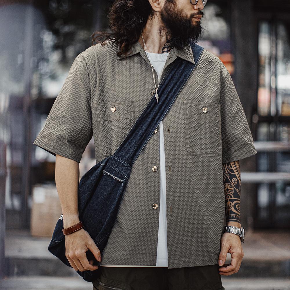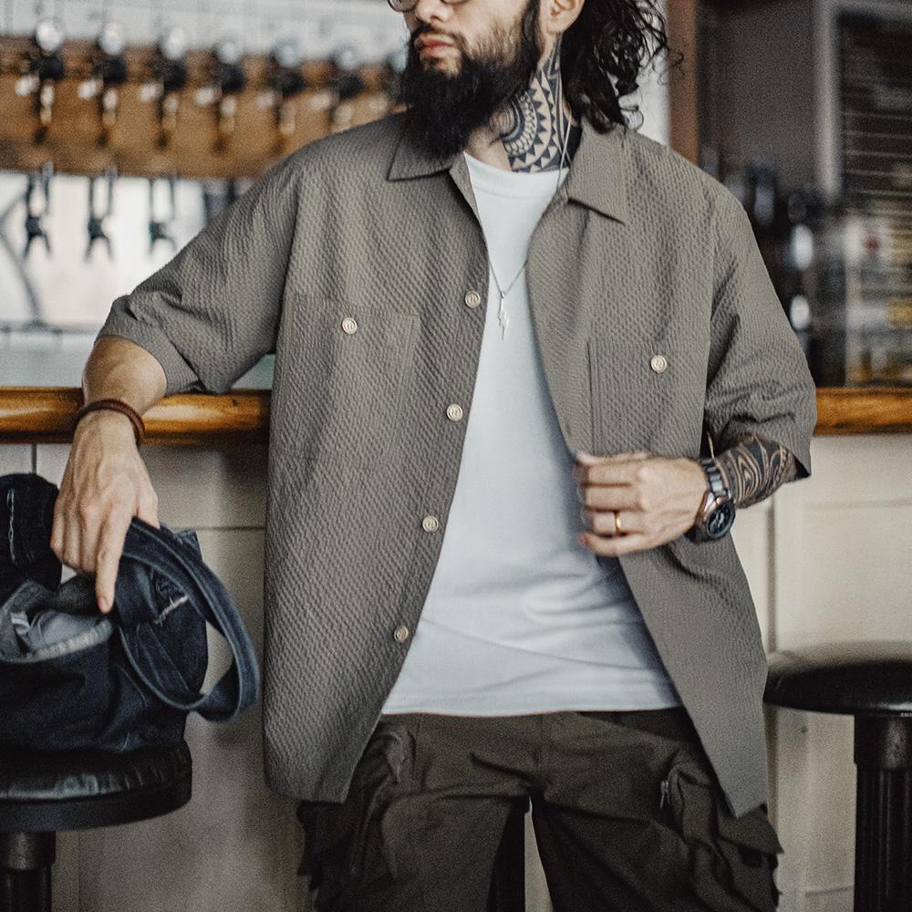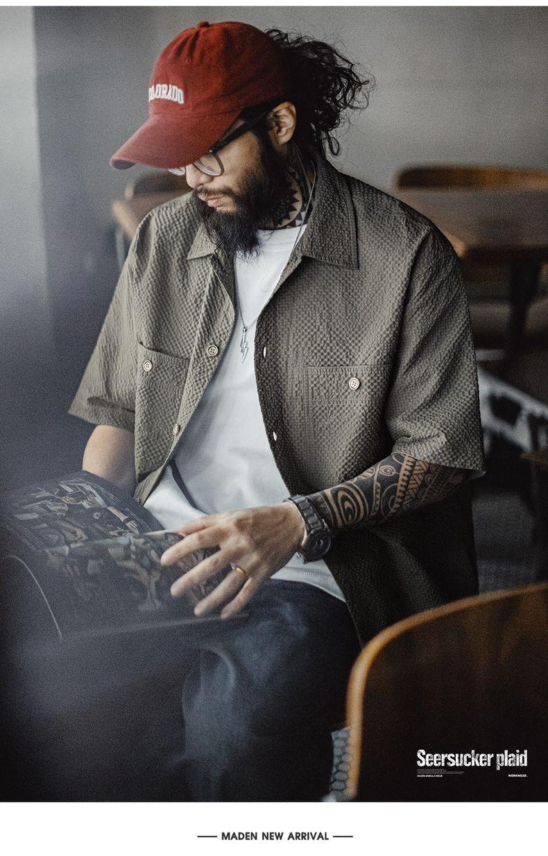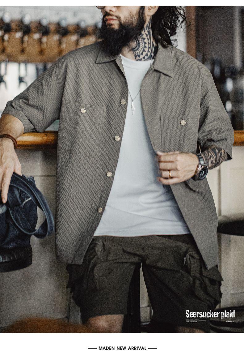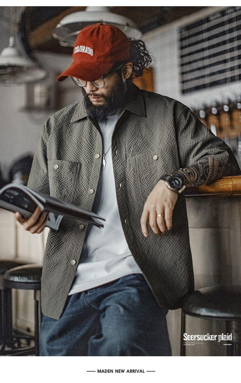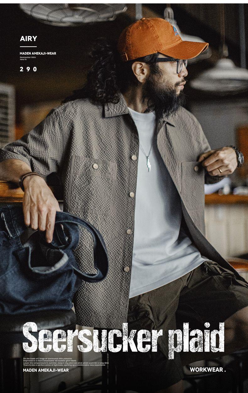 Airy Seersucker Shirts Men | Relaxed-fit Breathable Lightweight Summer Jacket Vintage American Style Menswear