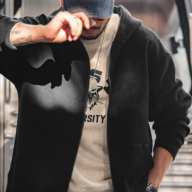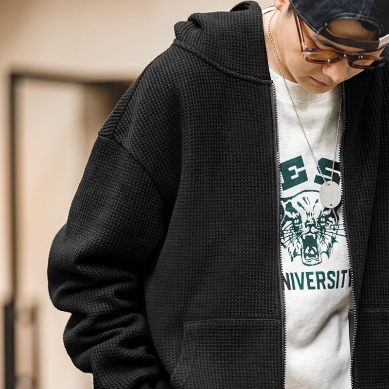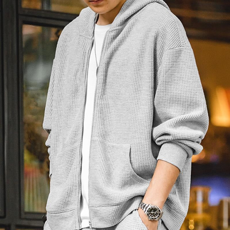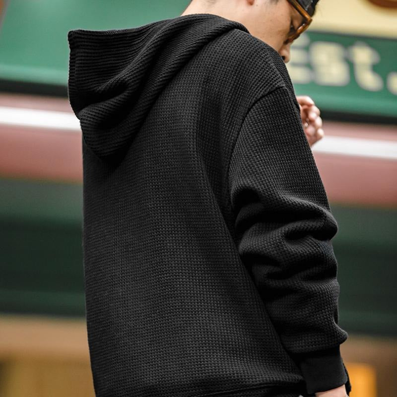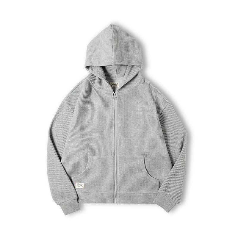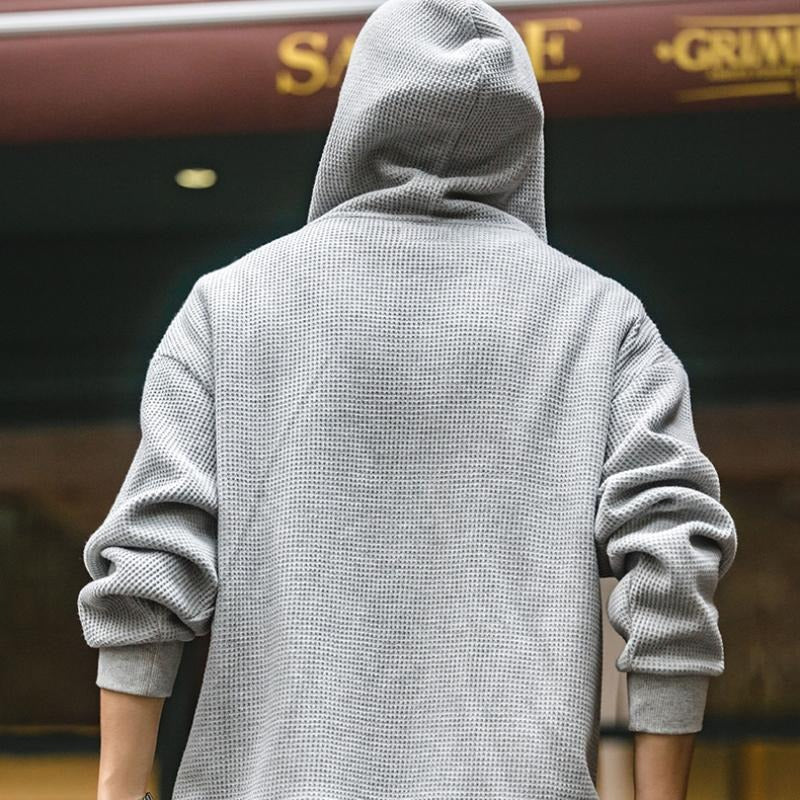 Classical Gray Waffle Hoodies for Men Brand Hooded Sweatshirts Amekaji Loose Sport Jacket Jogger Pullover