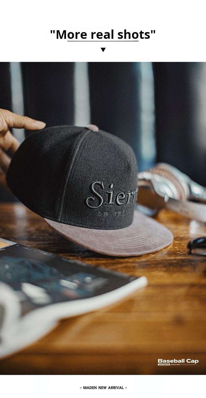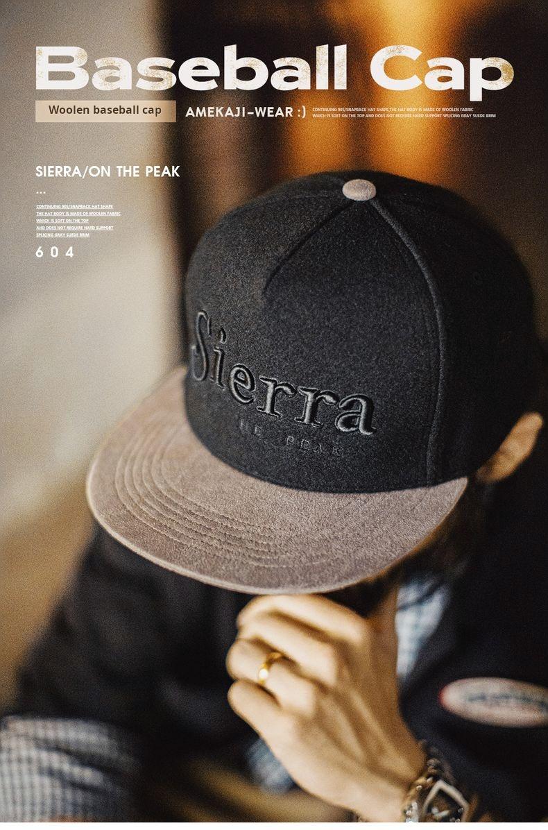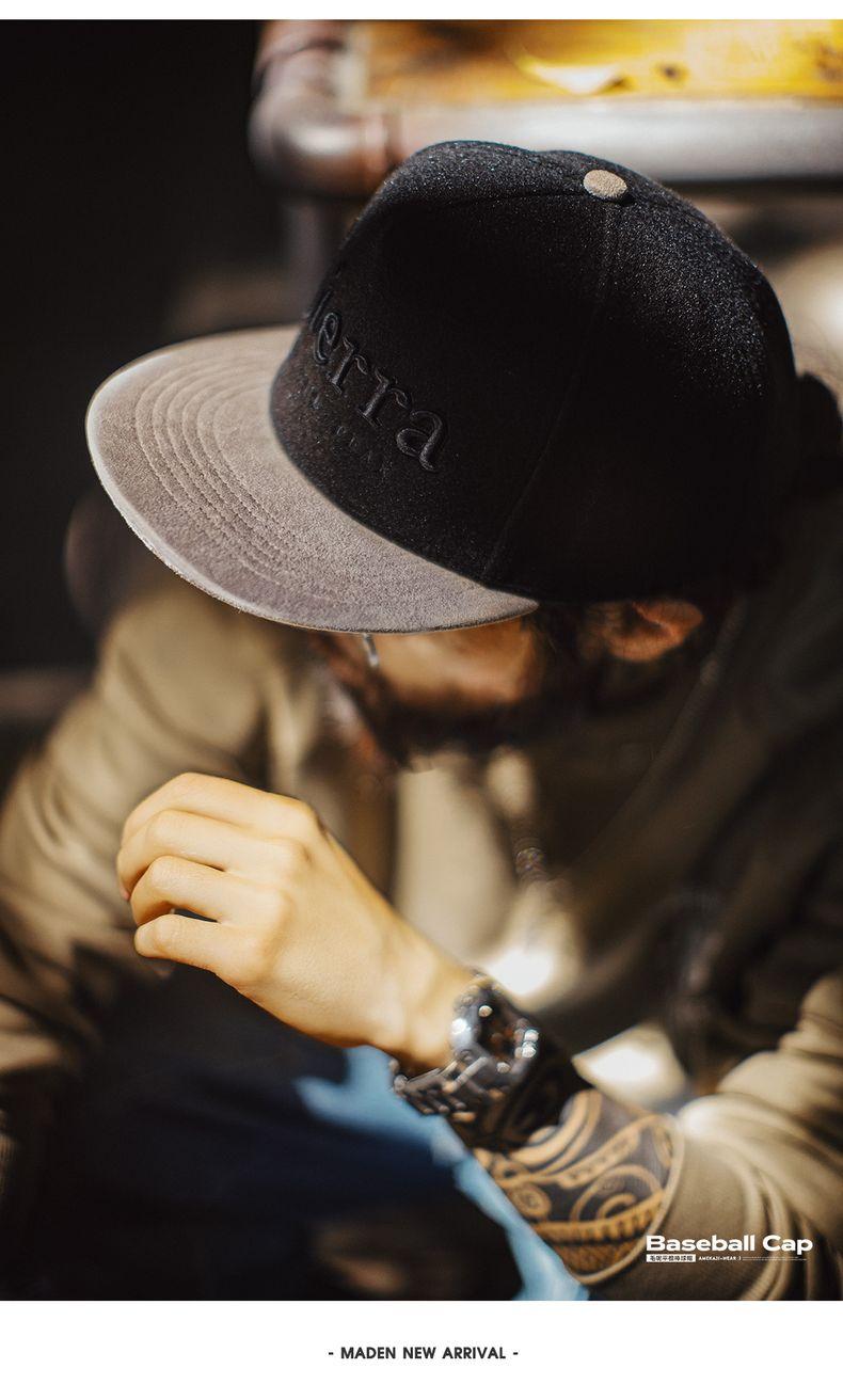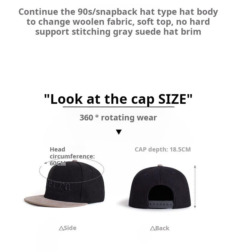 Flat Brim Baseball Cap Black Embroidered Snapback Hat Hip Hop Streetwear Fleece Fabric for Fall Winter Fitted