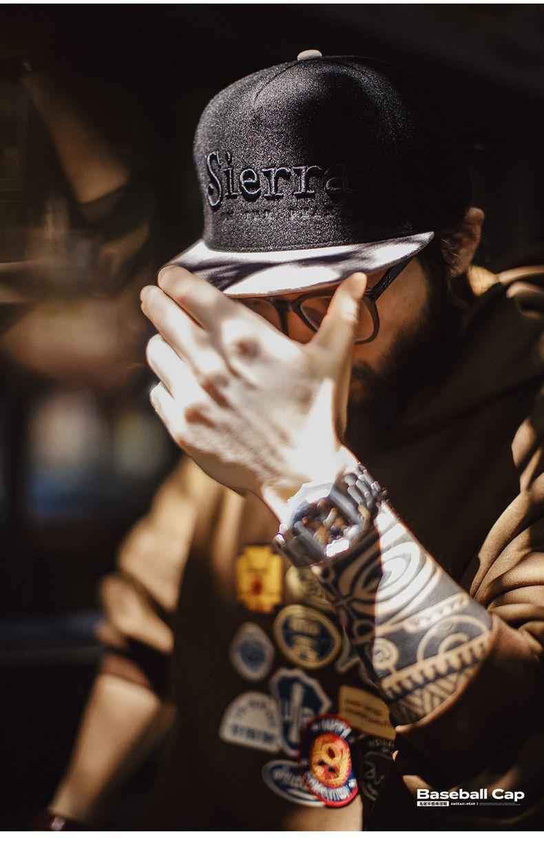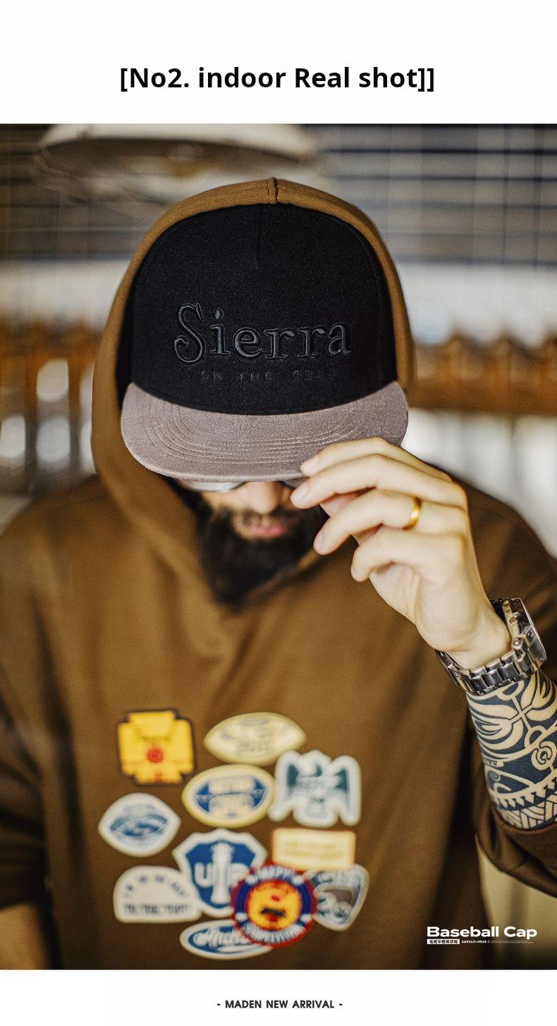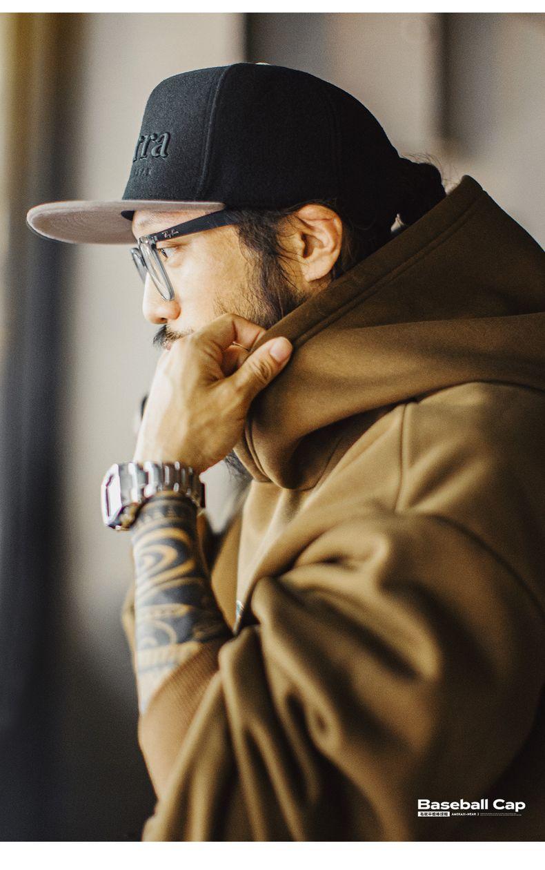Flat Brim Baseball Cap Black Embroidered Snapback Hat Hip Hop Streetwear Fleece Fabric for Fall Winter Fitted