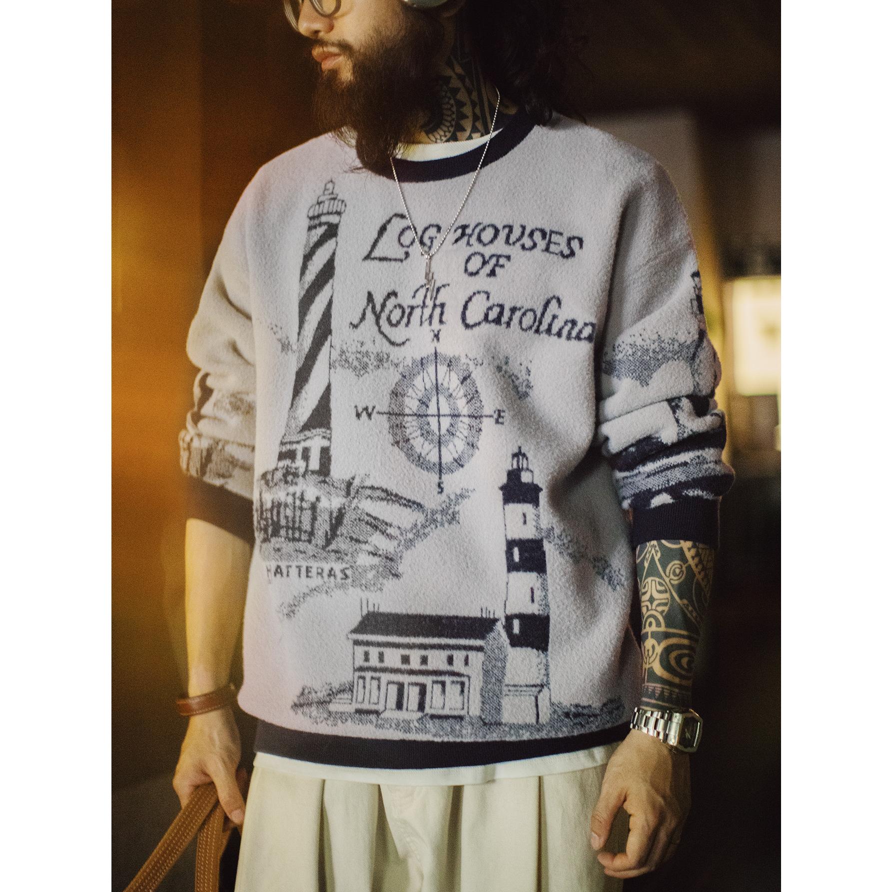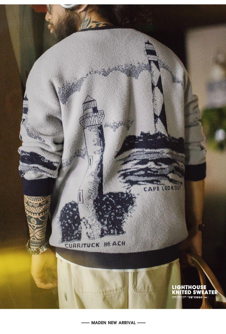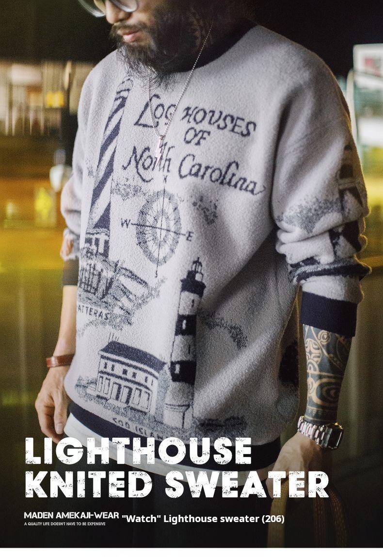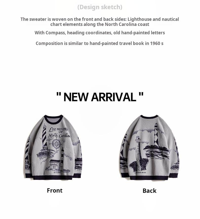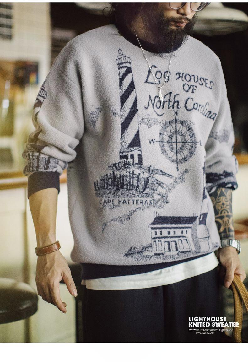 Lighthouse Knit Sweater - Loose Heavyweight Pullover Grey