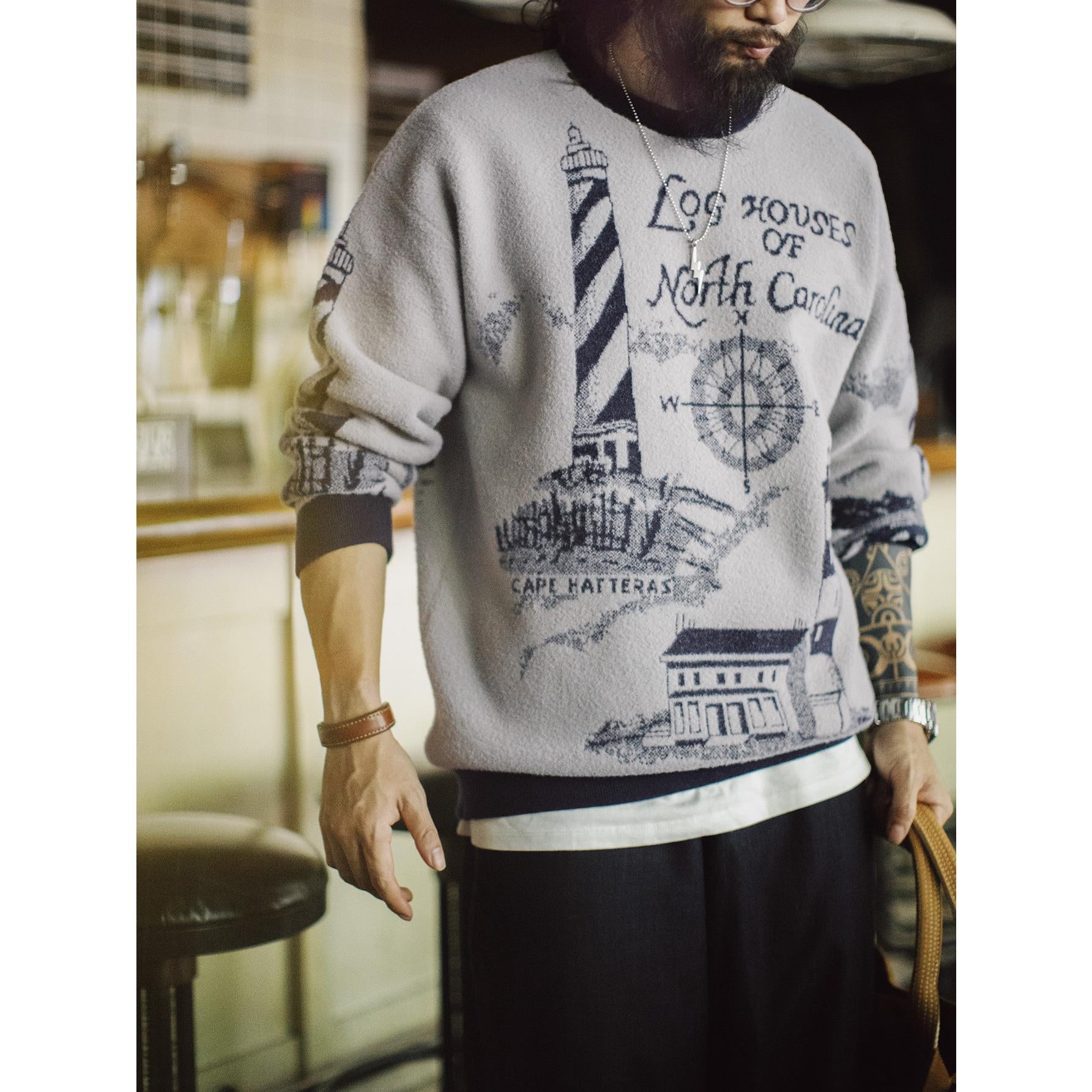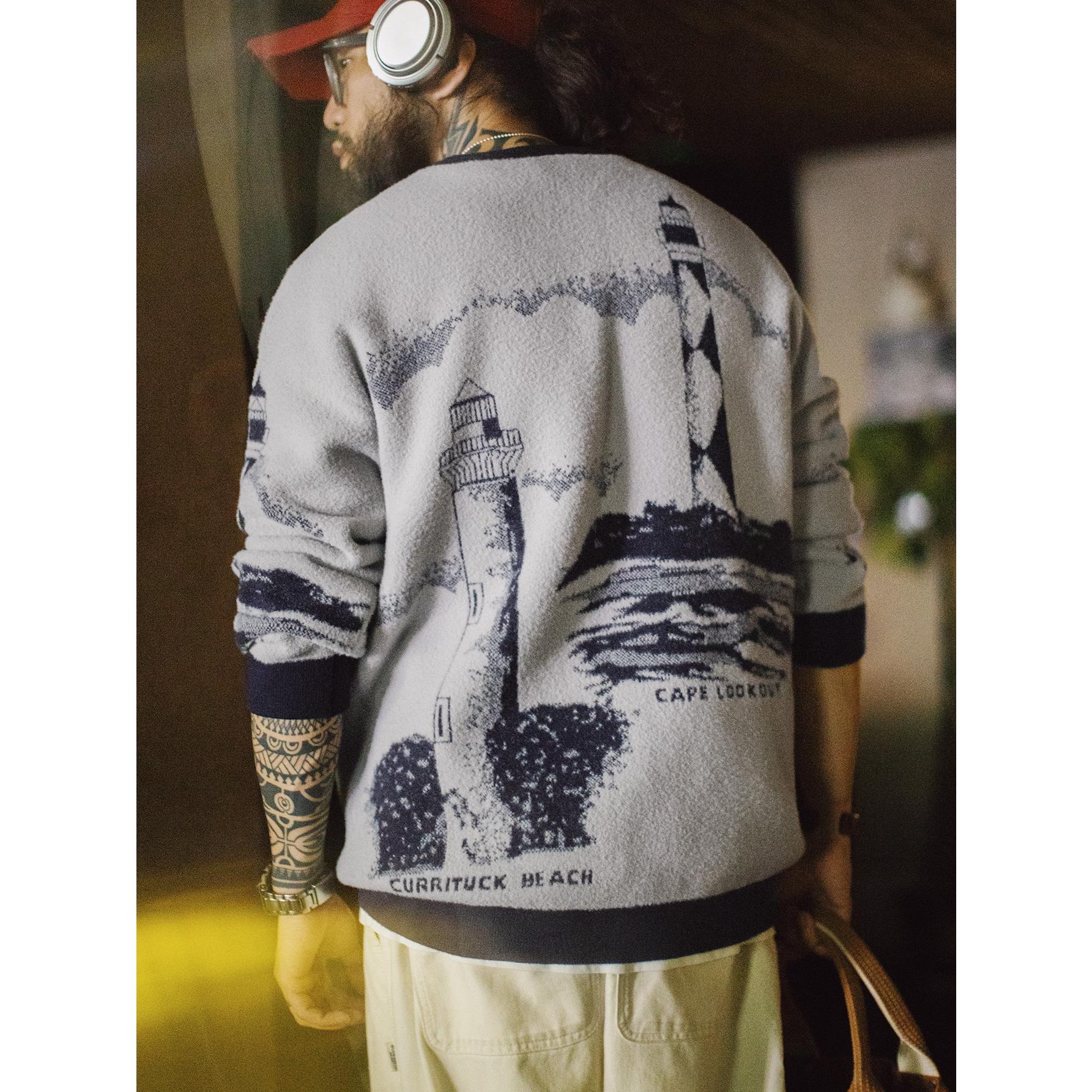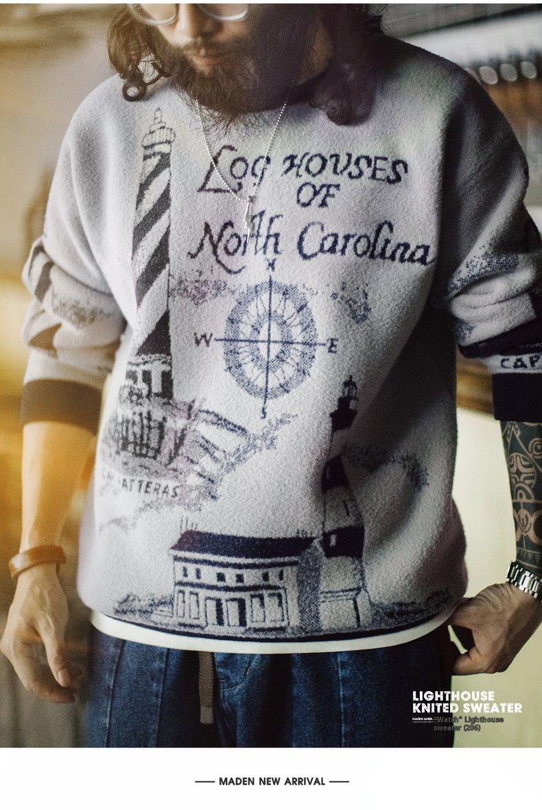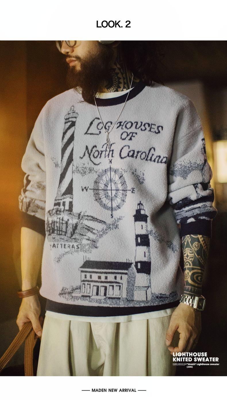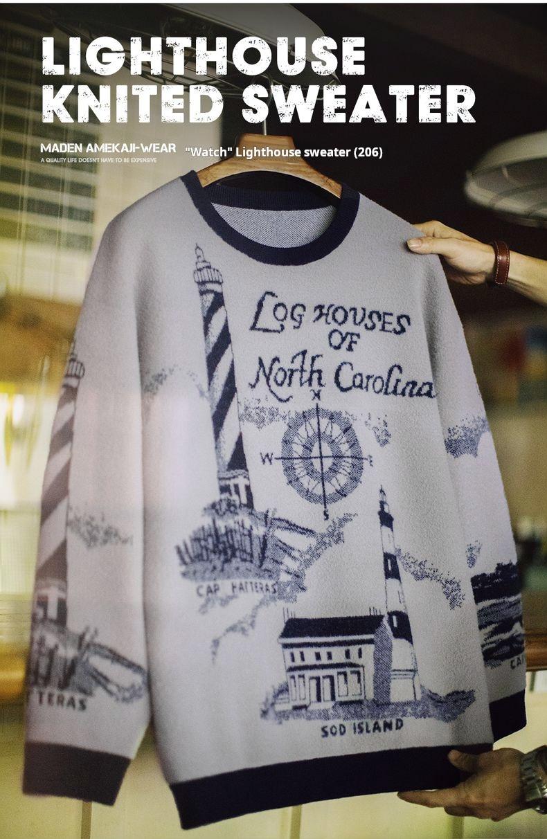 Lighthouse Knit Sweater - Loose Heavyweight Pullover Grey