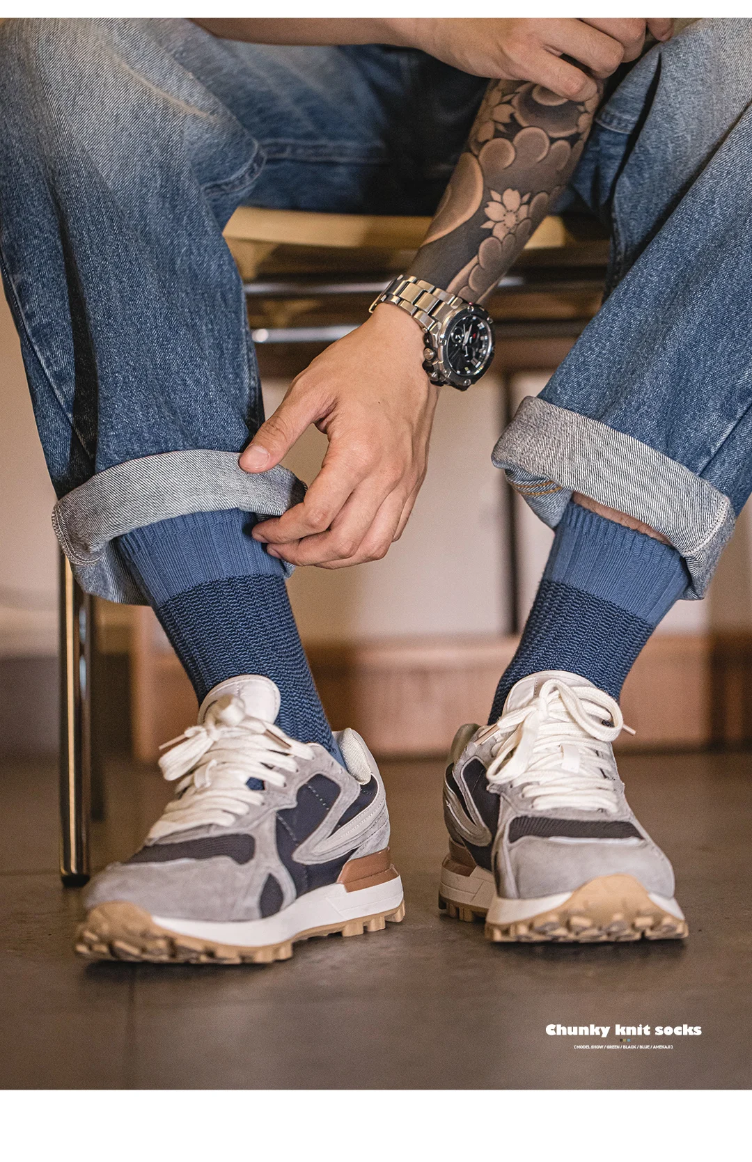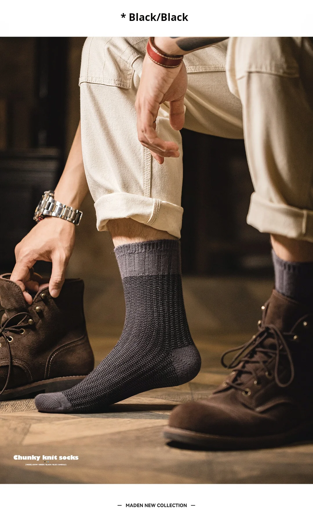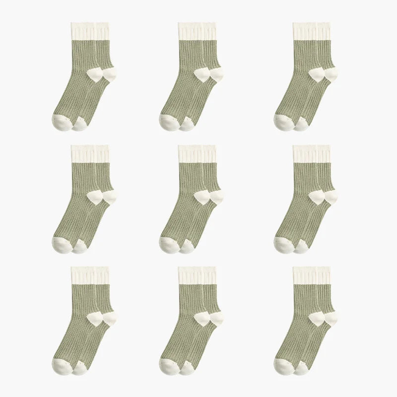 Contrast Knitted Mid-Calf Socks